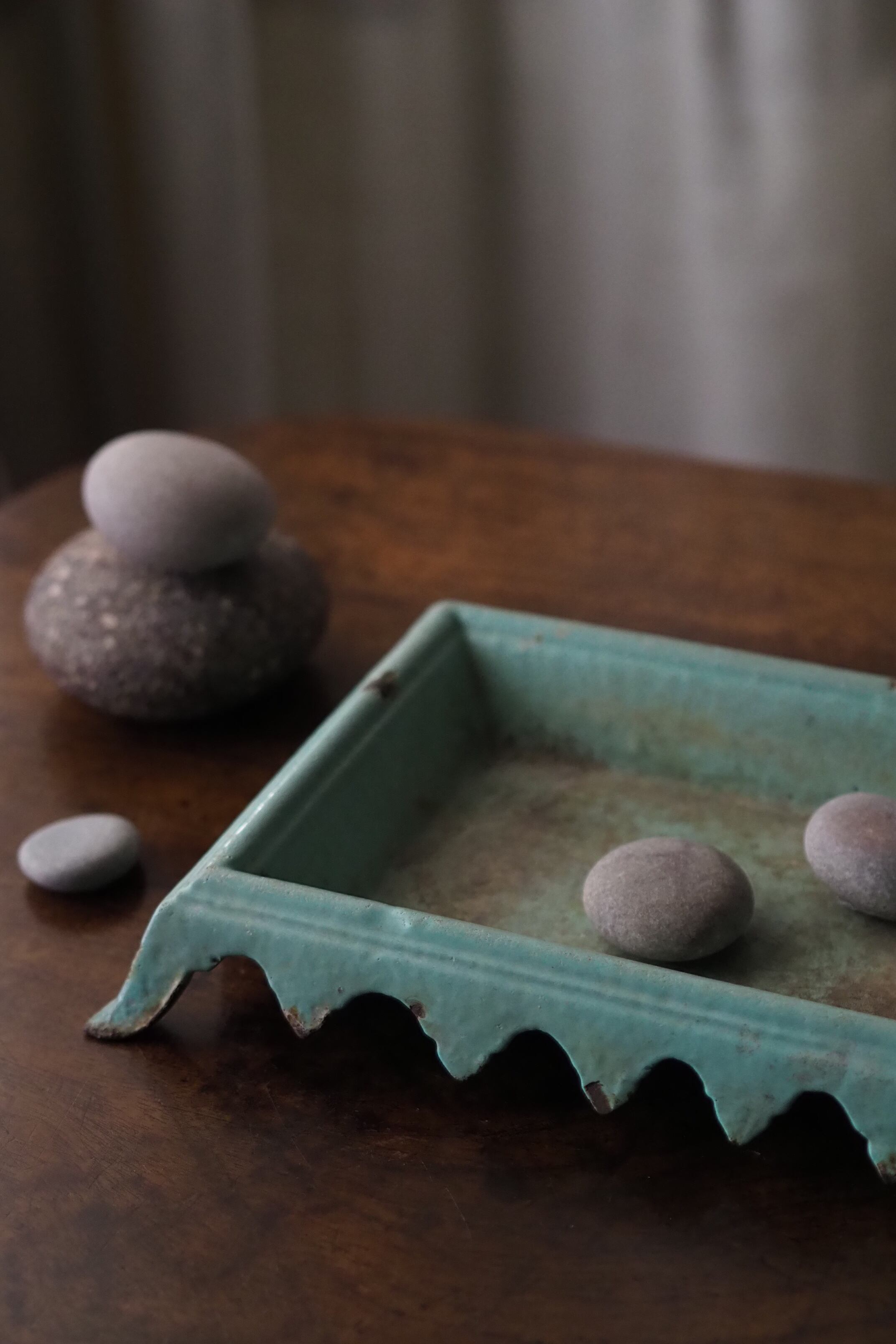 噛みタバコに使われていた容れ物で植物の鉢皿や小物入れに向いているのでは。