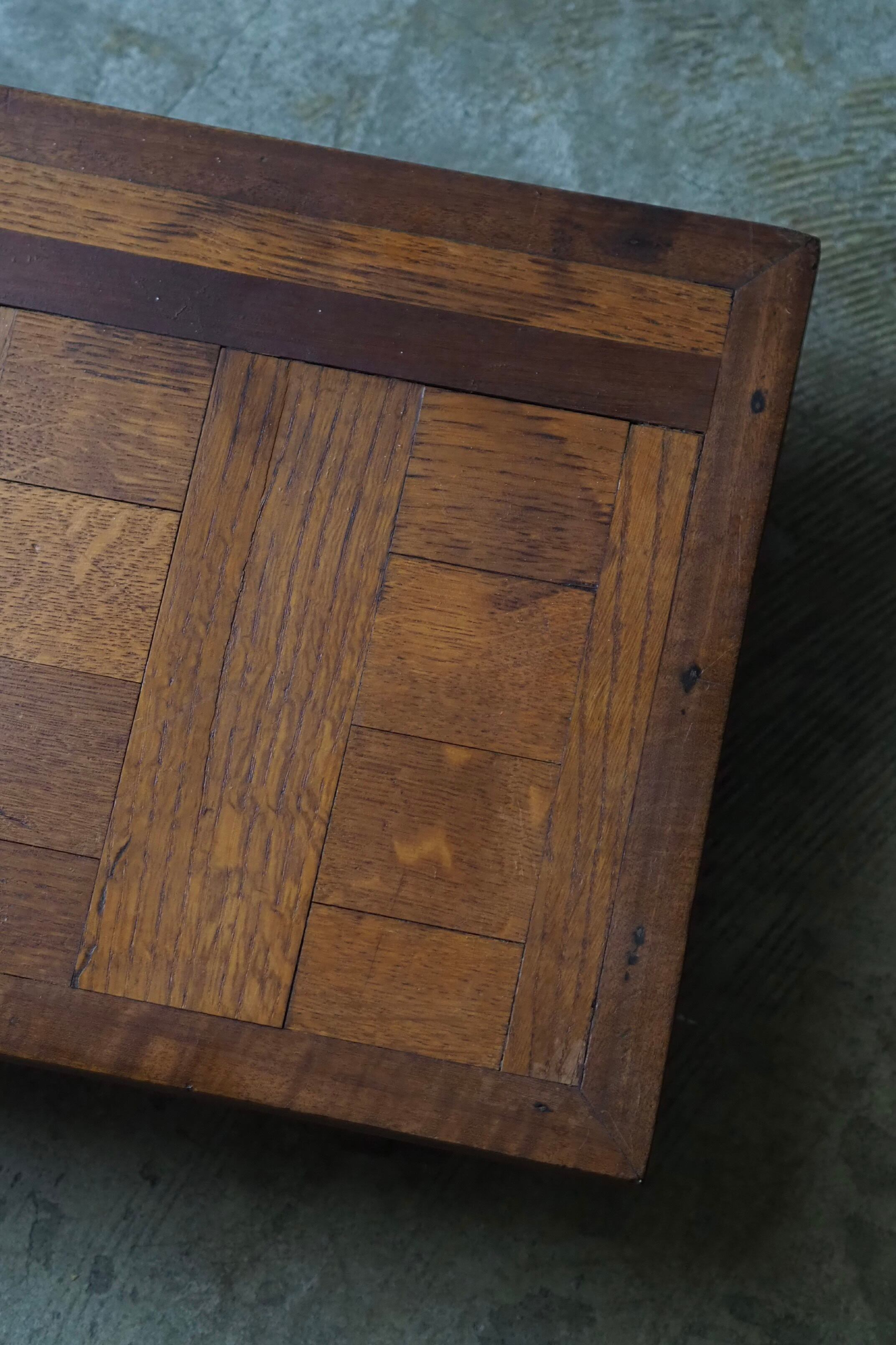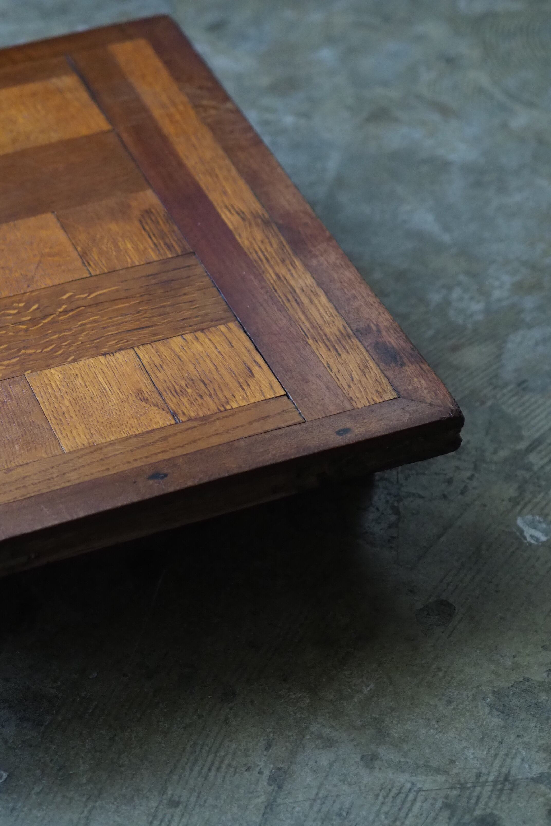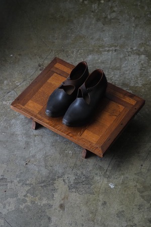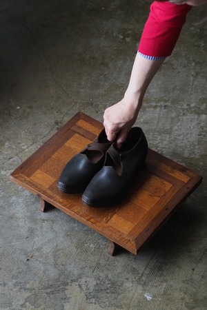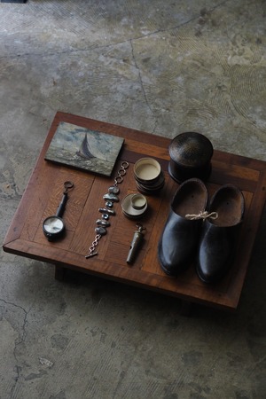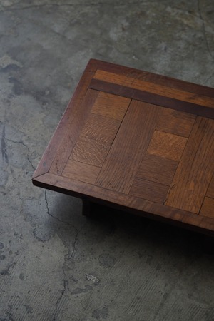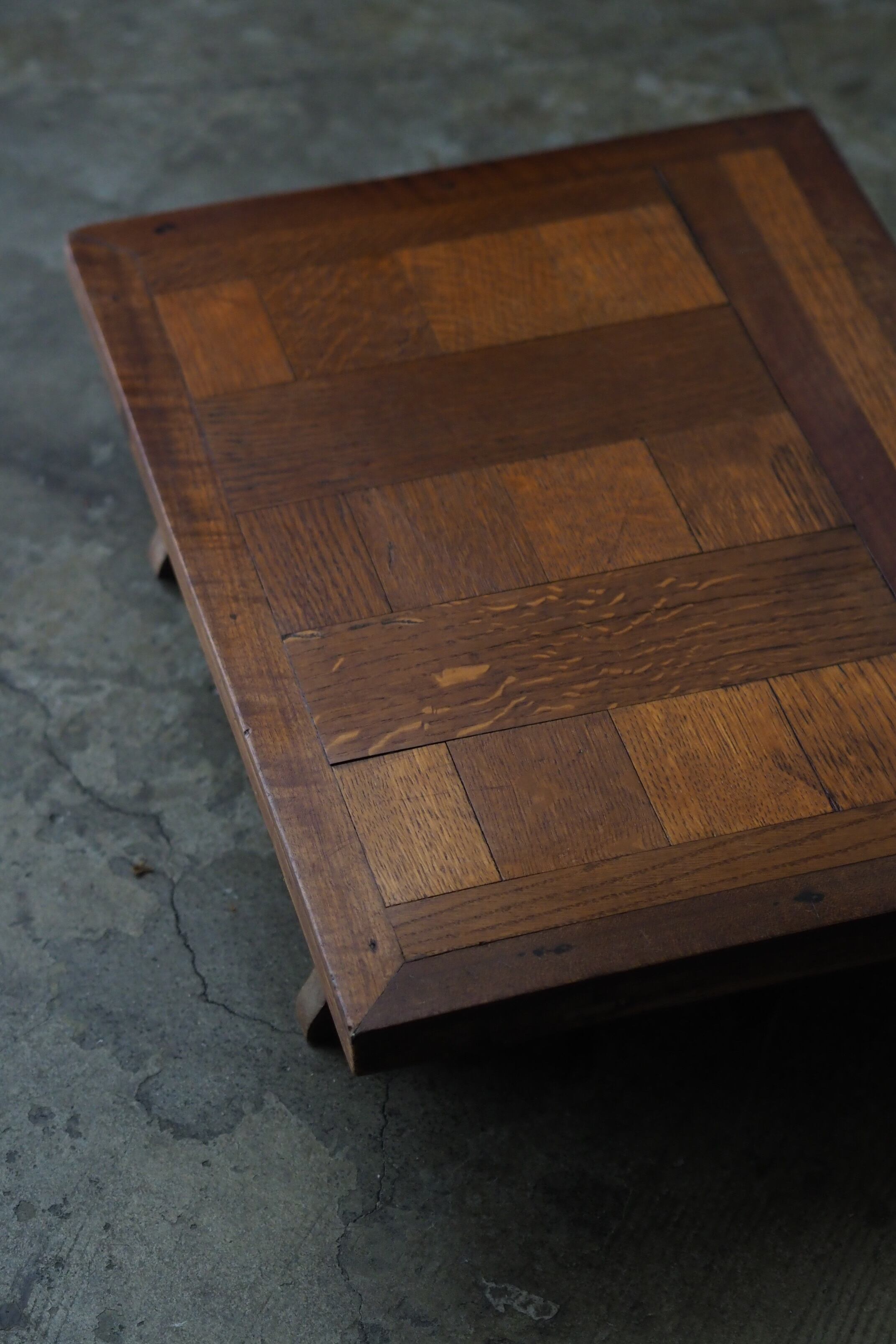 ビスポーク服やシューズを主としたクラシカルな空間に似合うオーク材組み木の展示台。