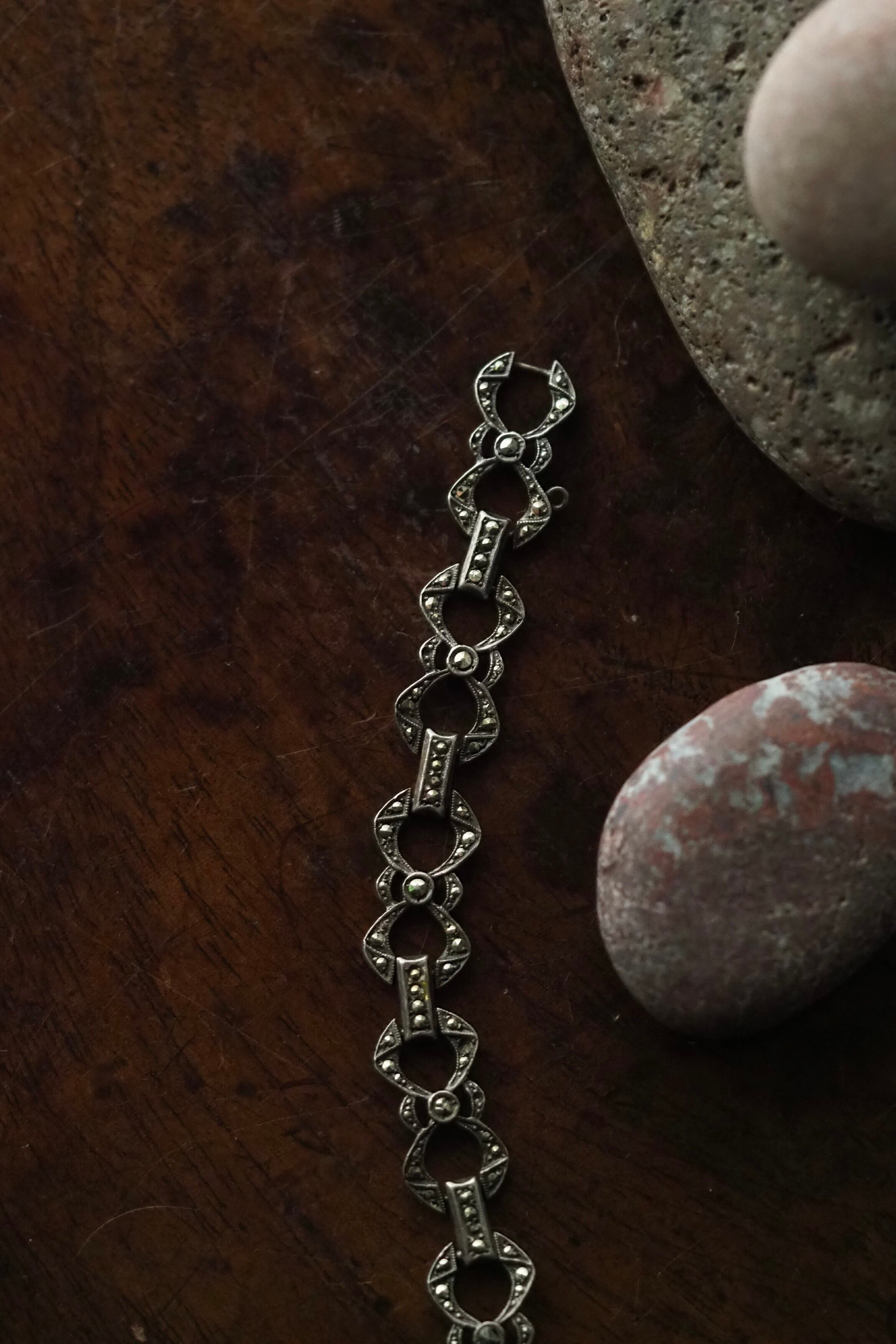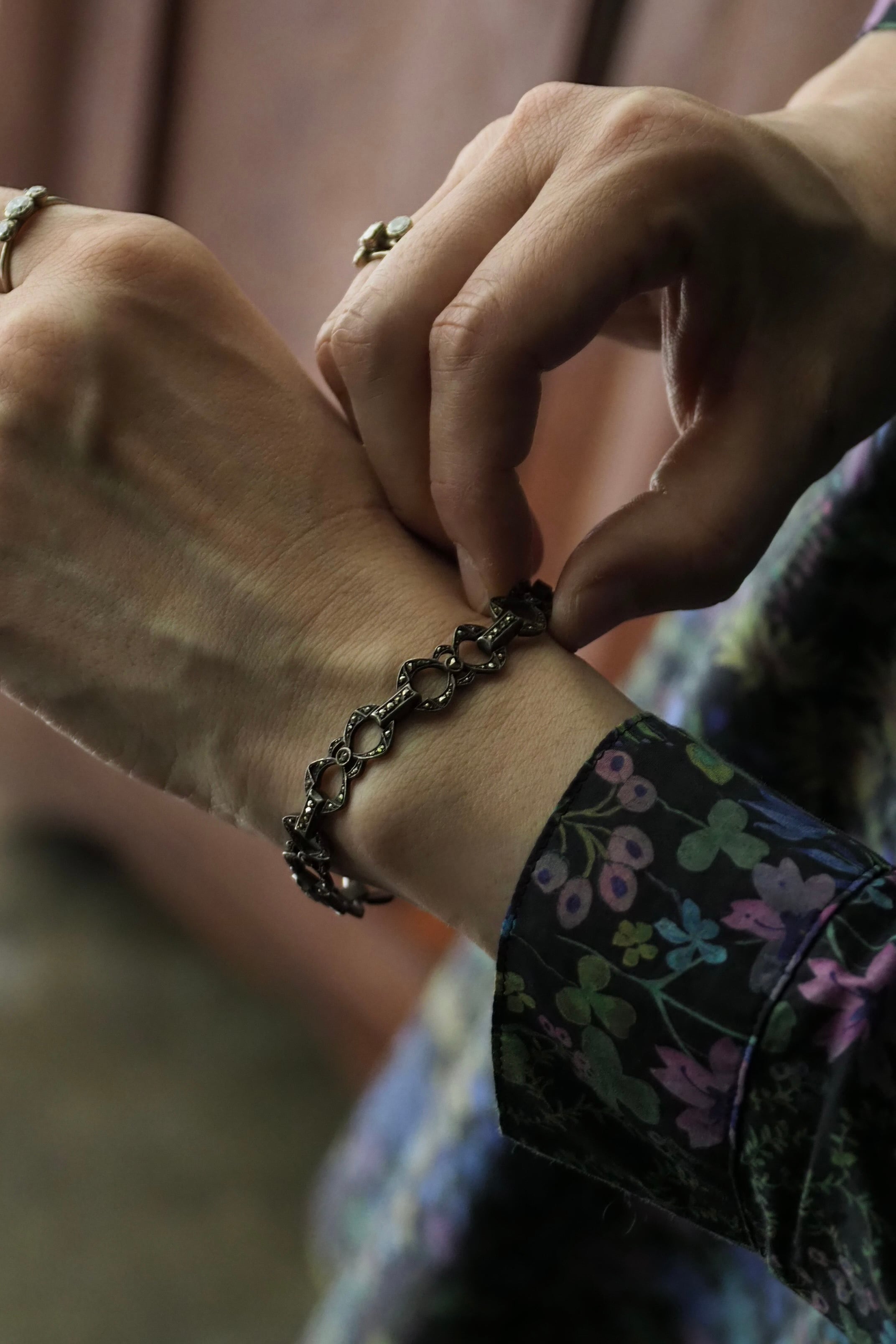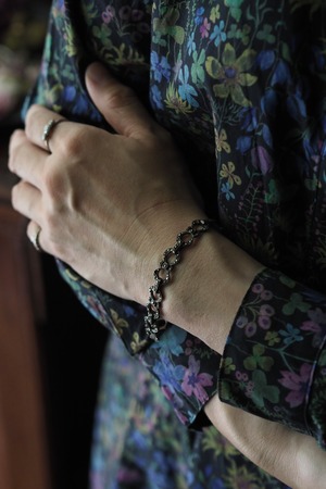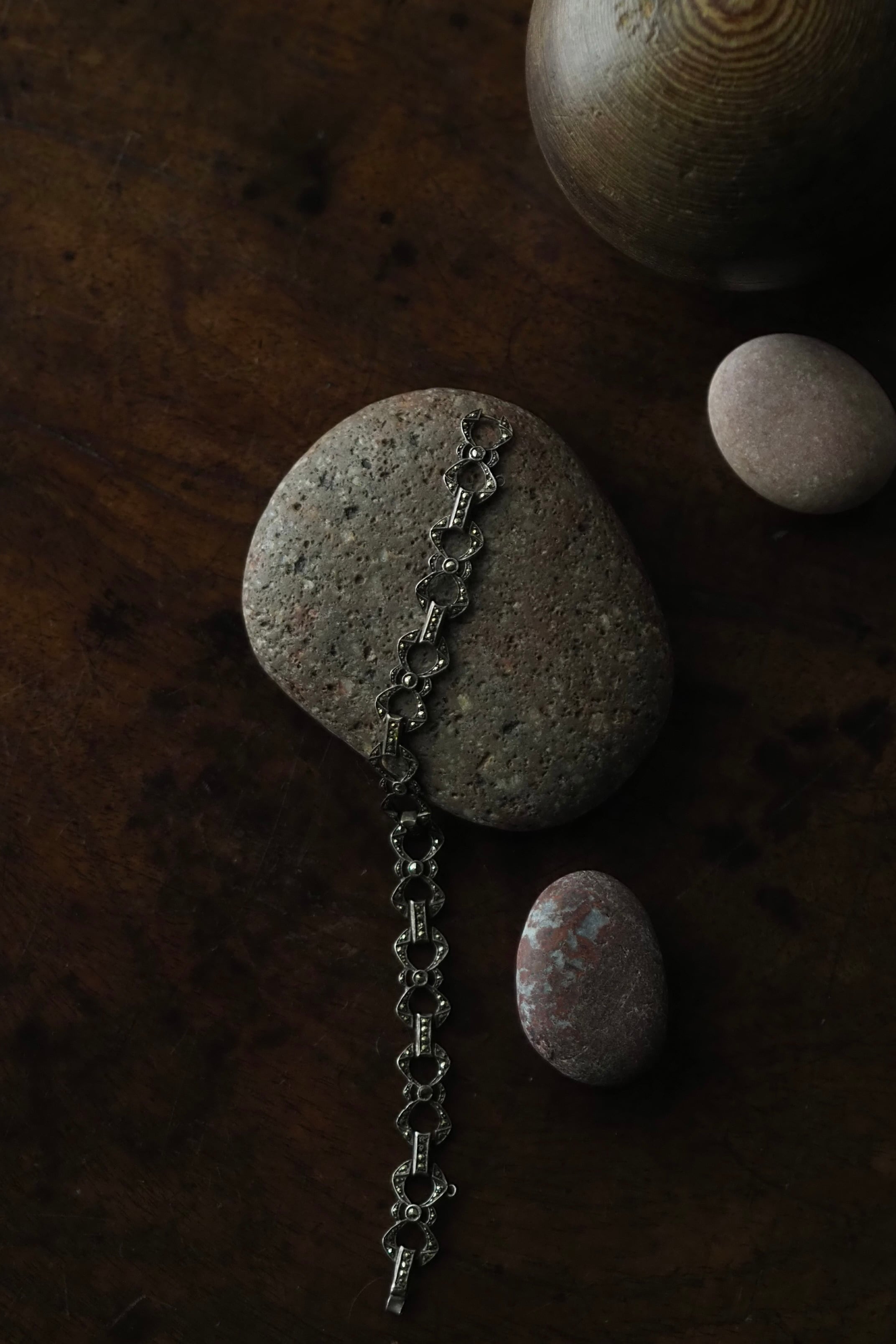 深い煌めき、角度が変わる度控えめにきらりと光るマーカサイトのブレスレット。
