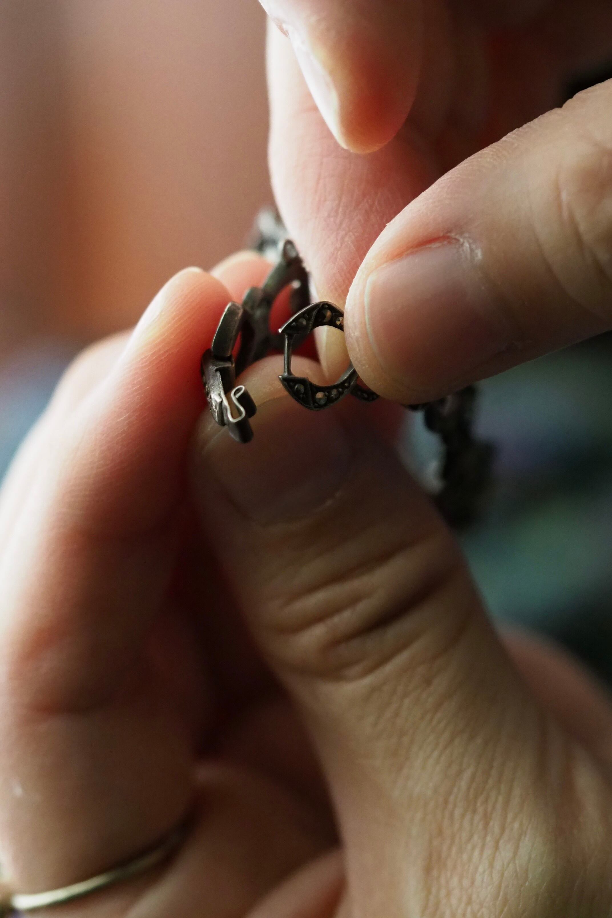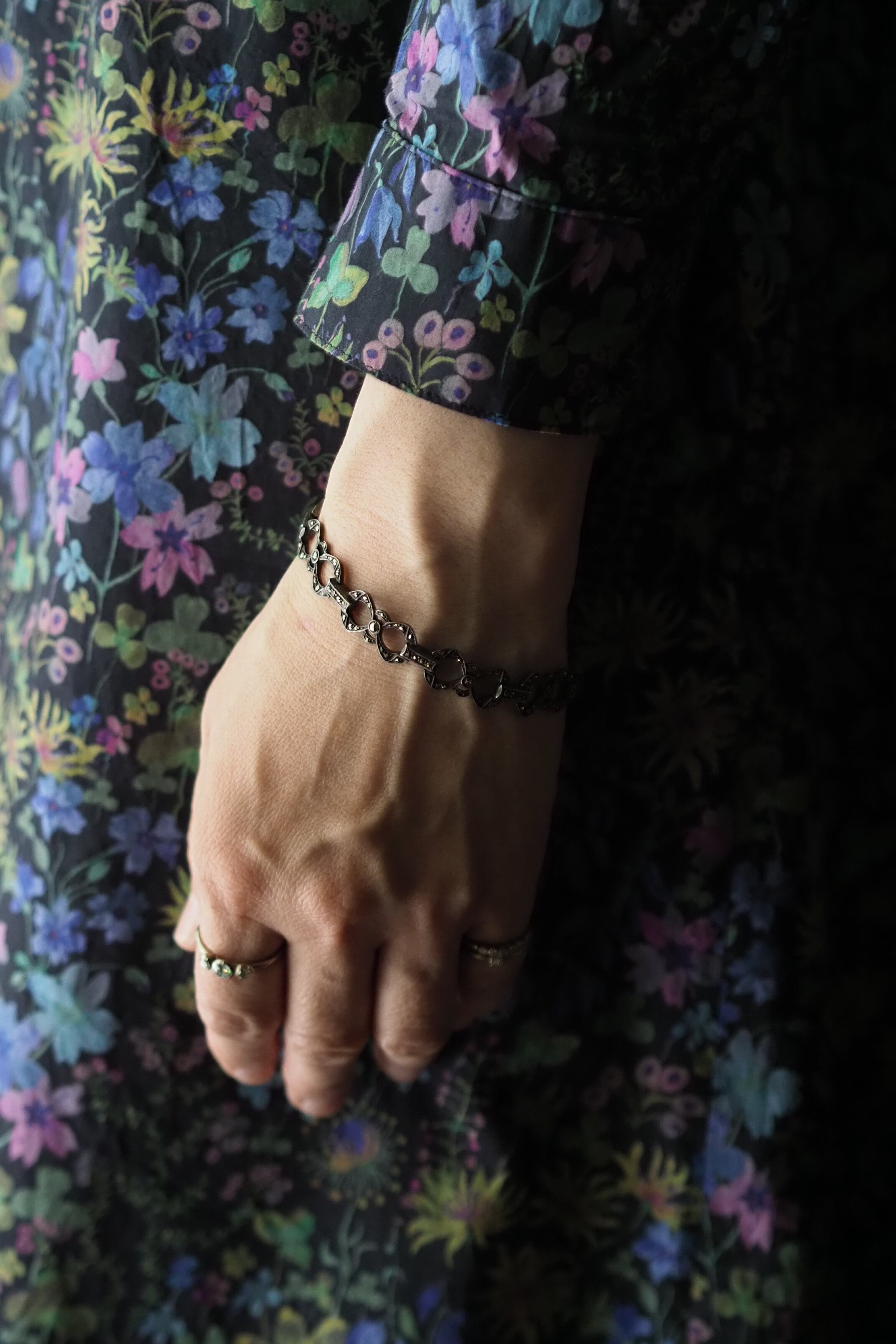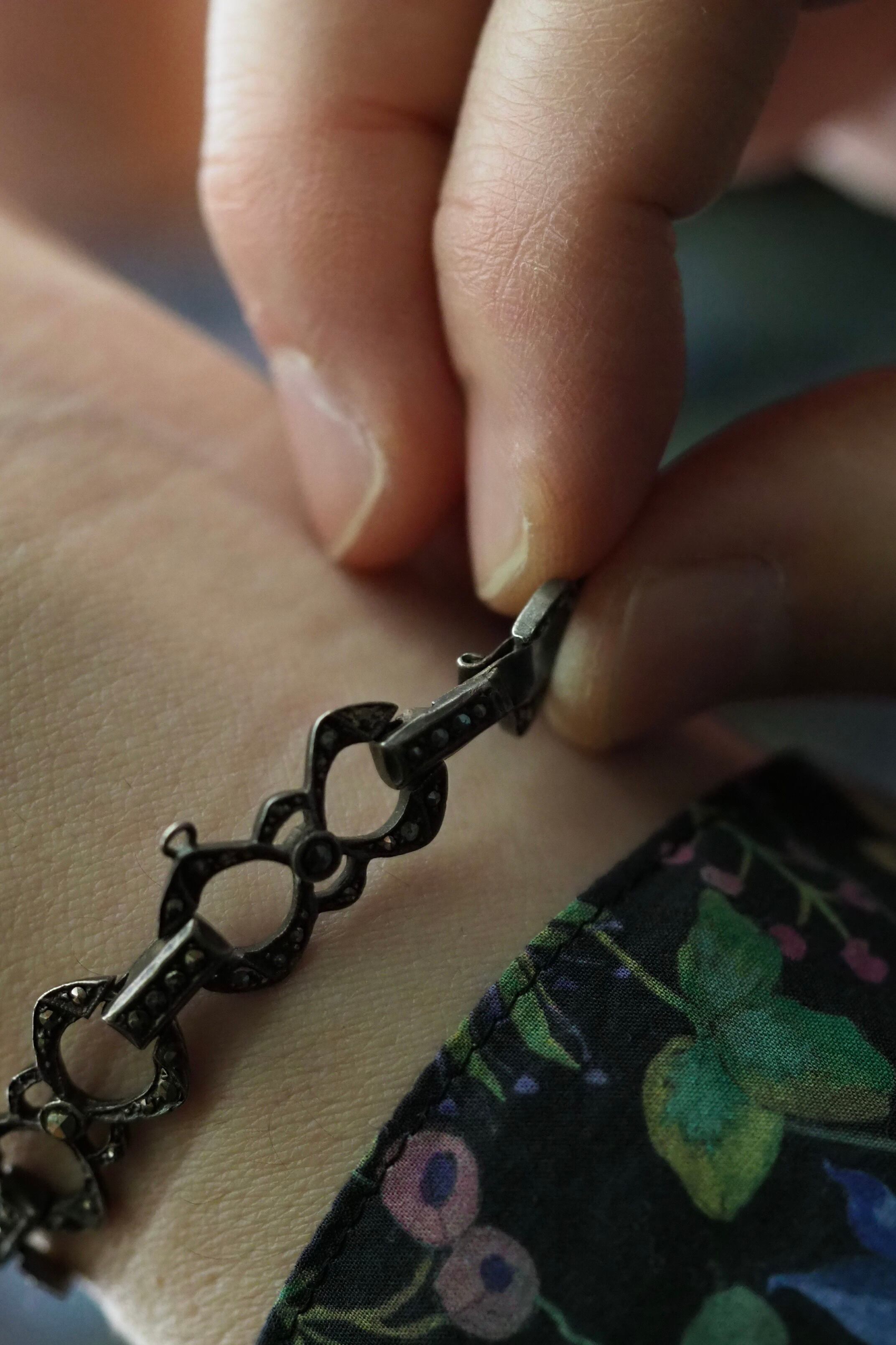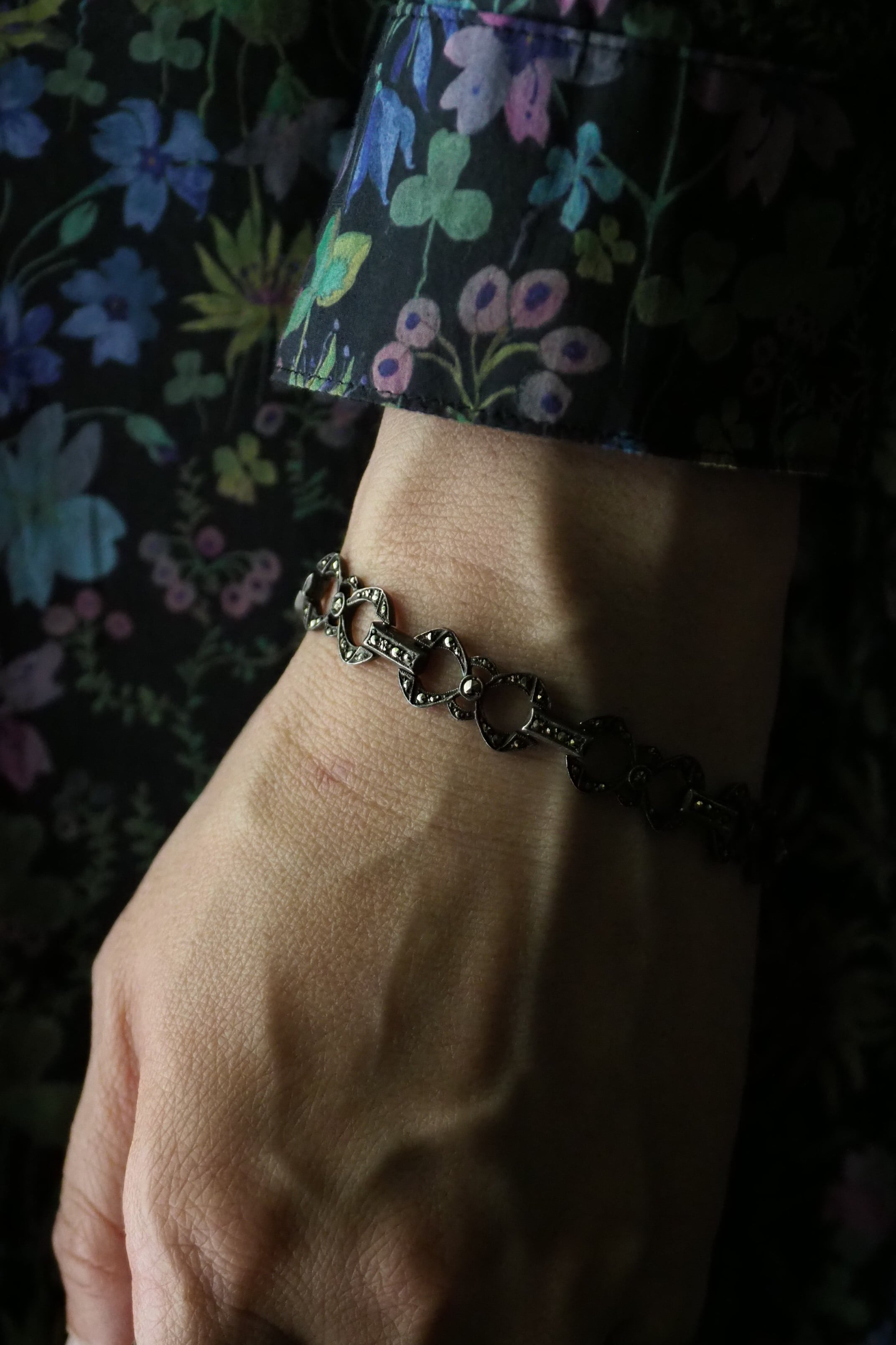 深い煌めき、角度が変わる度控えめにきらりと光るマーカサイトのブレスレット。