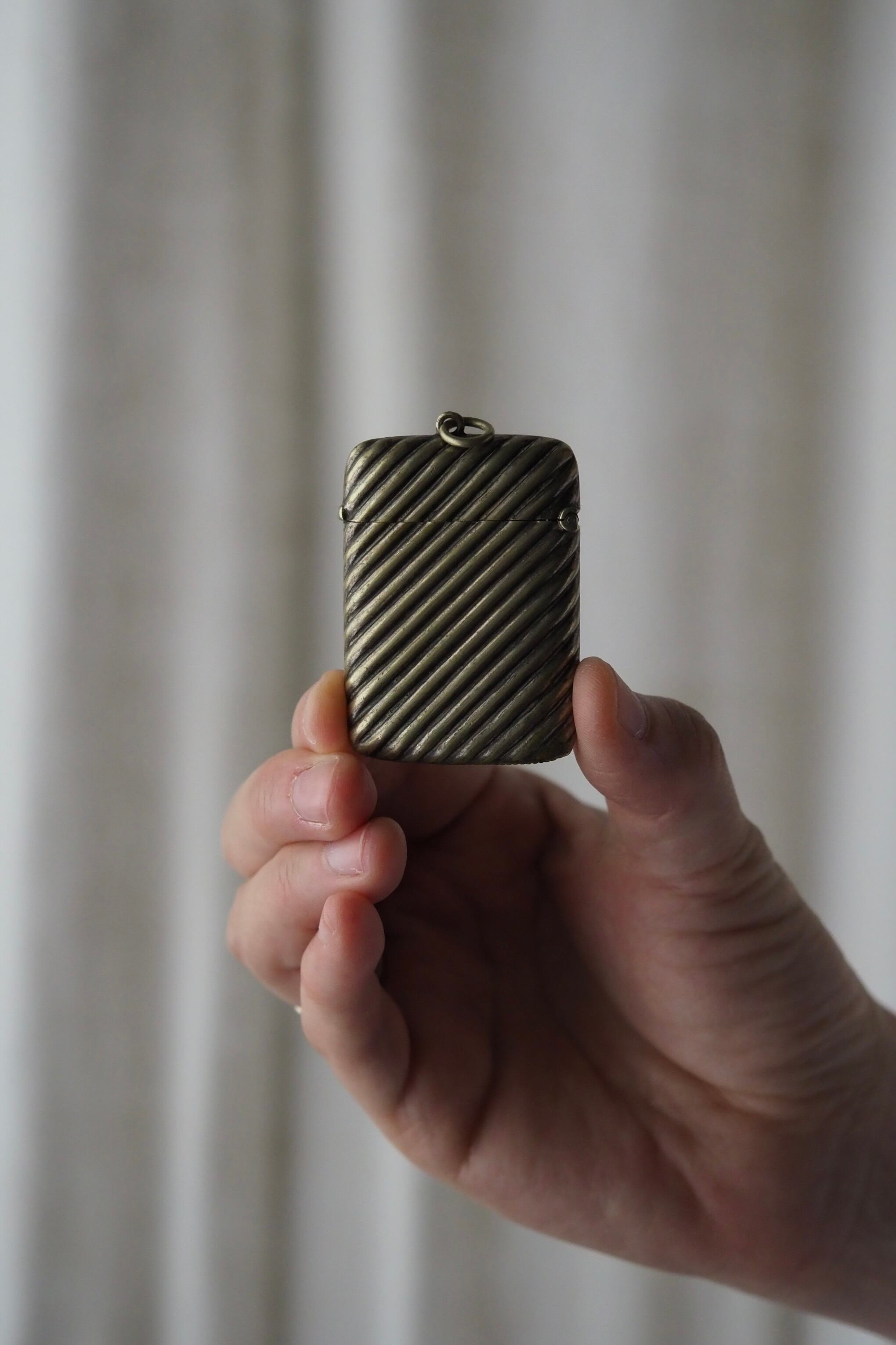 紳士の携行品、マッチを入れていたヴェスタケース、"ヴェスタ"とは火の女神の名から。