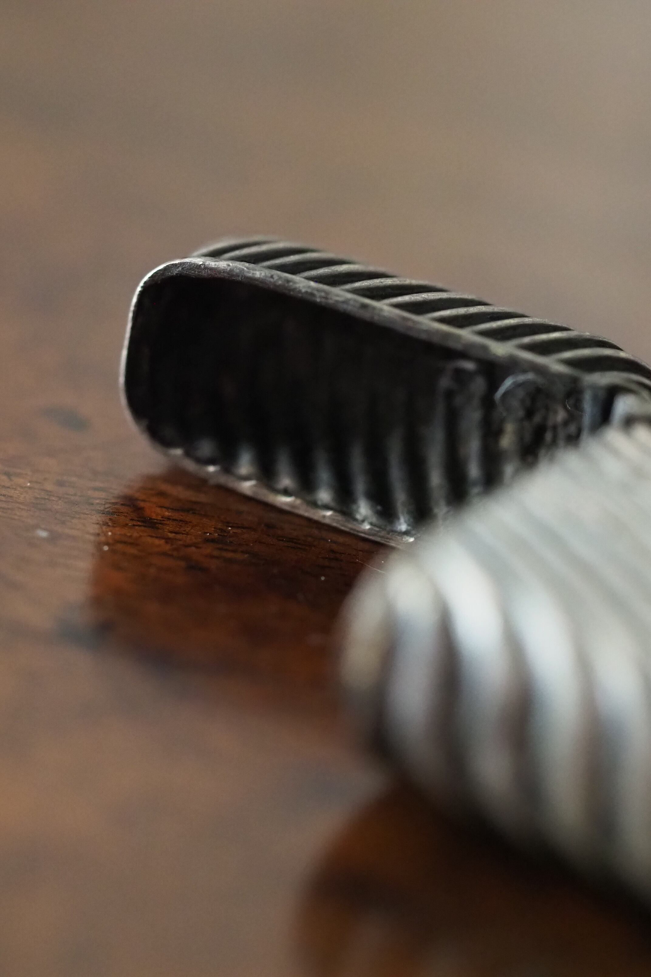 斜めストライプの溝デザイン、きちんとしたマナーを感じさせる。コレクターズアイテムとしてとにかくお洒落。