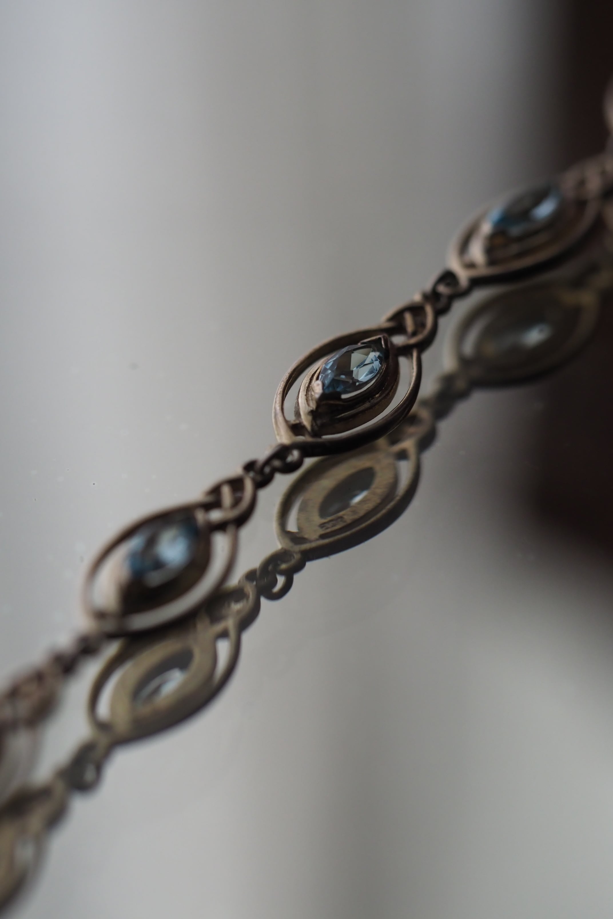 透明感あるブルートパーズがまるで瞳、瞳孔をかたどるデザインで連なるブレスレット。