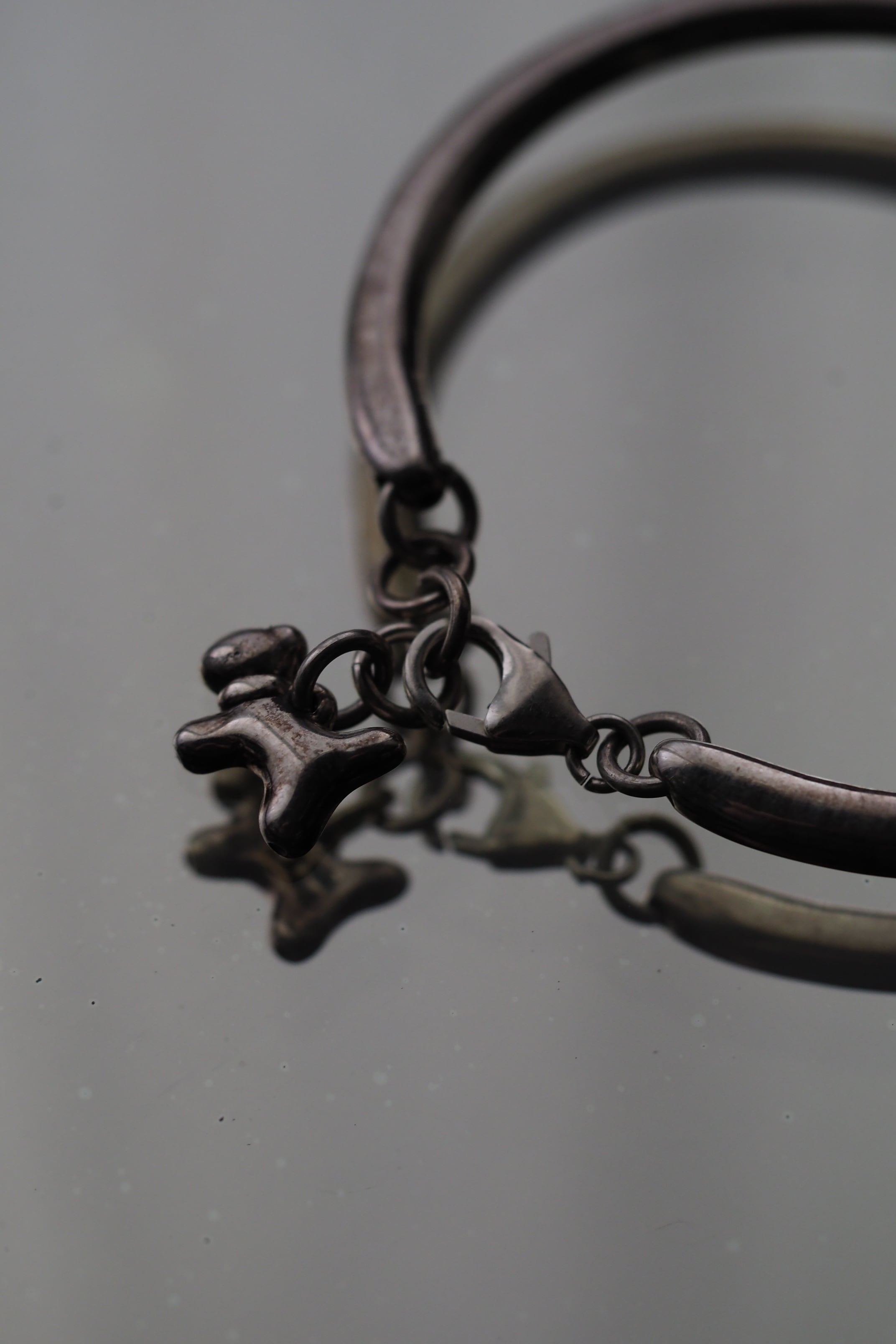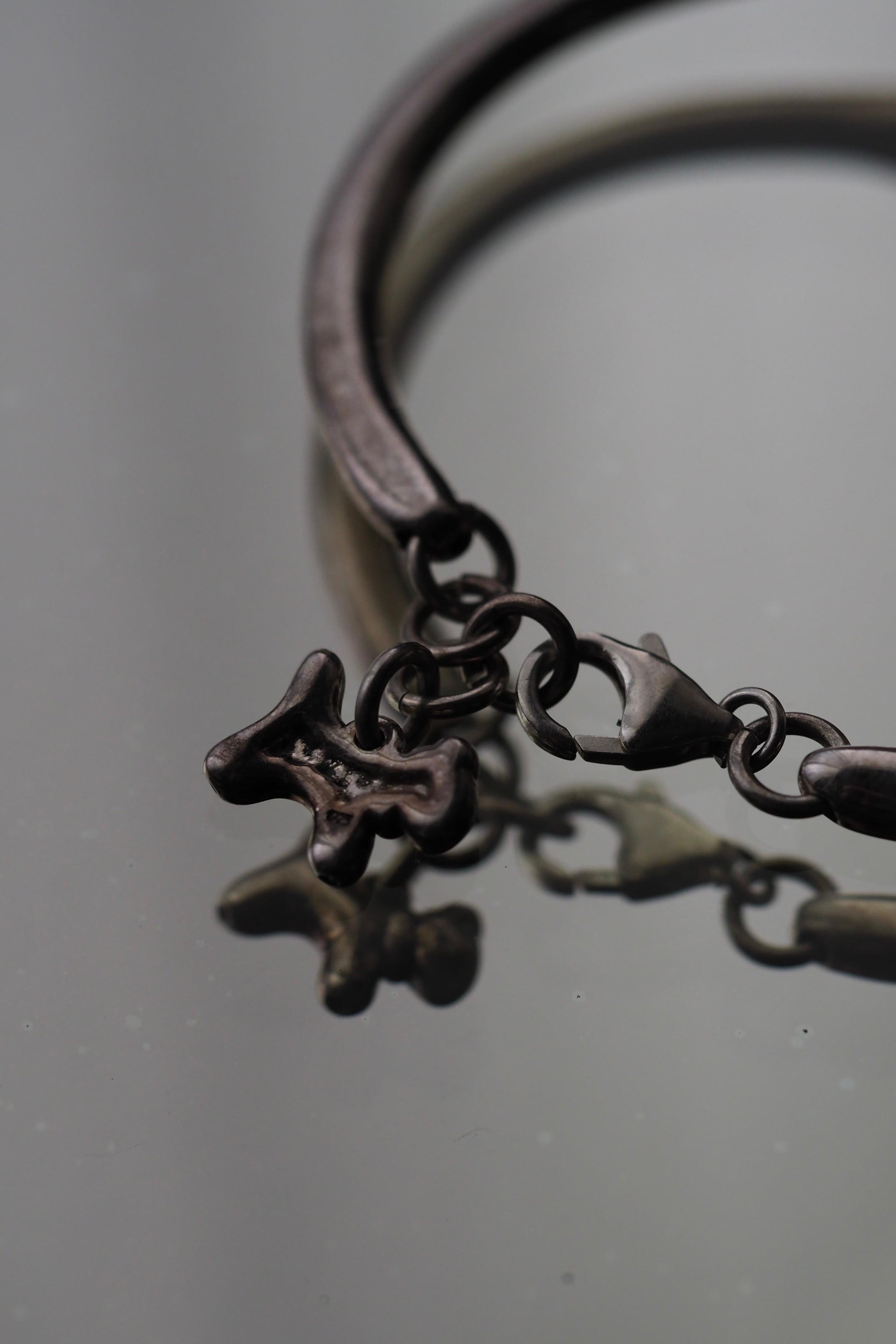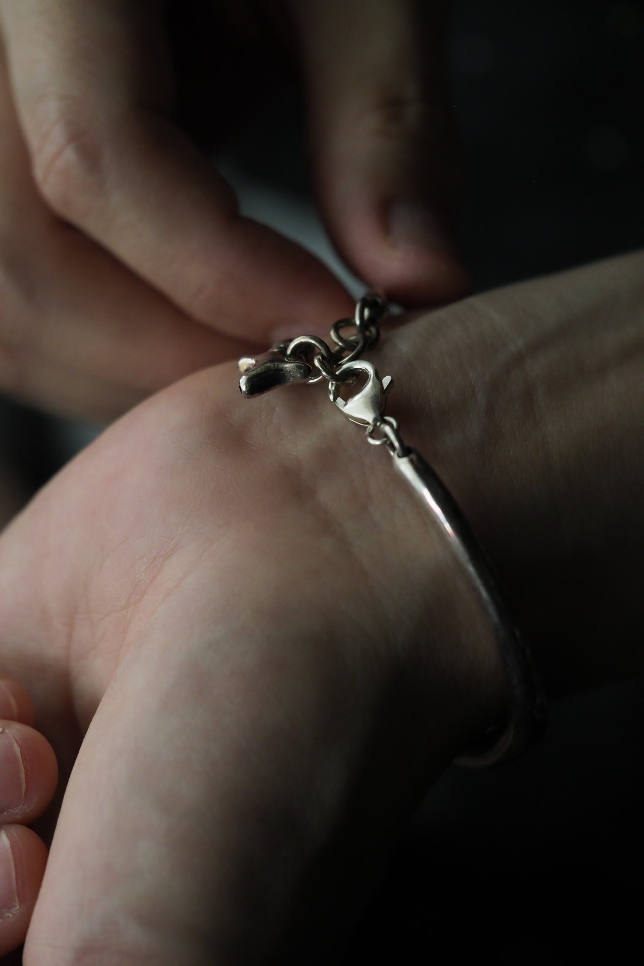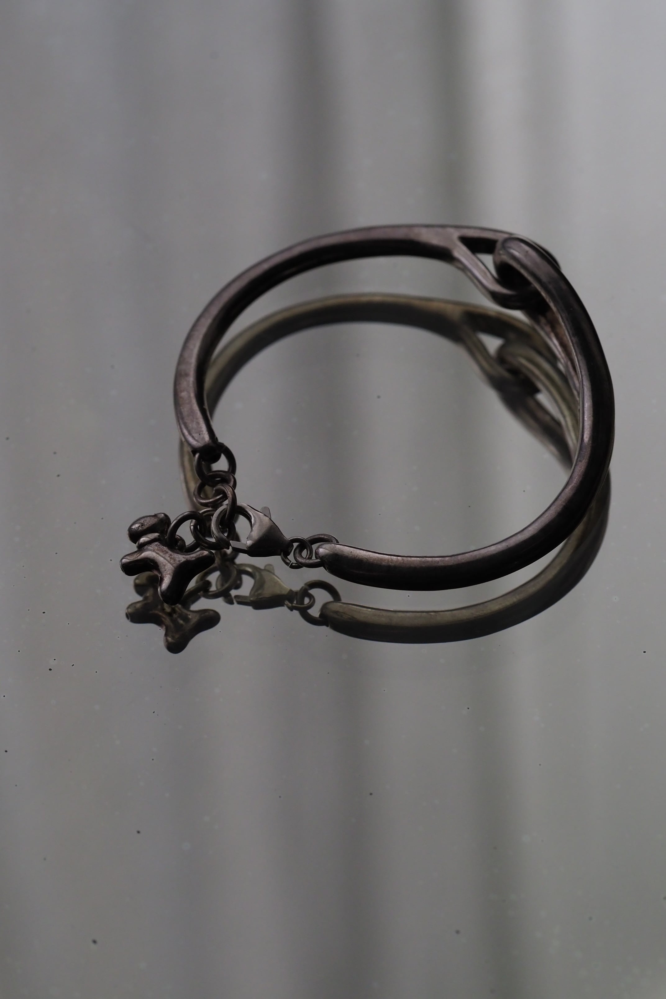 さっぱりと垢抜けたコーディネートに映えるスターリングシルバーのカフブレスレット。