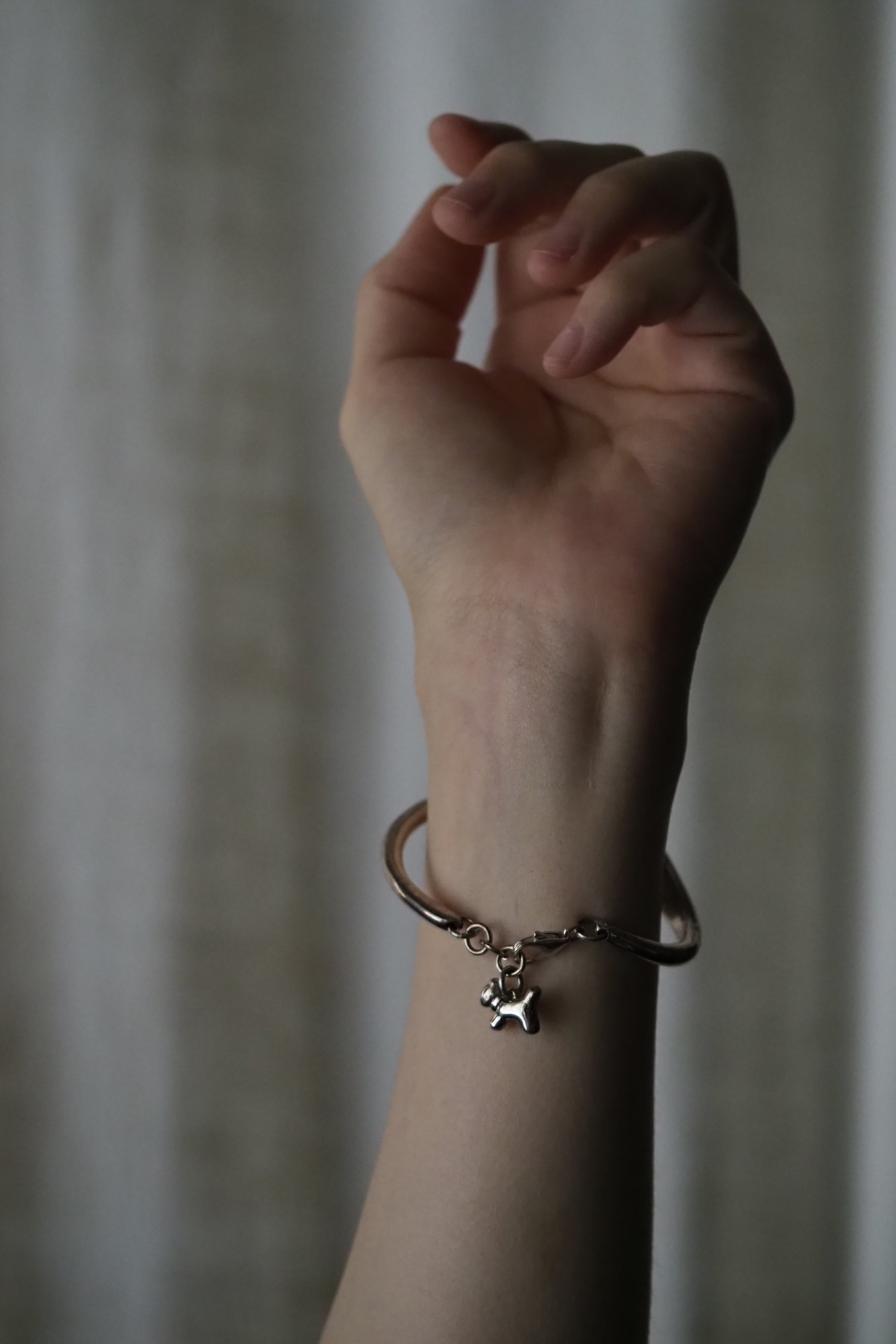 シャープなだけではなく愛嬌のあるテリア犬のチャームが揺れて、めりはりある。