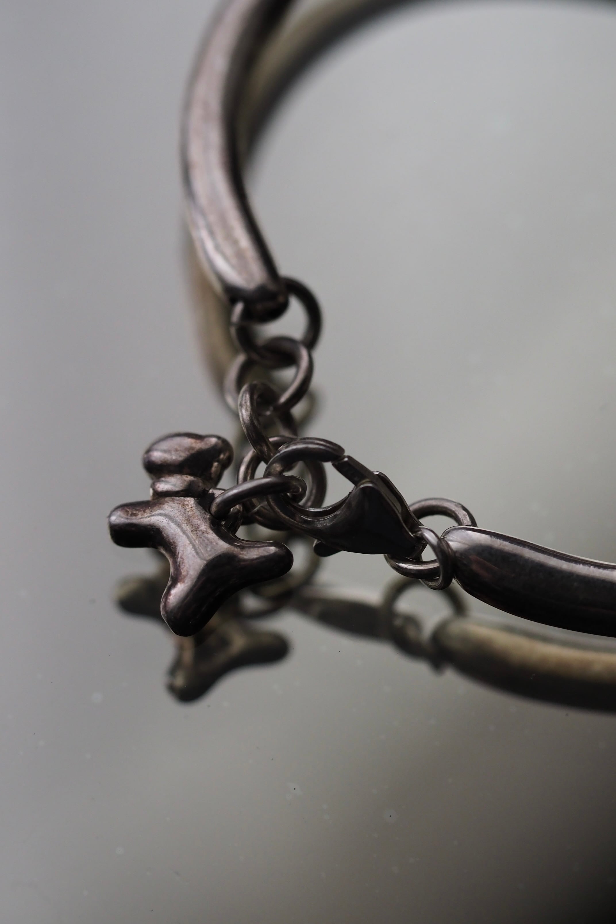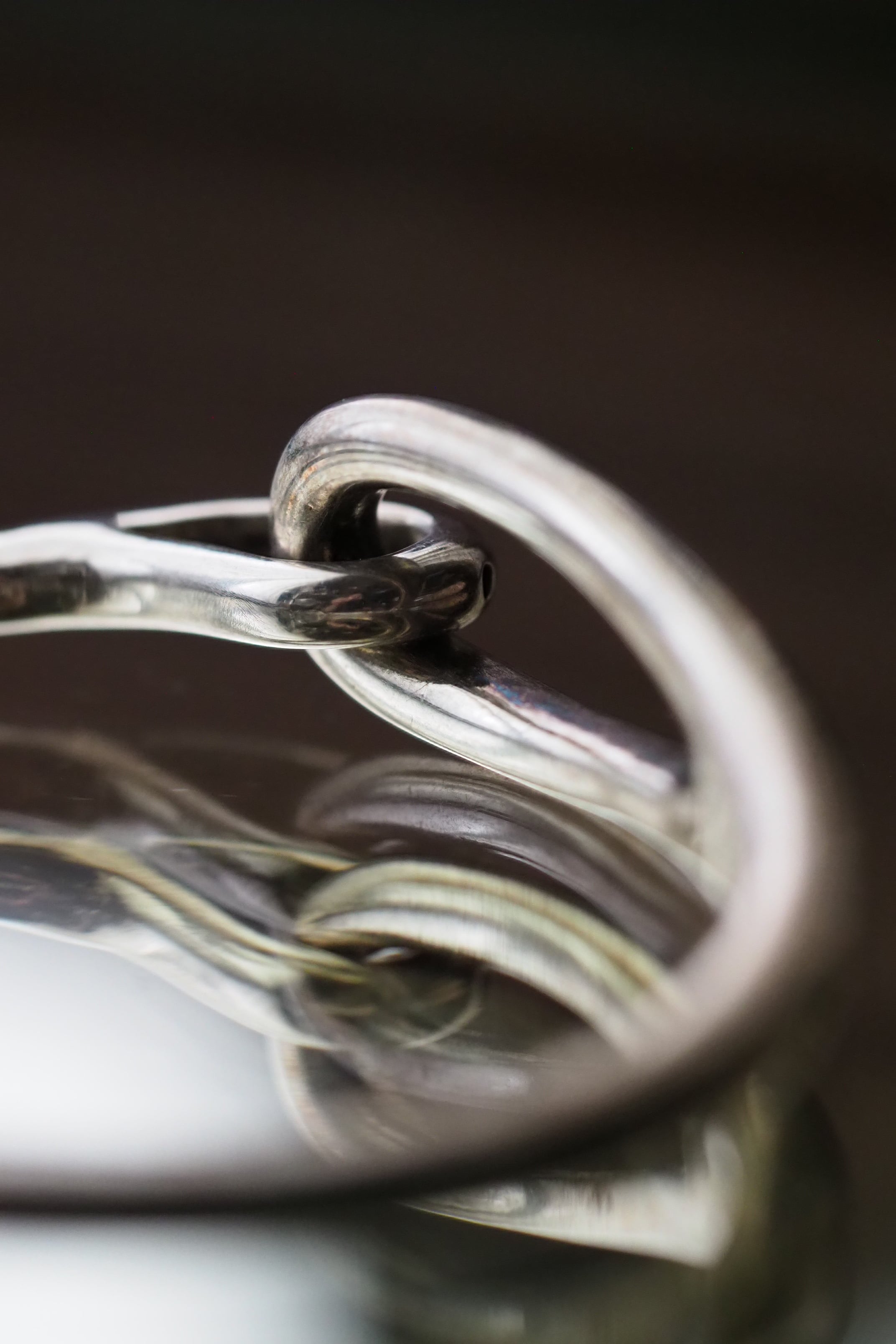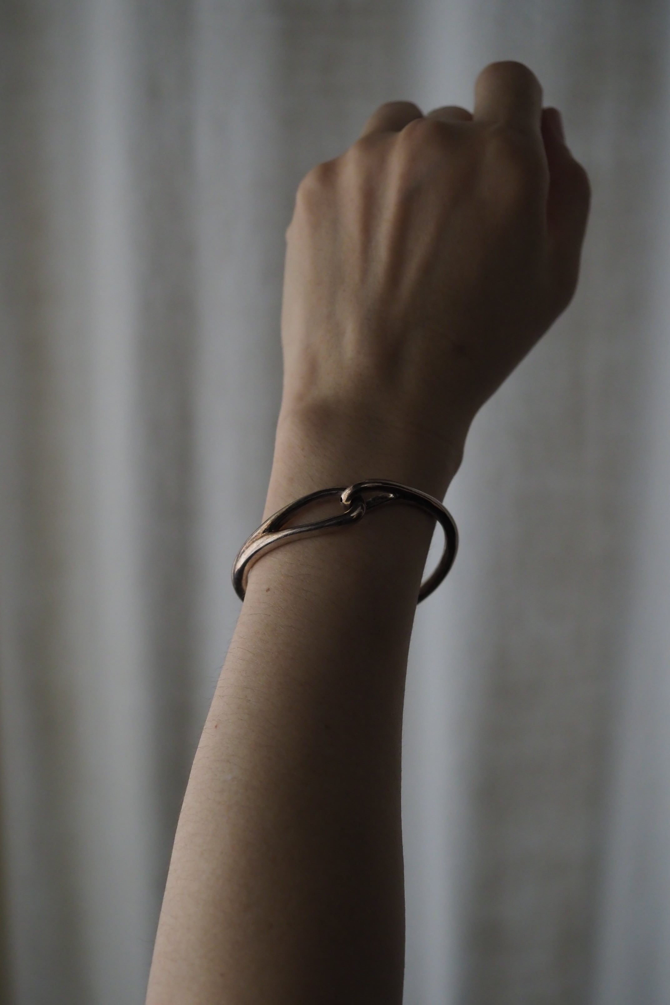 さっぱりと垢抜けたコーディネートに映えるスターリングシルバーのカフブレスレット。