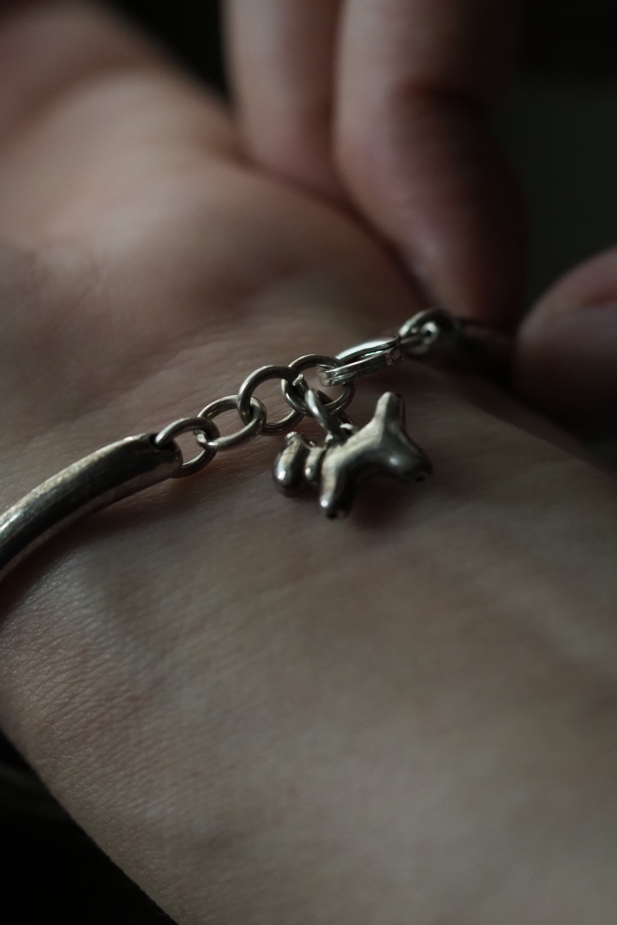 シャープなだけではなく愛嬌のあるテリア犬のチャームが揺れて、めりはりある。
