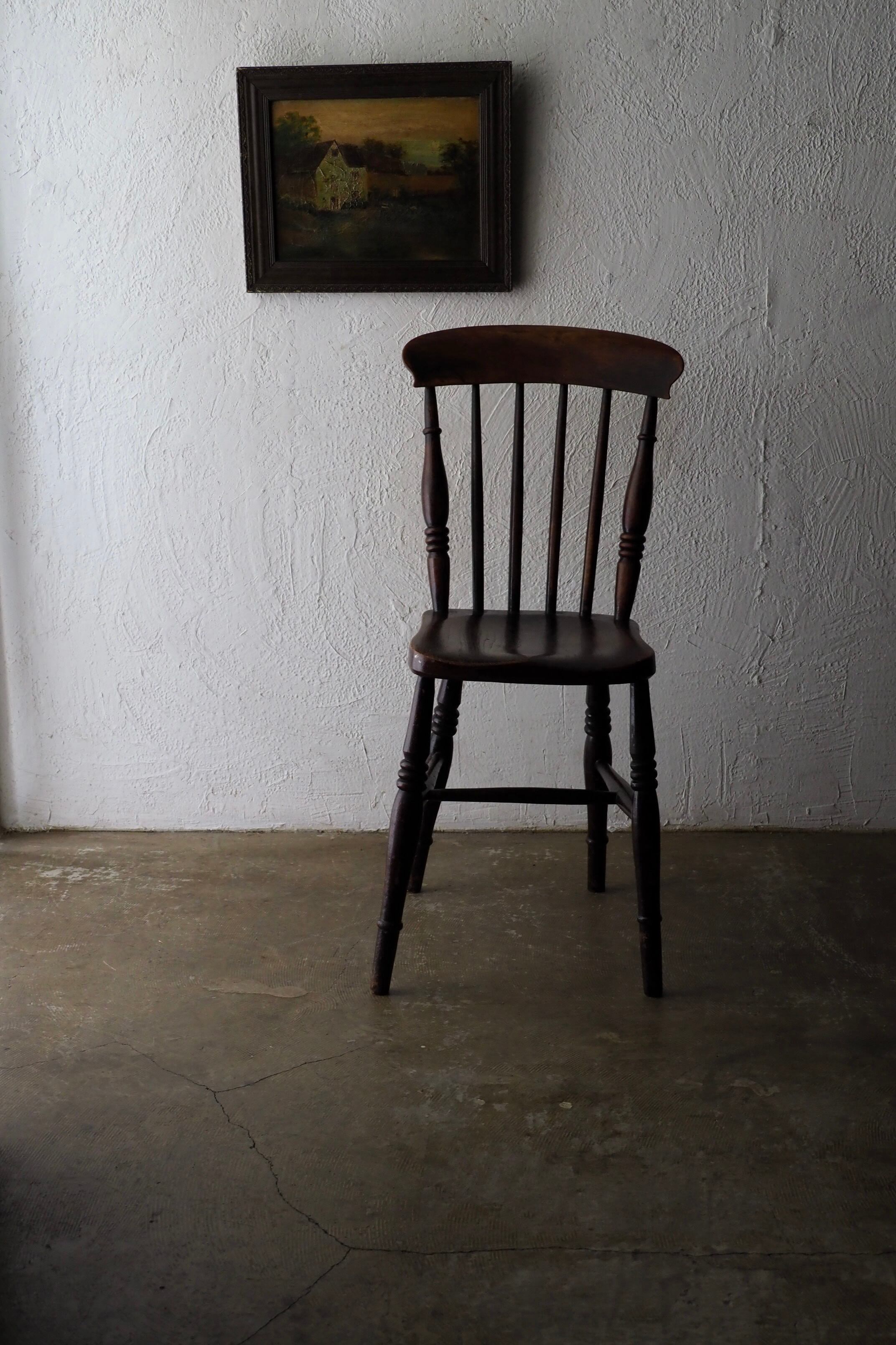 程良く全体にダークオークのステイン色、ウィリアム・モリスのクラシカルな設えにも気負わないキッチンのチェアとしても。
