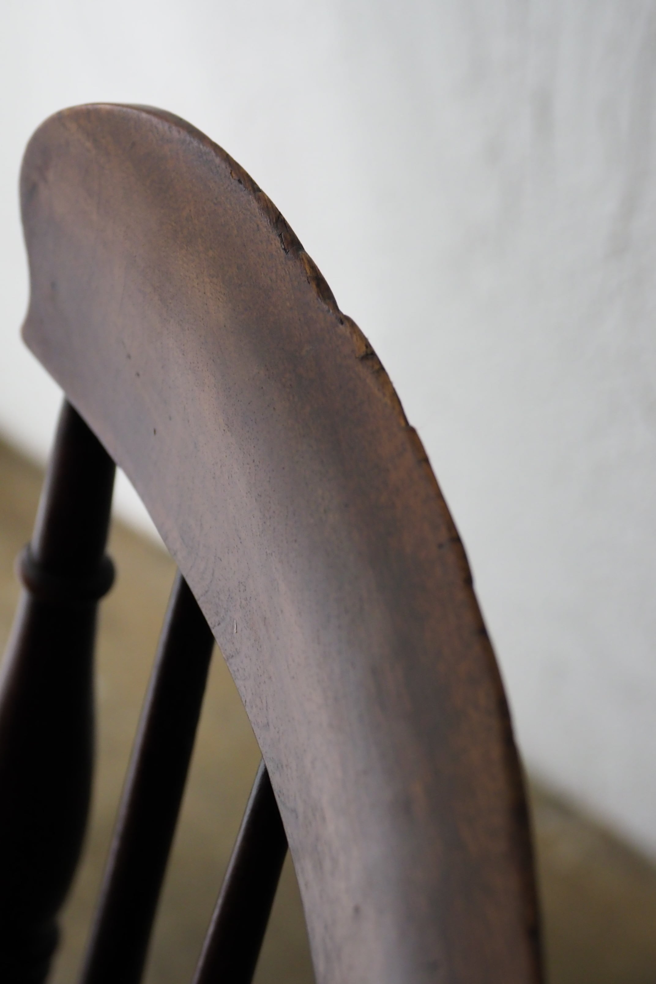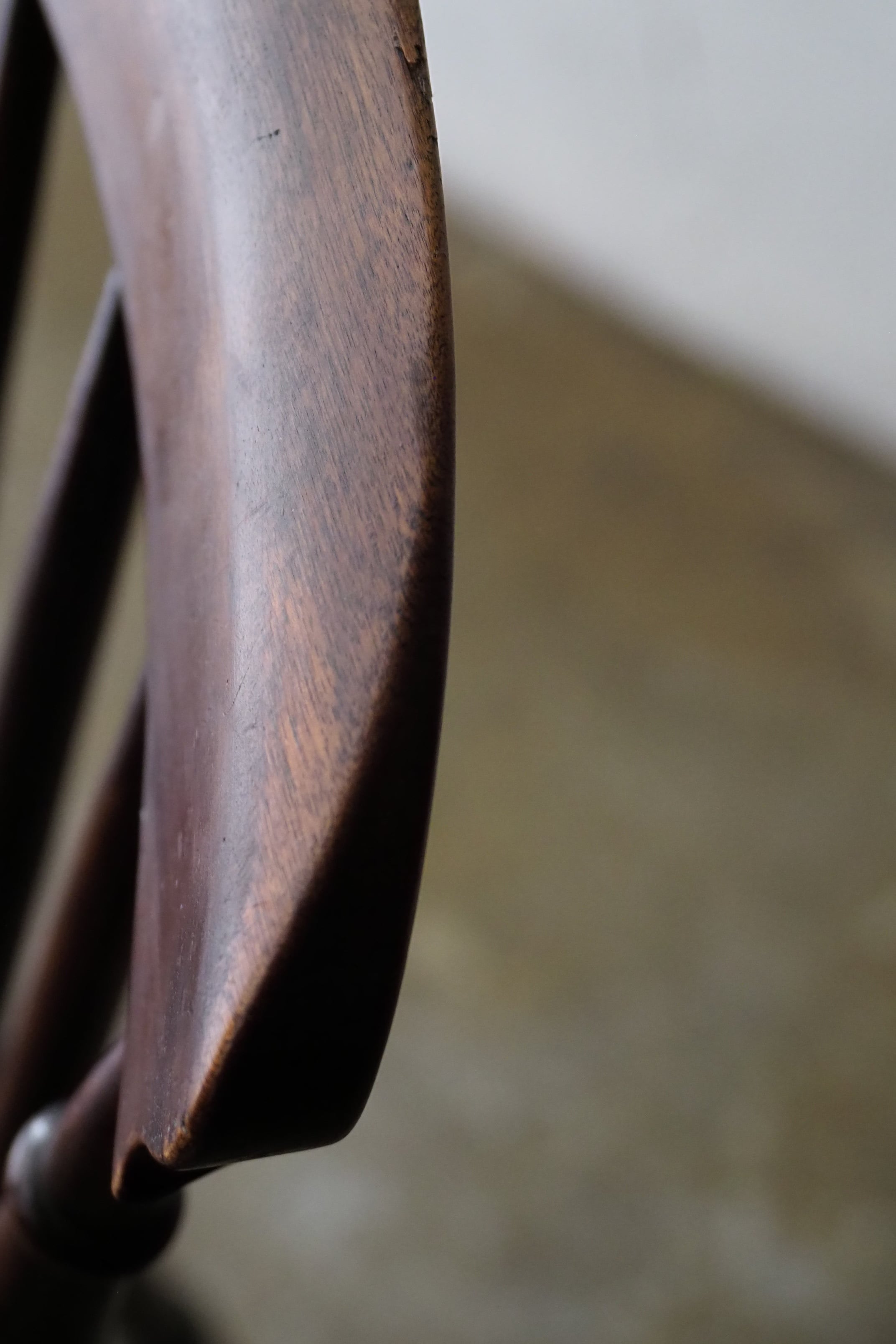 程良く全体にダークオークのステイン色、ウィリアム・モリスのクラシカルな設えにも気負わないキッチンのチェアとしても。