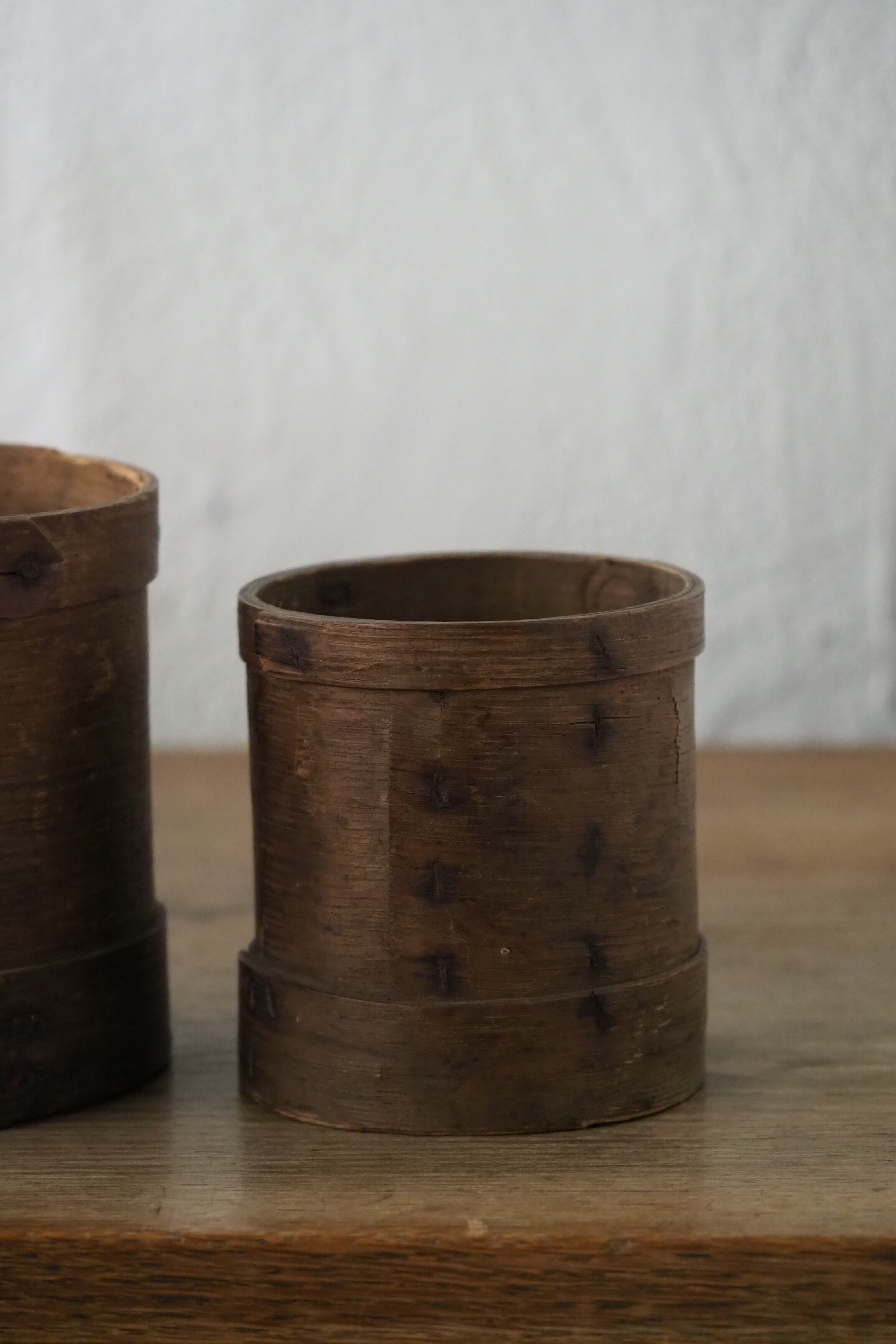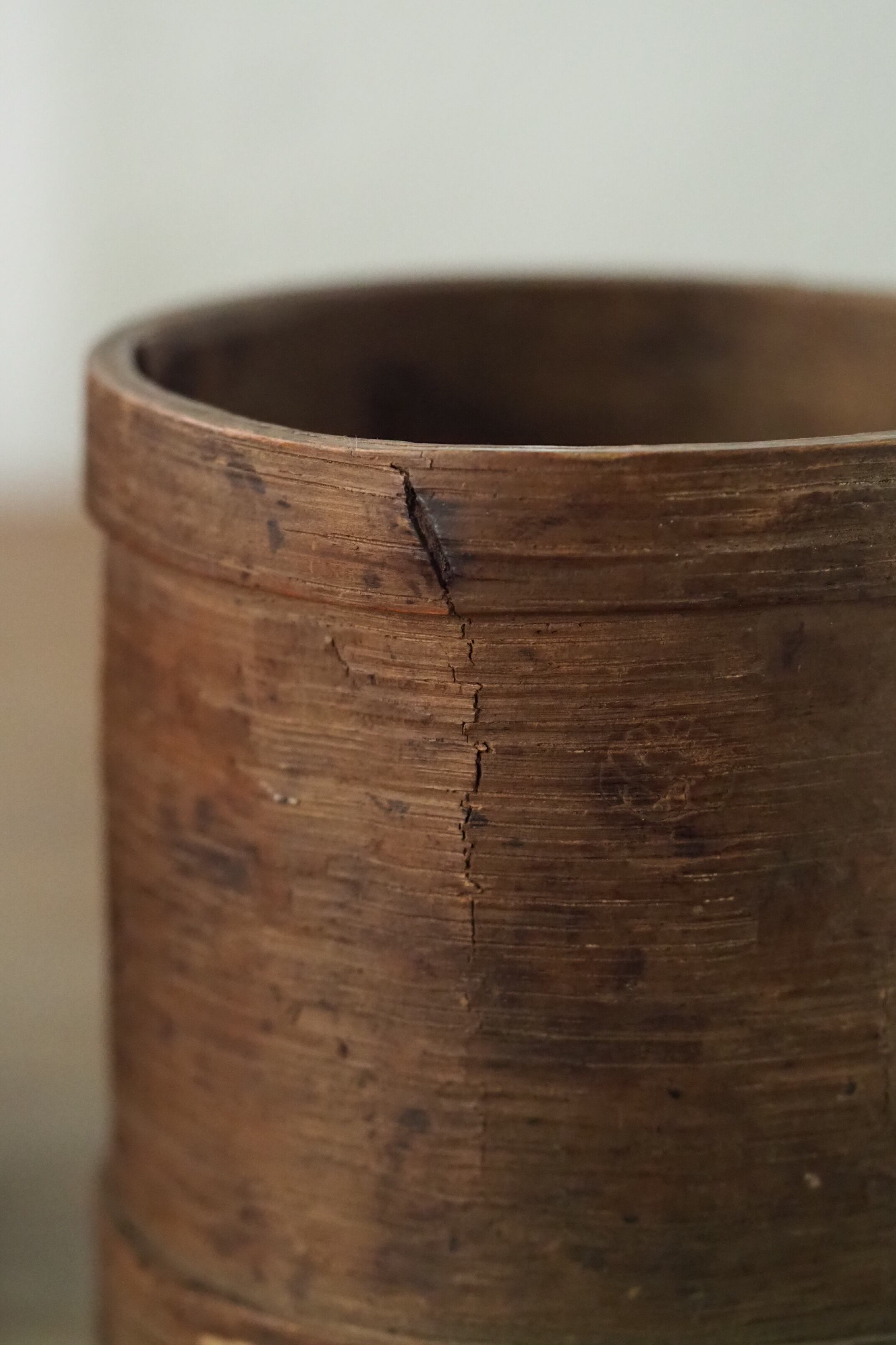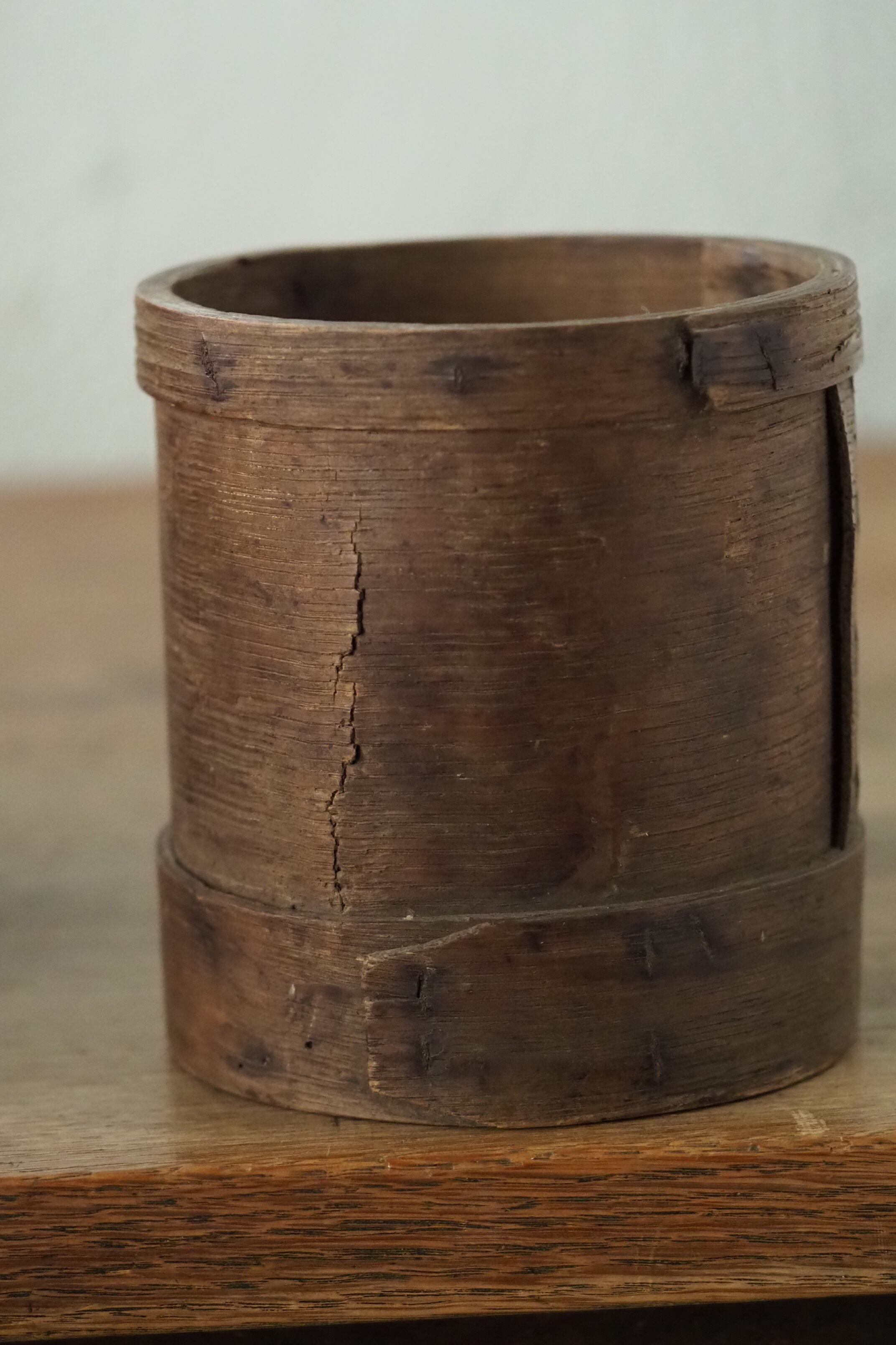 カサっとした乾いた質感、曲げわっぱの計量カップ。