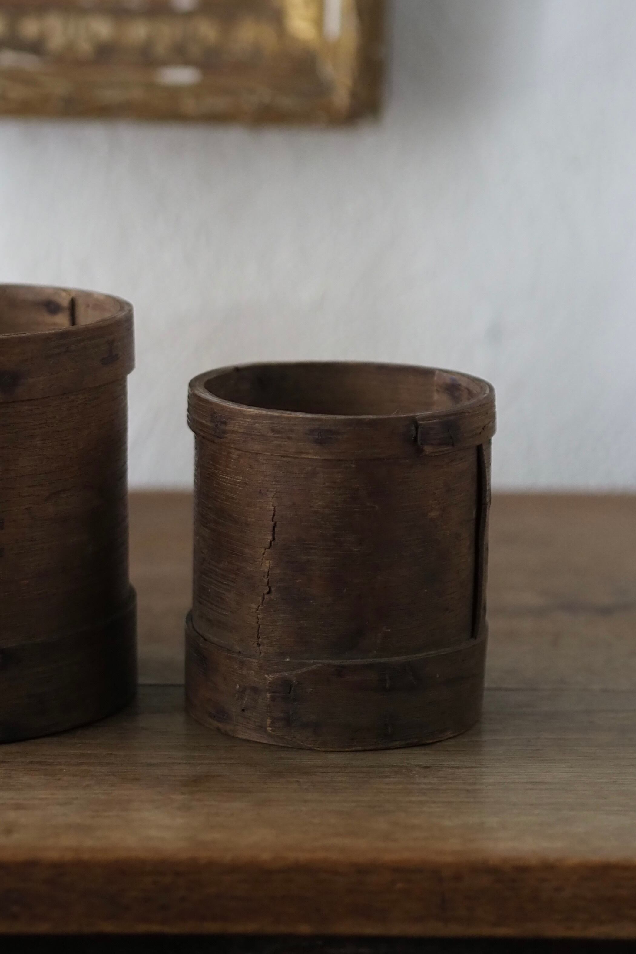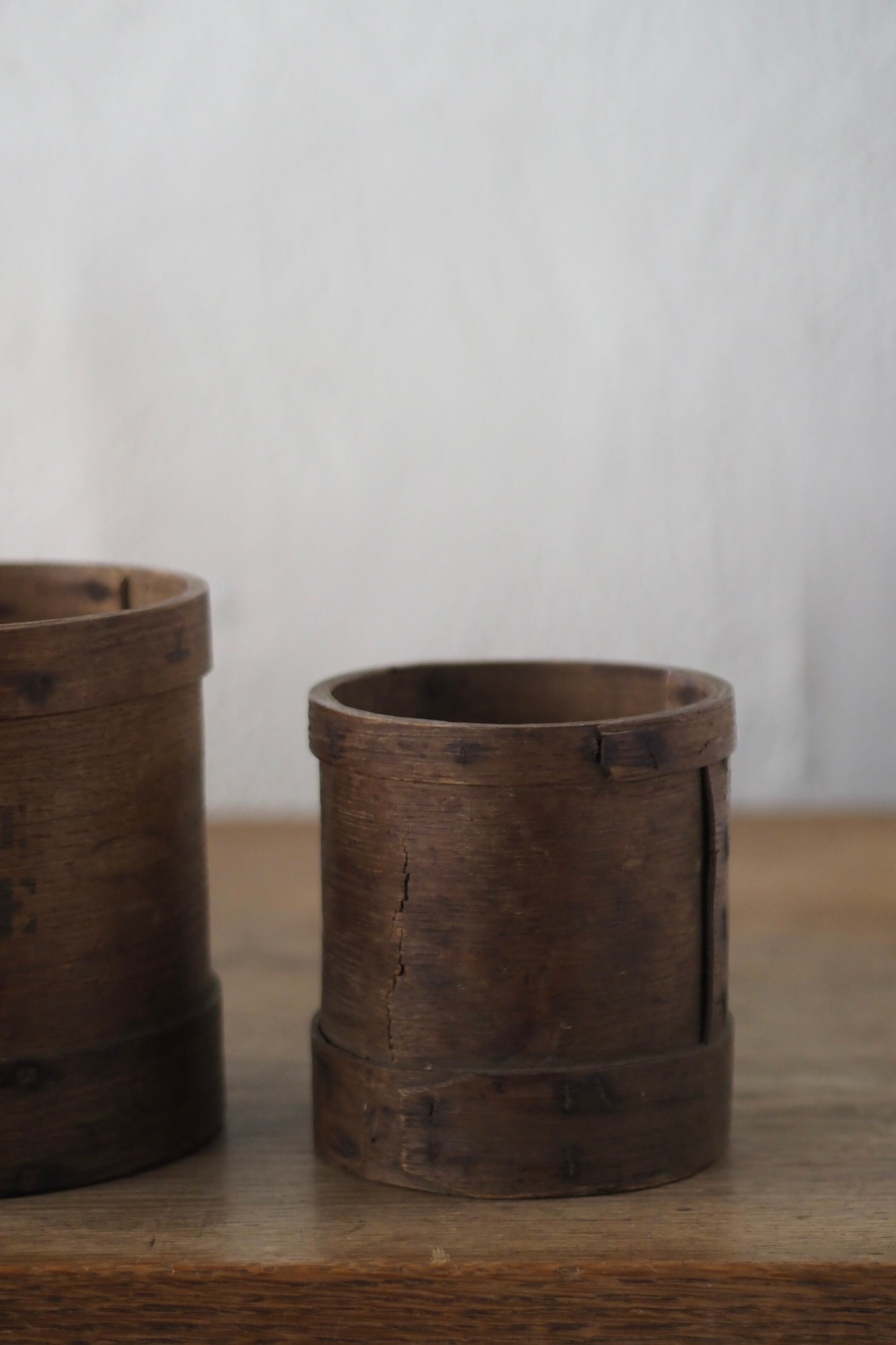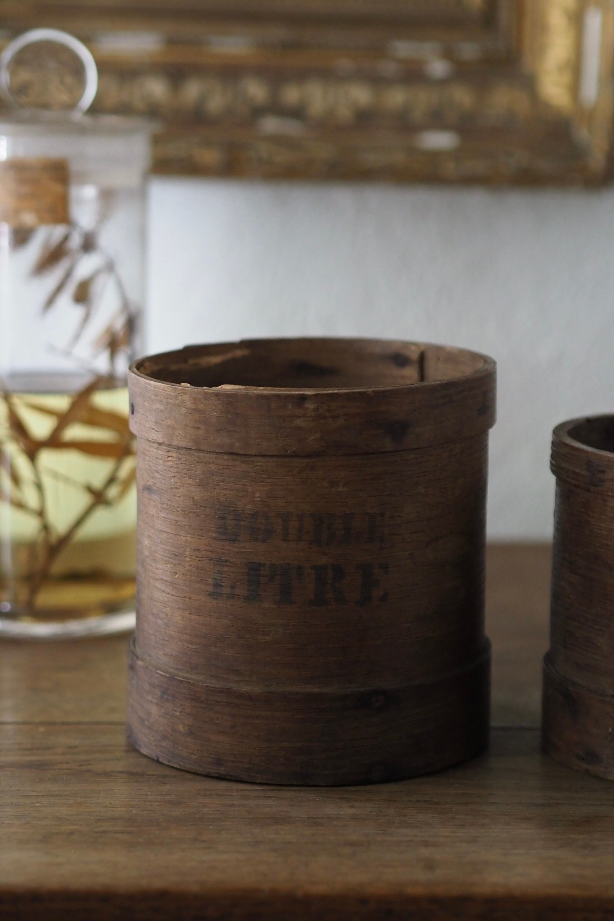 カサっとした乾いた質感、曲げわっぱの計量カップ。