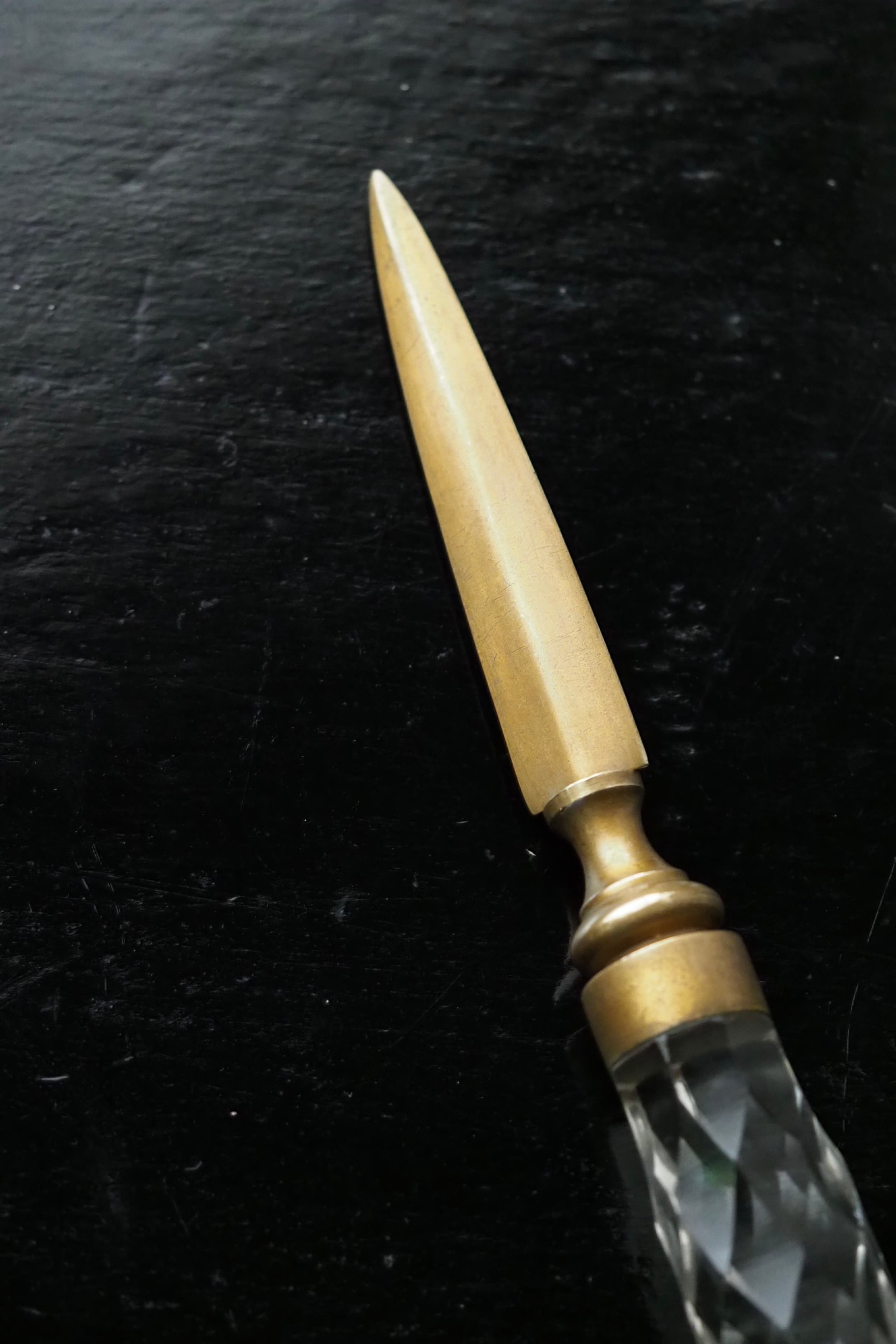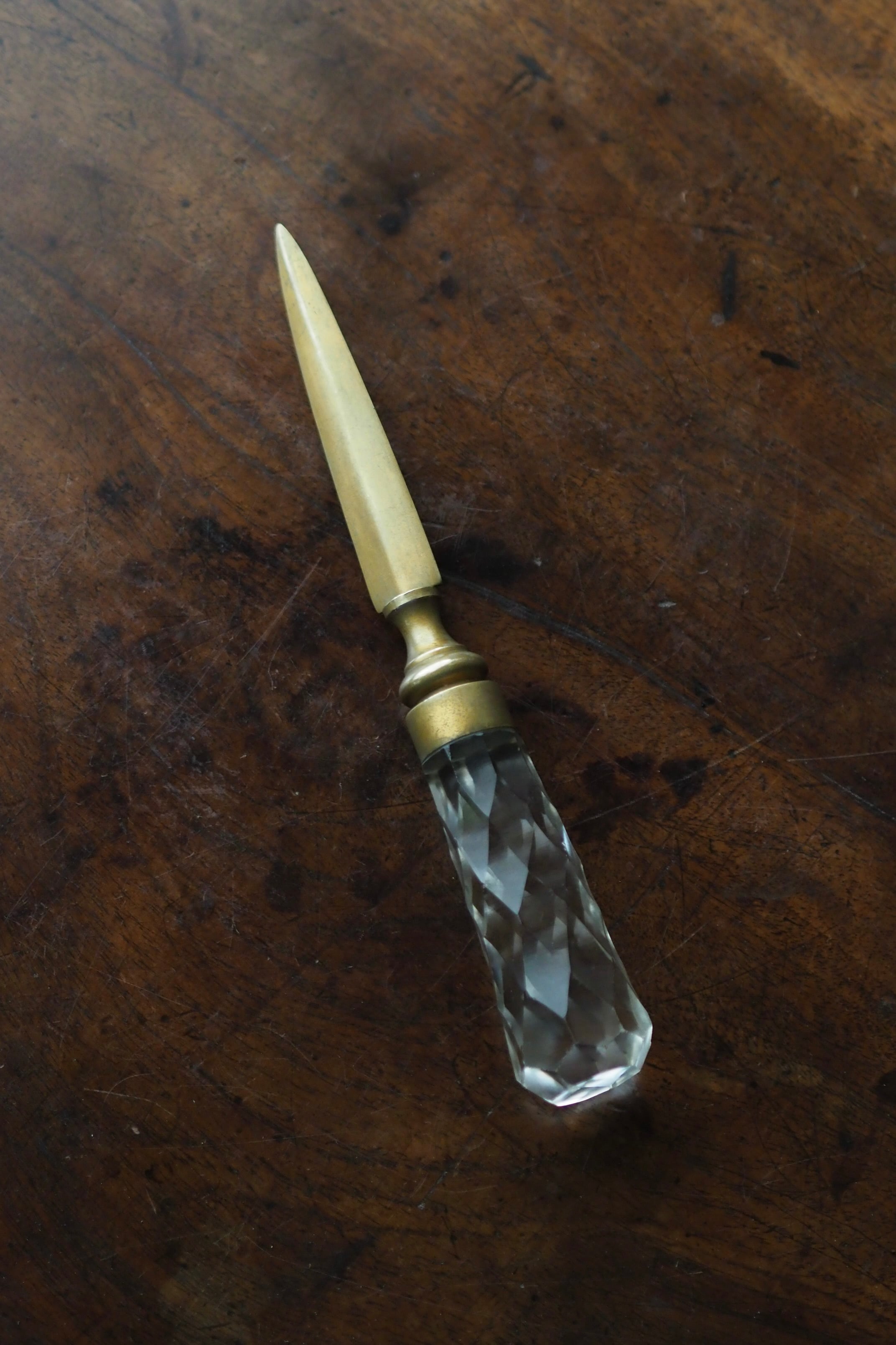 クラシカルなダイヤカットデザインの持ち手、ナイフ部分は真鍮製。