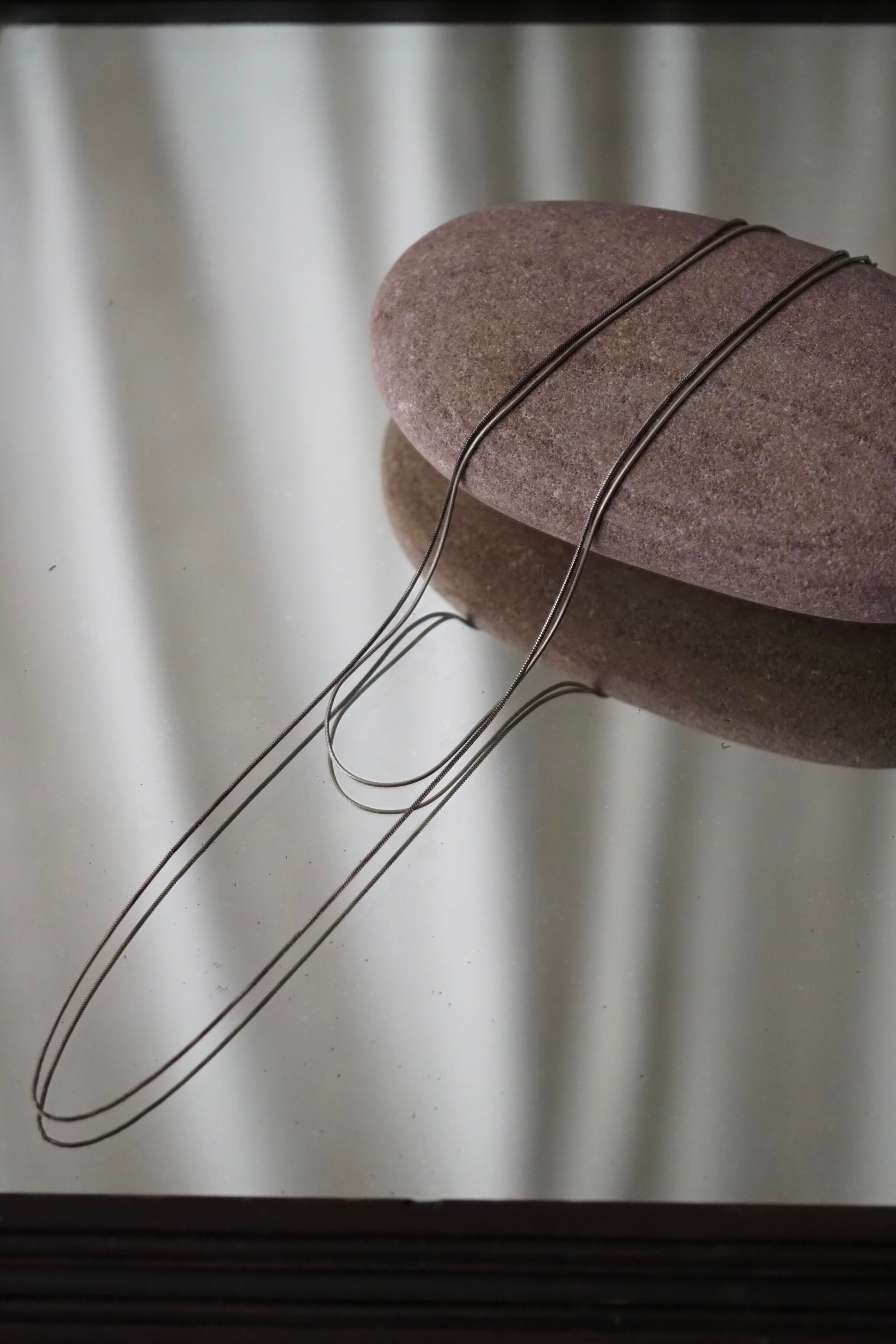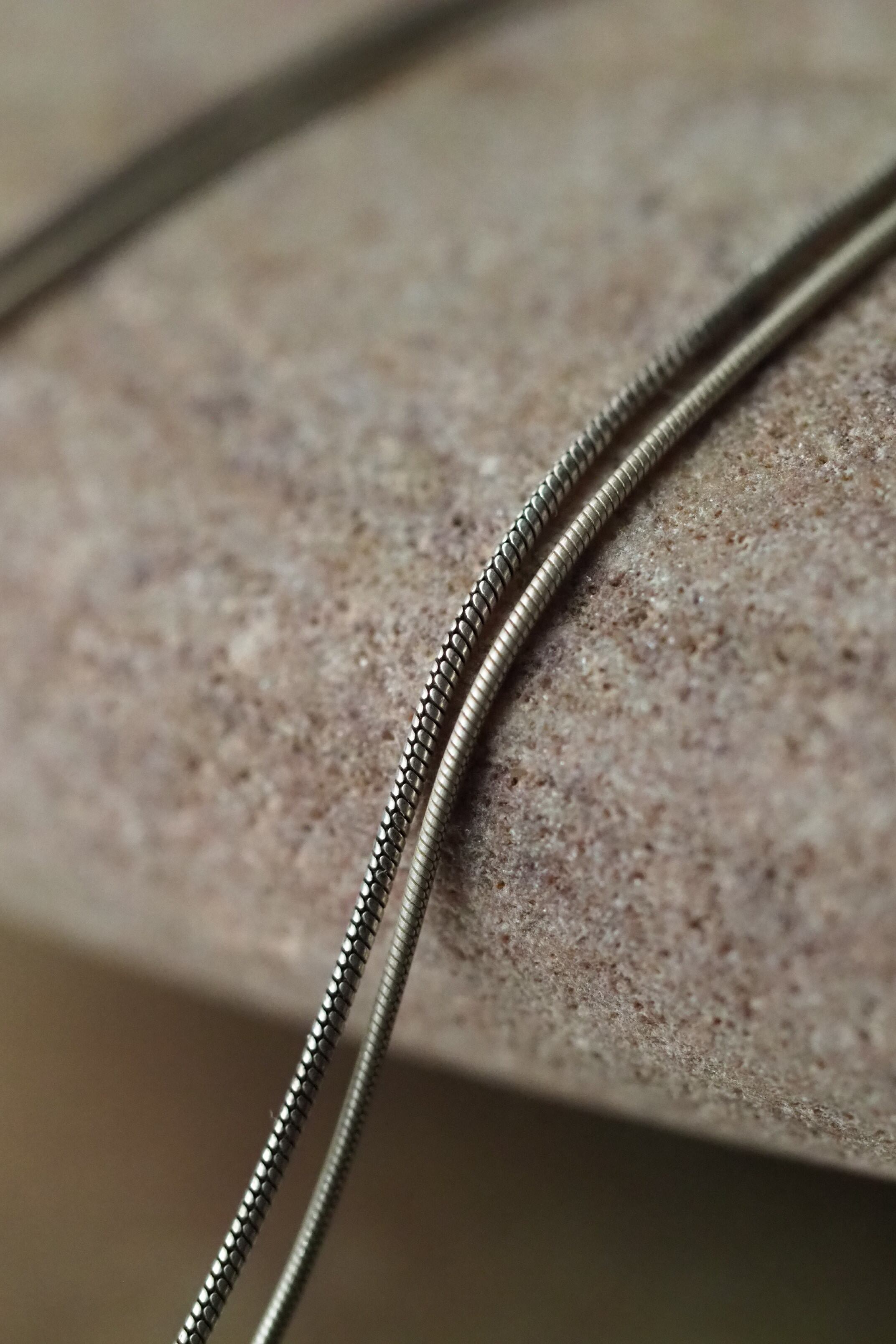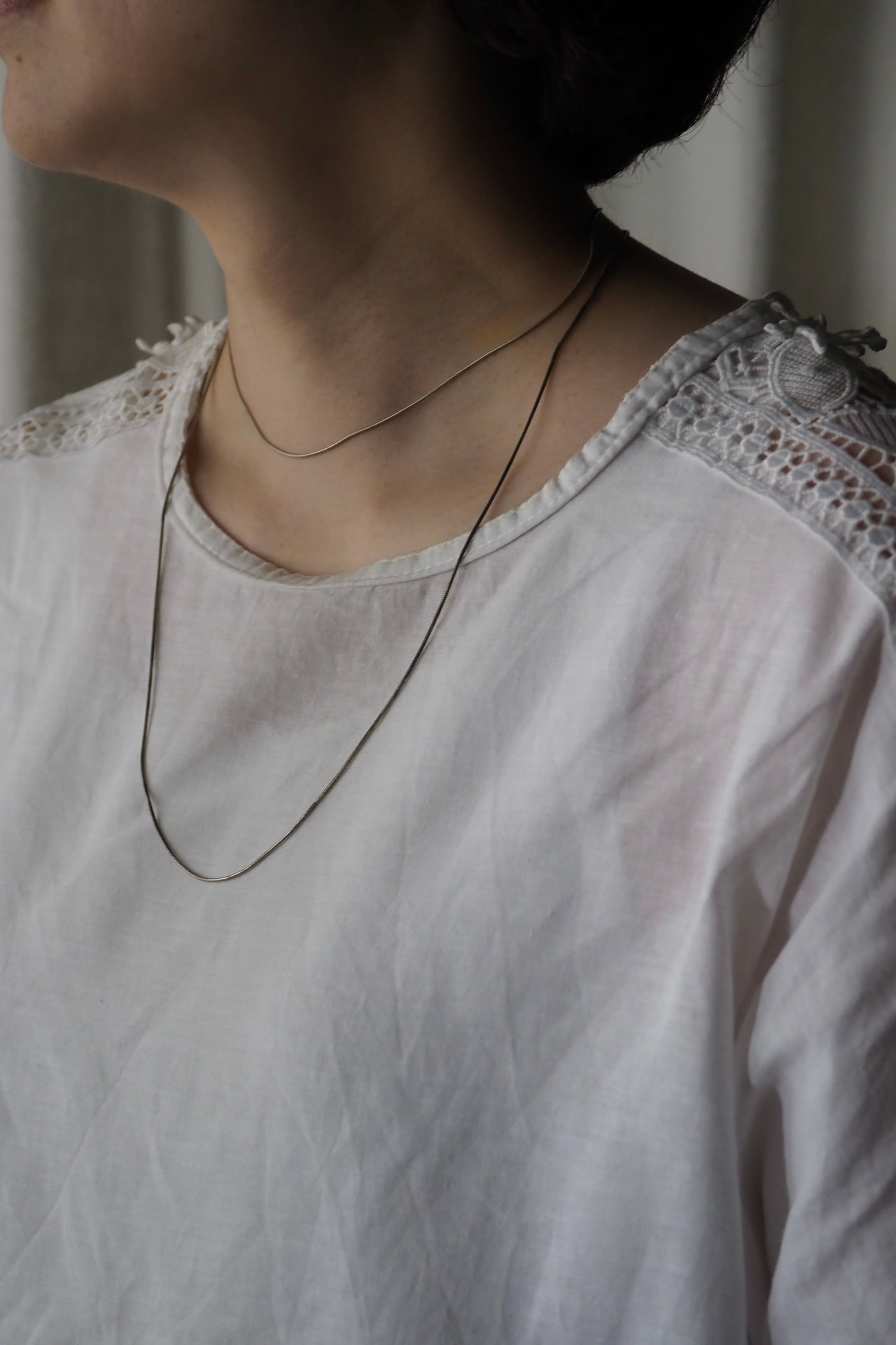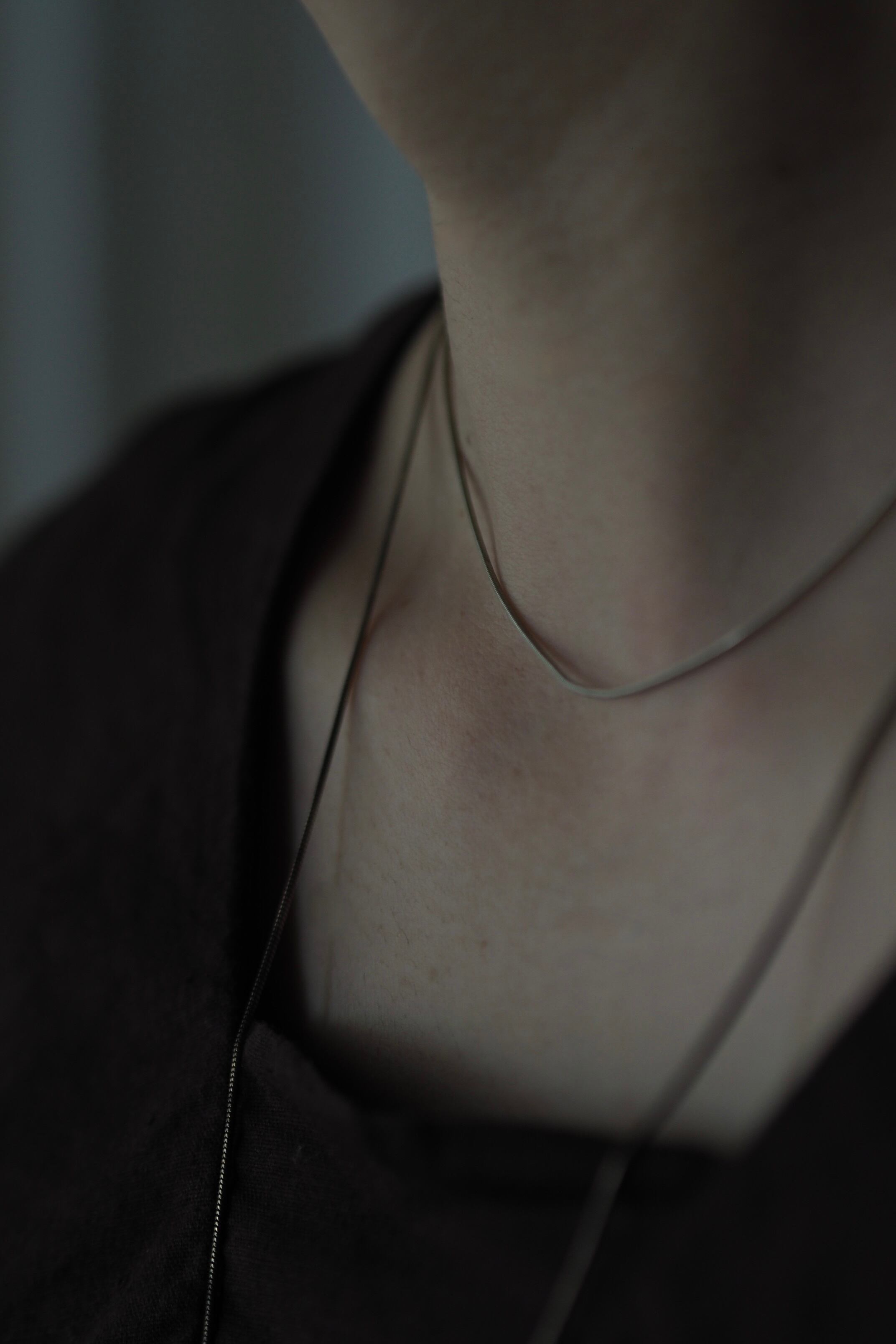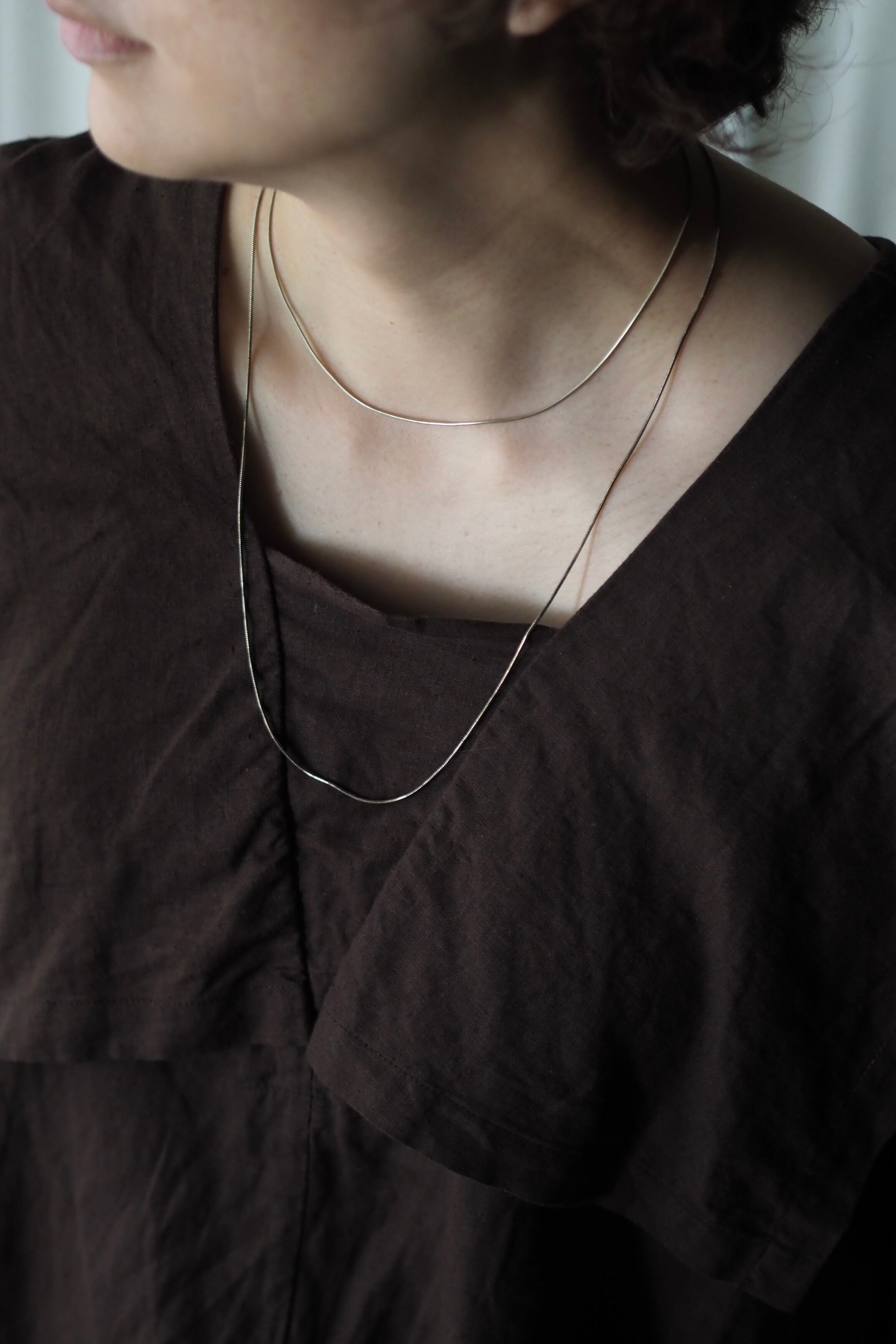 細く華奢なスネークチェーンが肌に寄り添って綺麗な抑揚を作る、短長2本セットのネックレス。