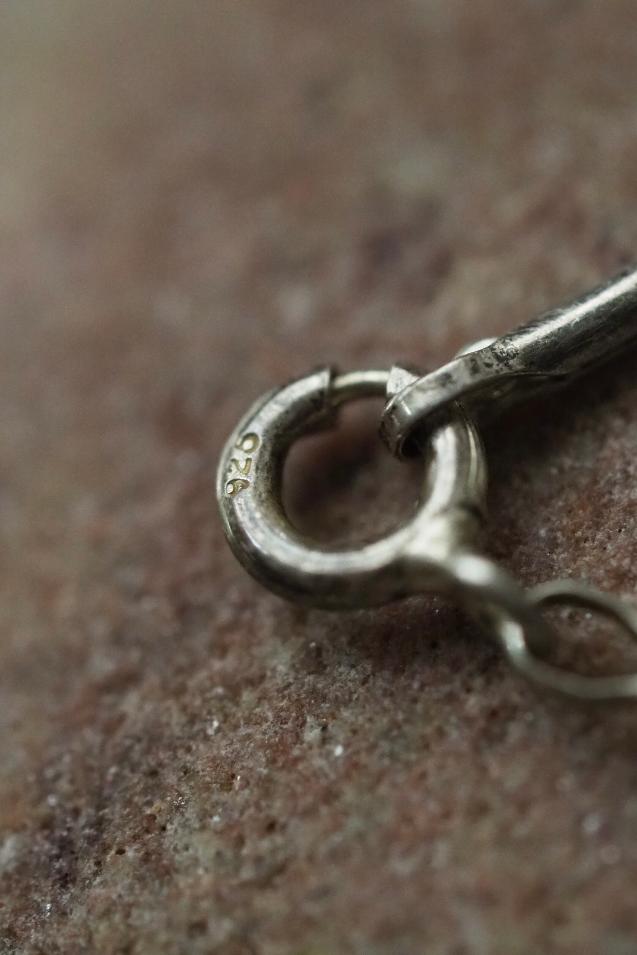 長い方のチェーンに所々ダークな腐食がございます、銀磨き液に浸ければ輝きます。