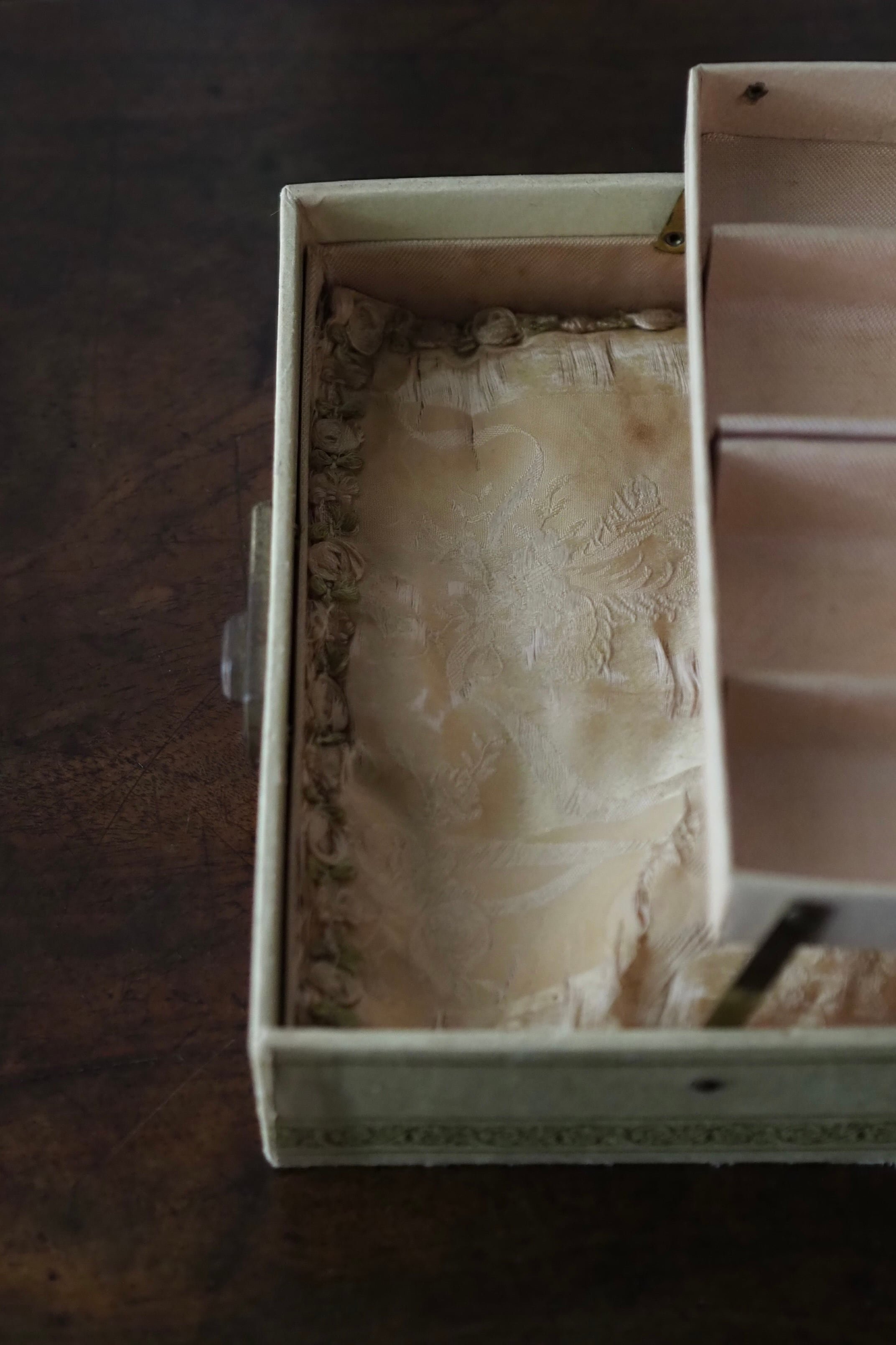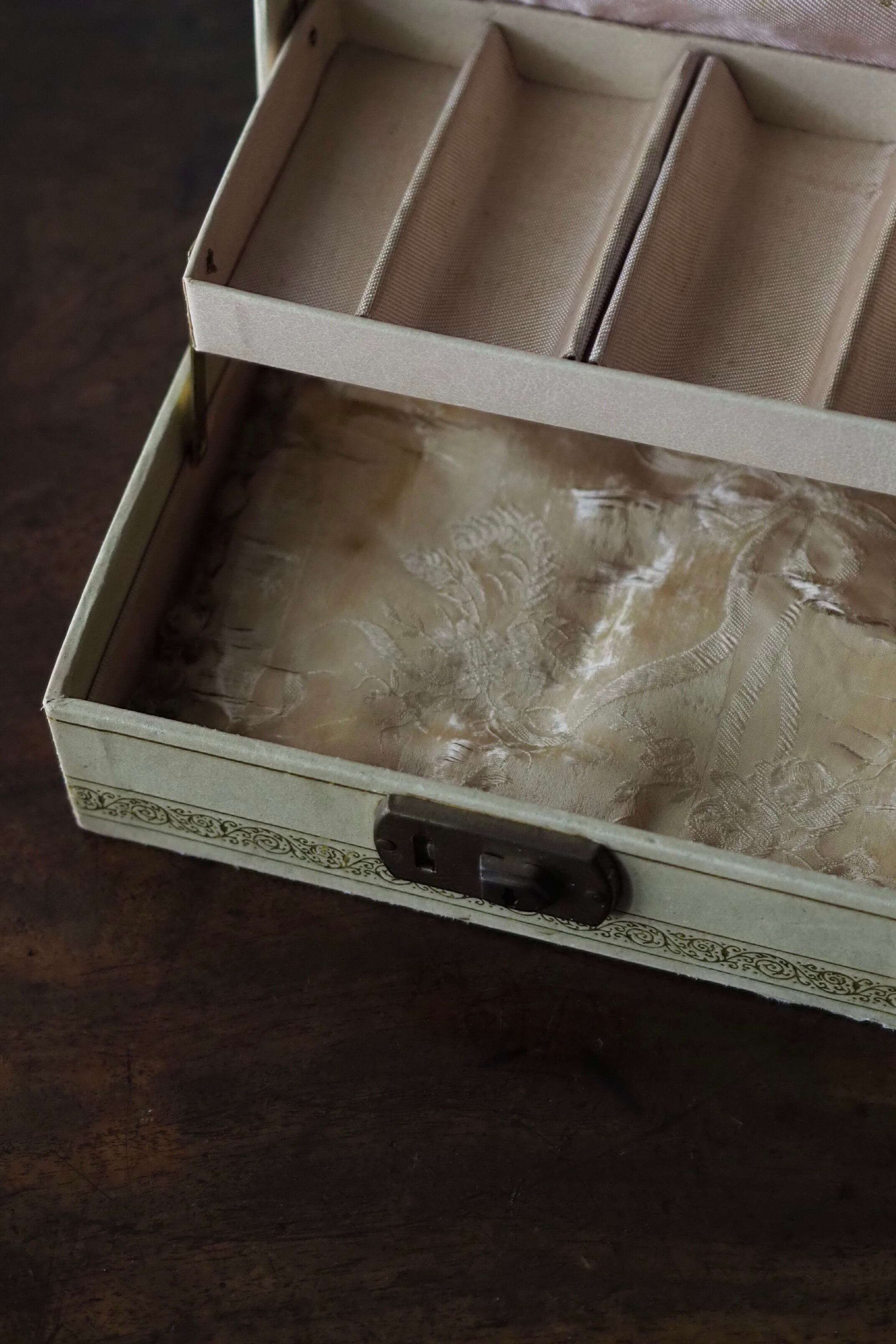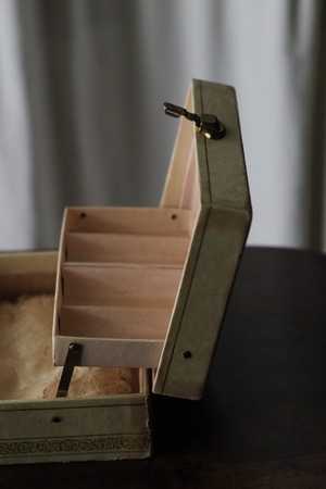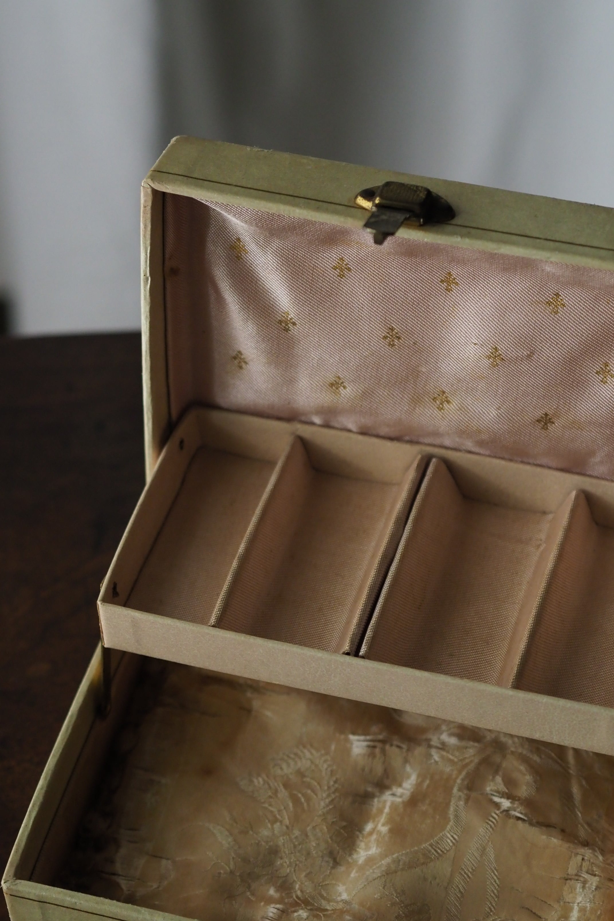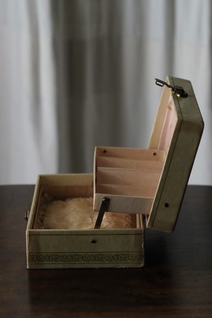 内部に仕切りがあり、ネックレスやリング、ピアスを整理しやすい小箱。
