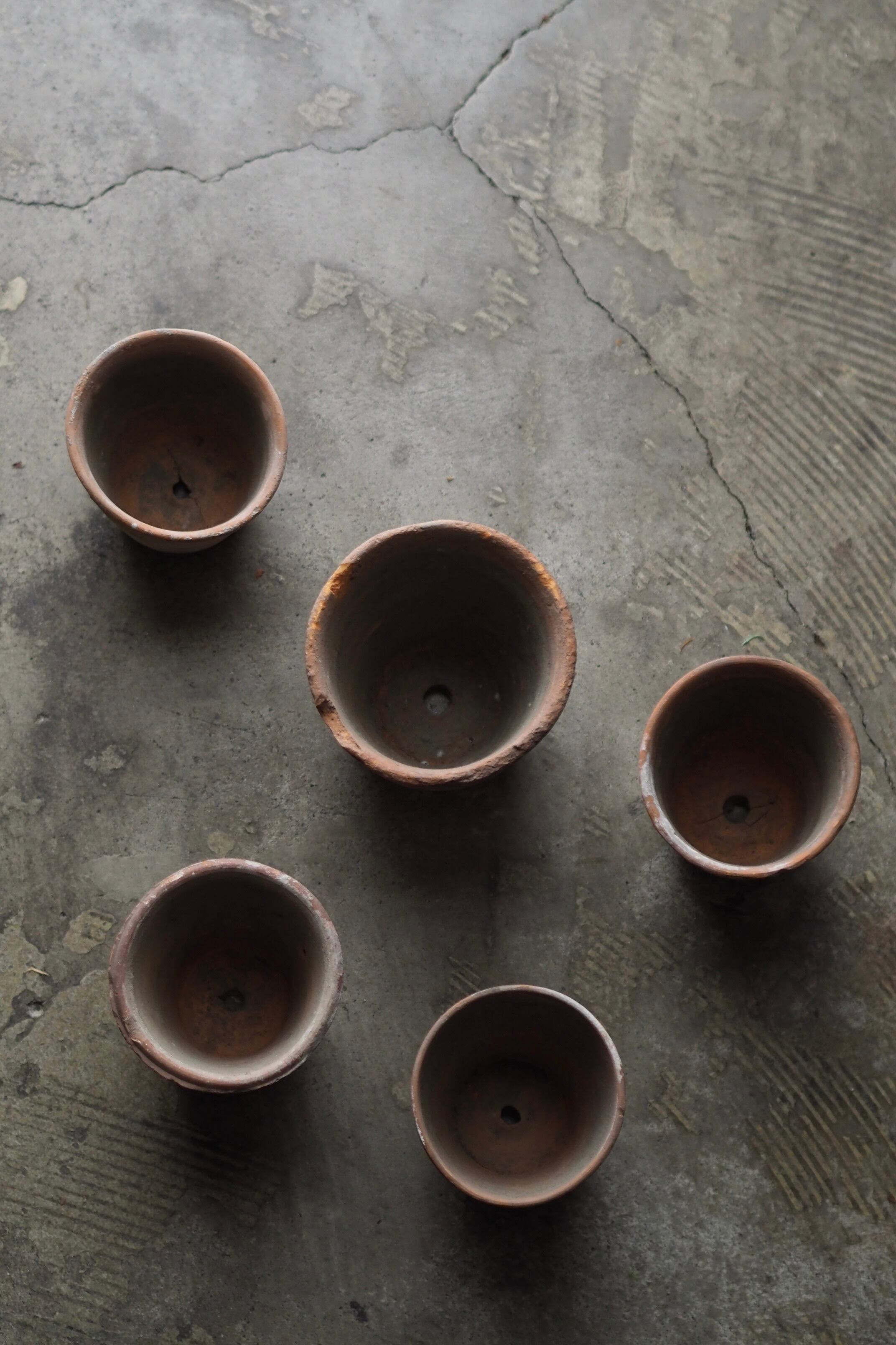 白いカルシウムが現れている鉢、縁など歪な手作りの良さが感じられるそれぞれ。