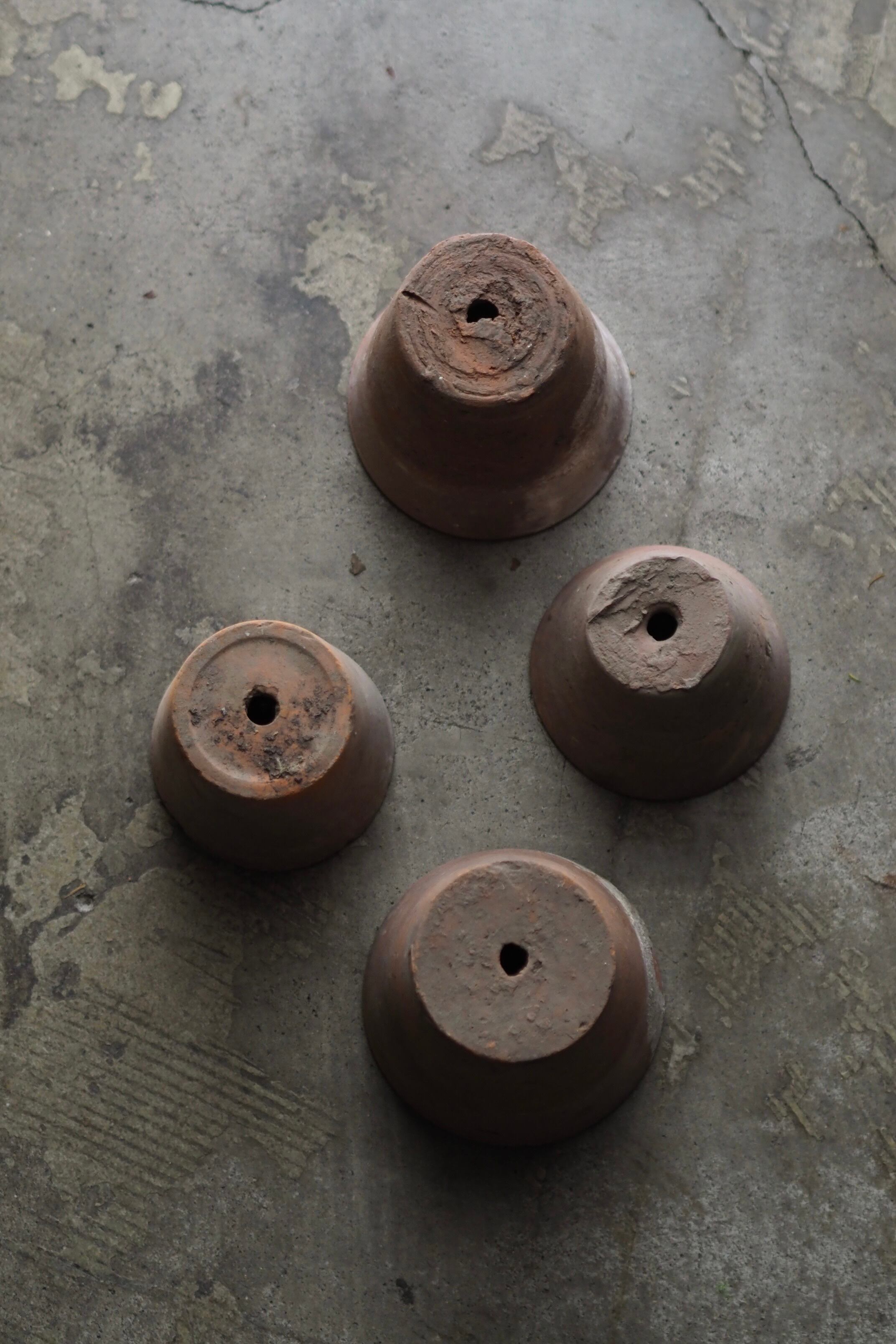 白いカルシウムが現れている鉢、縁など歪な手作りの良さが感じられるそれぞれ。
