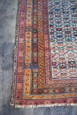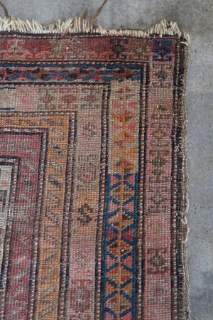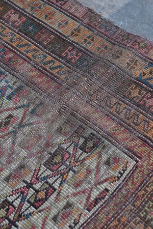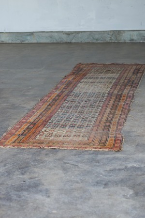細かなデザインが織り込まれていて温かい配色の絨毯、ヴィンテージの褪せた風合いはすんなり空間に馴染みます。