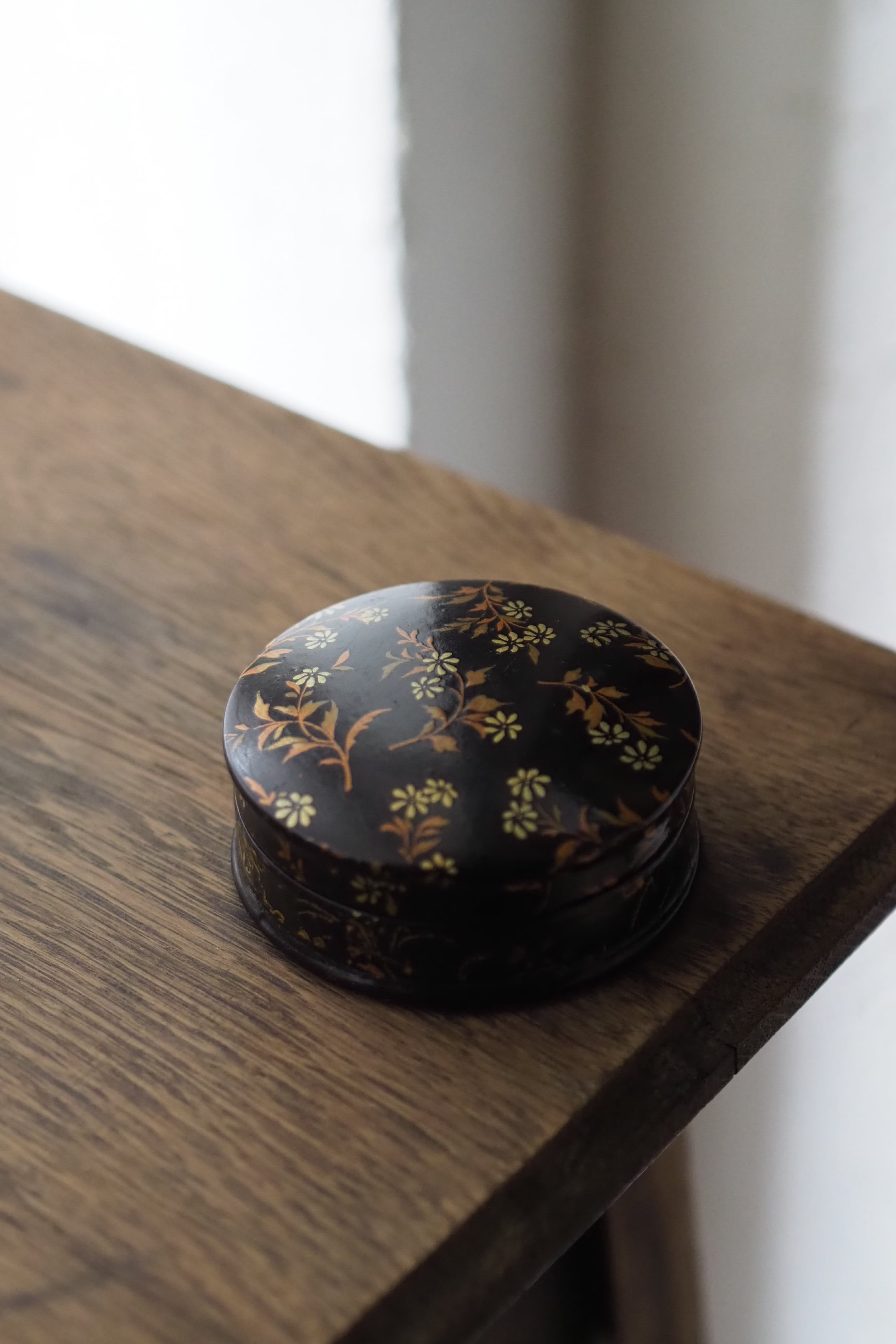 馴染み深いモチーフ、ジャポニスムの菊の花が浮かんでいるパピエマシェパウダーケース。