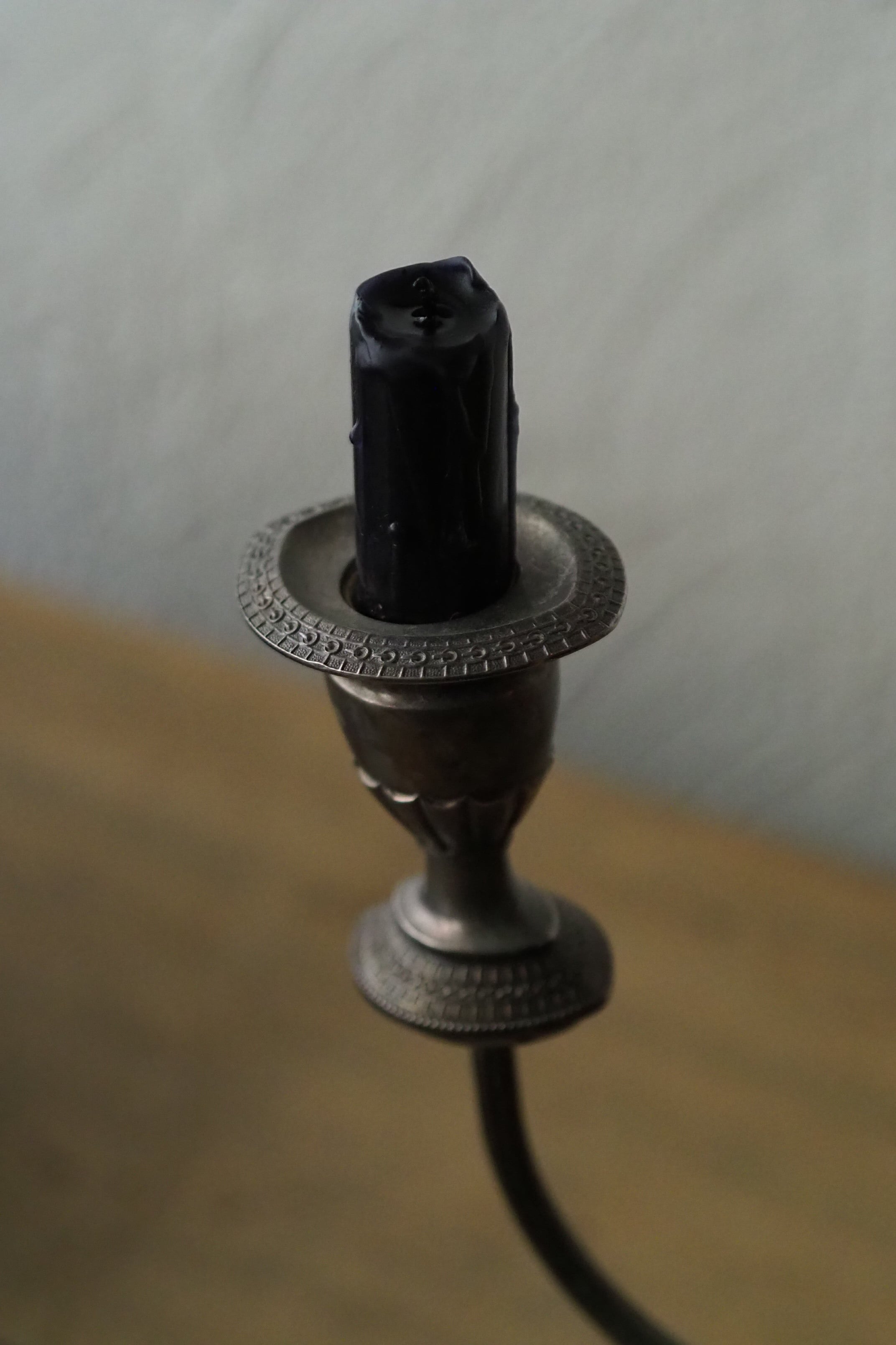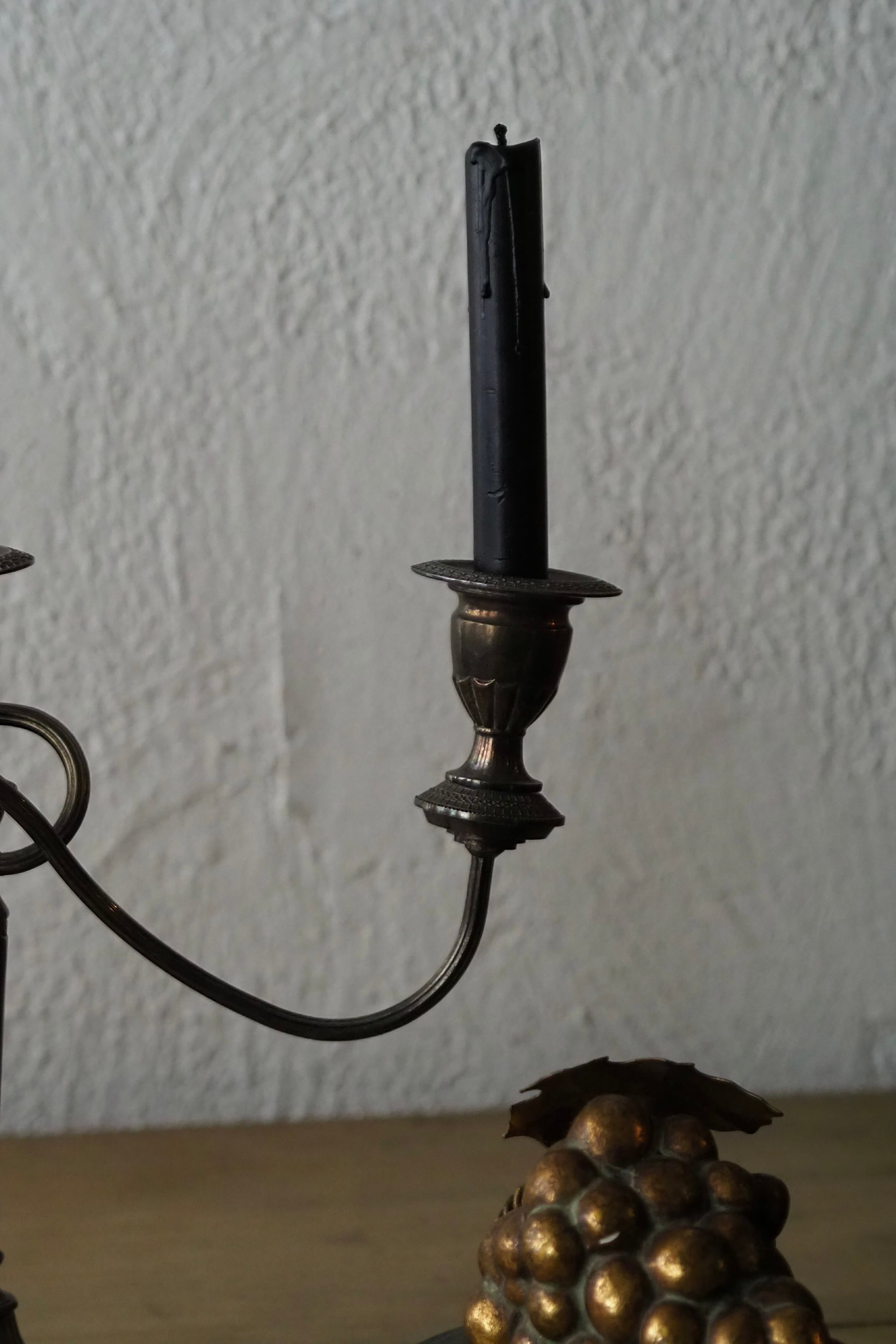 バランス良く曲線のアームが左右シンメトリに伸びる燭台。(真正面から見ると左右で若干の歪みがございます)