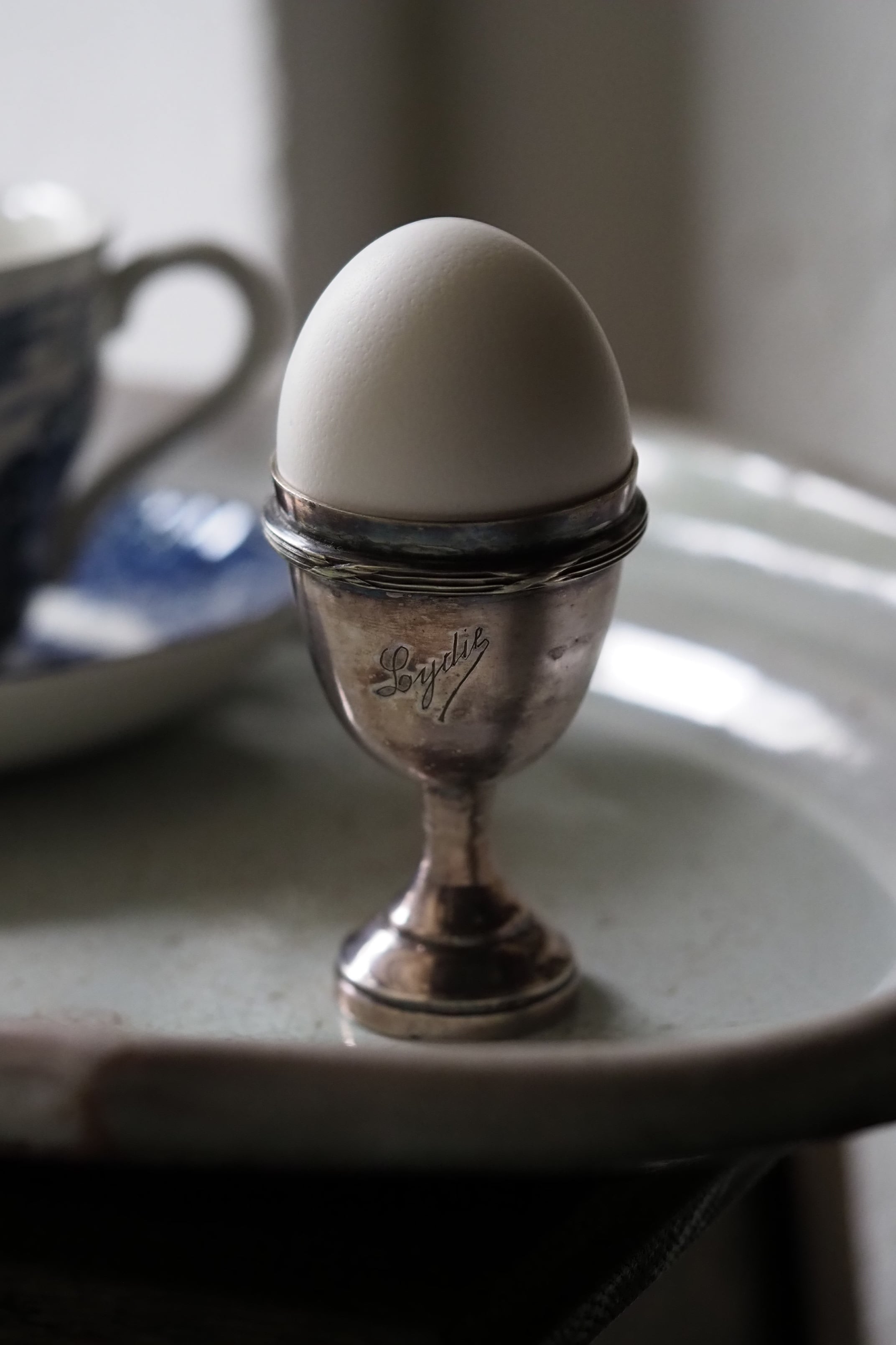 ゆで卵をエッグスタンドに乗せて、いつもとちょっと違う食卓のシーンに。
