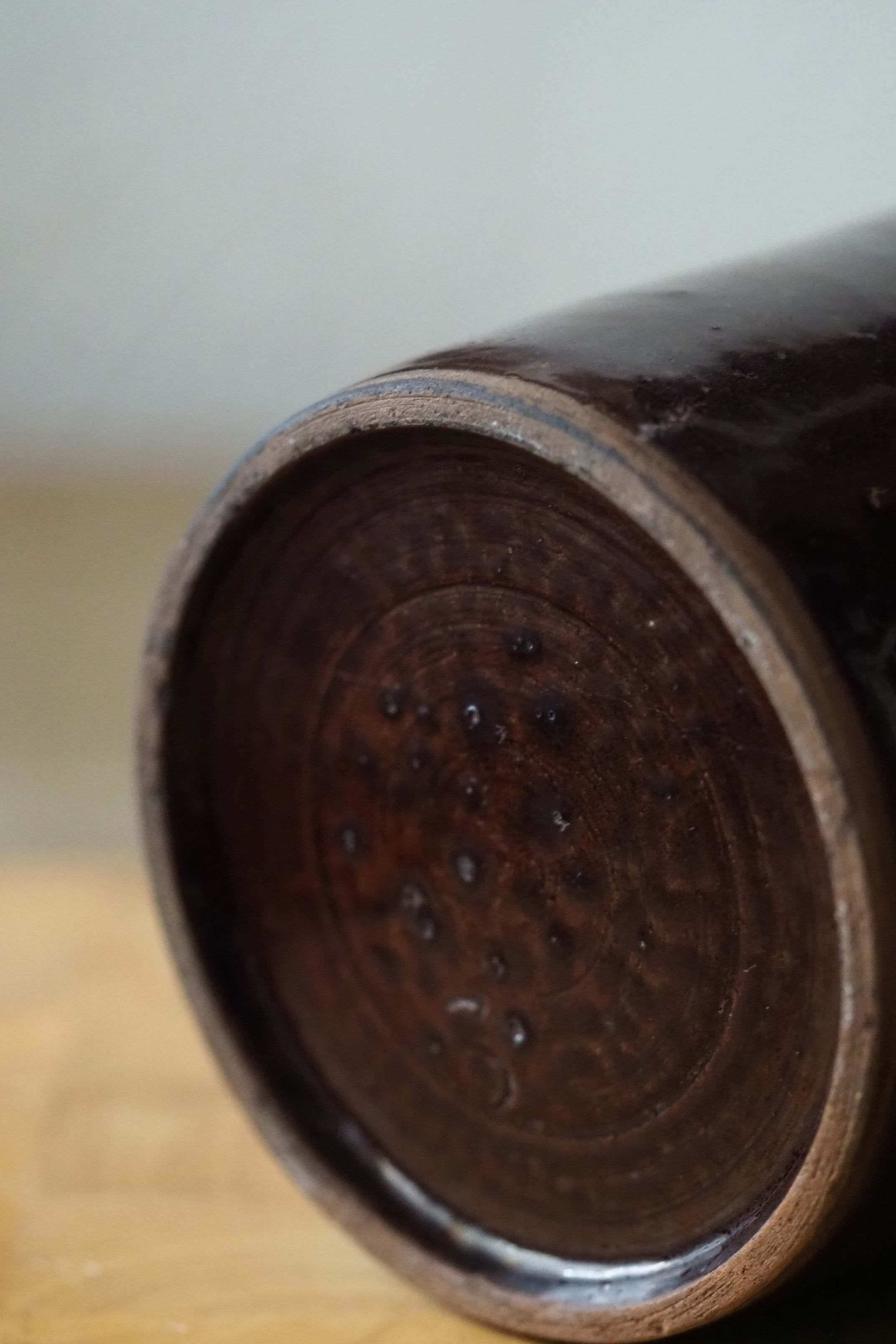 しっとりと落ち着いた焦げ茶釉薬、フランス 19世紀のキュノワールマグカップ。