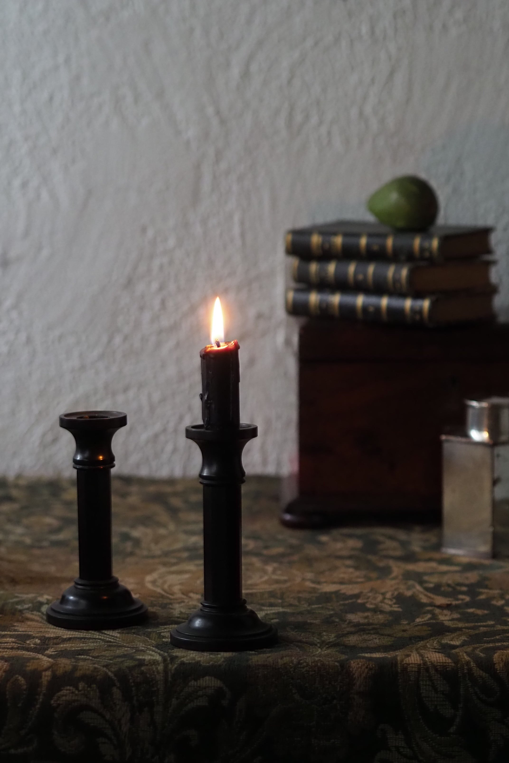 クラシカルな石柱を模したデザインの黒檀燭台、ペアでの販売です。