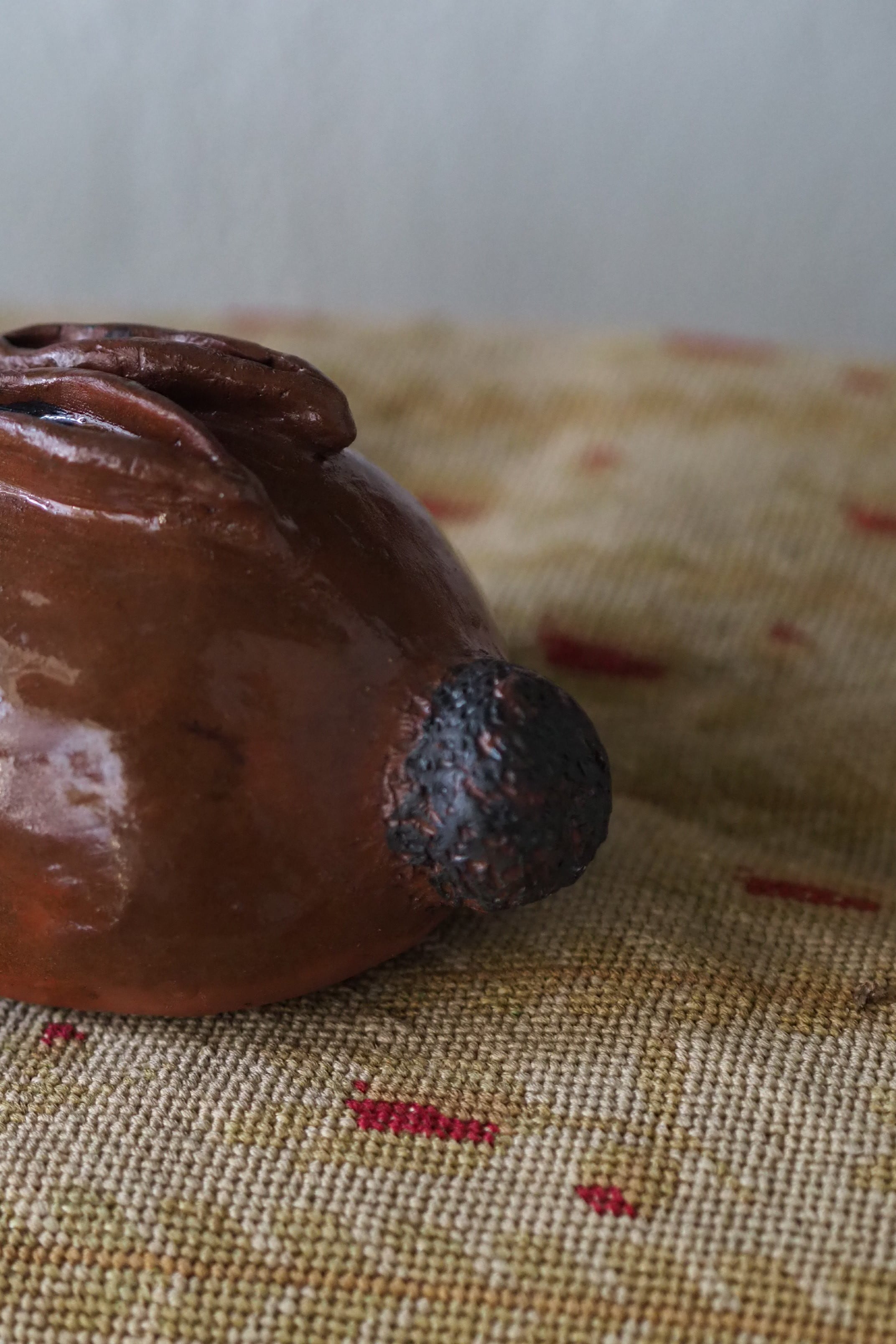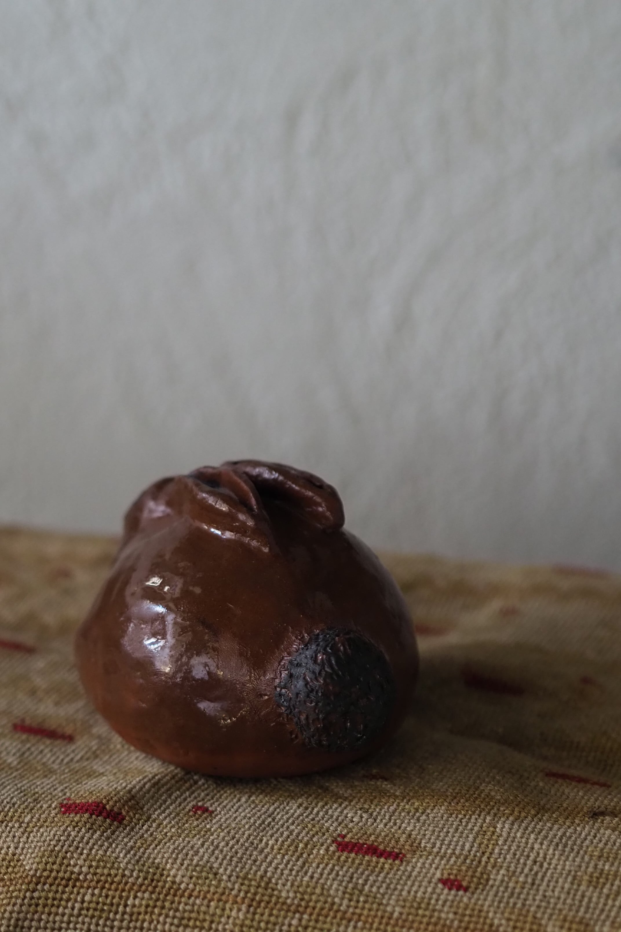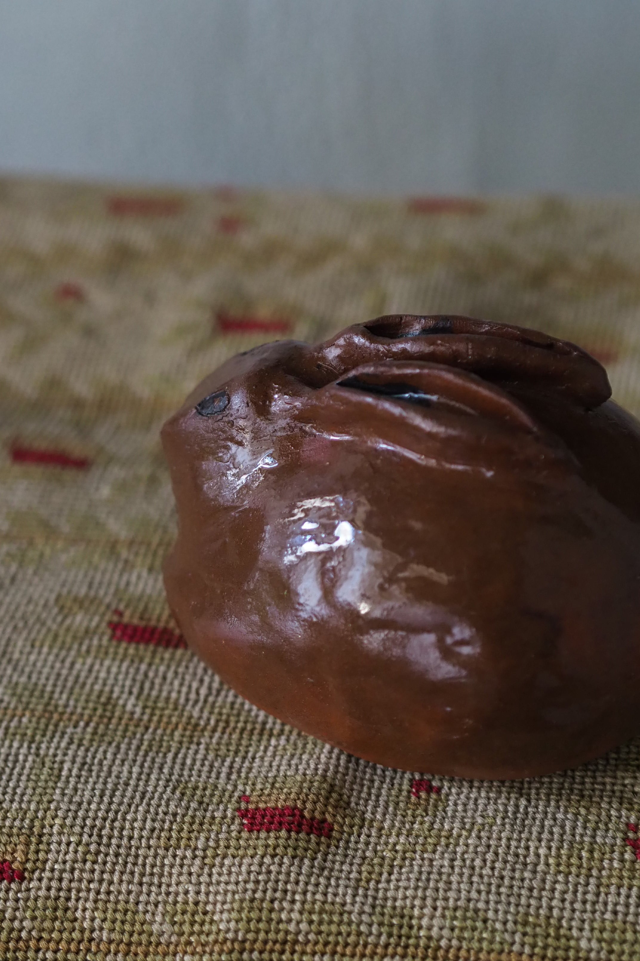 眼とお鼻は無造作に描いた感じ、イギリスの1960年代頃の作品。スタジオポタリーかどなたかの作陶によるもの。