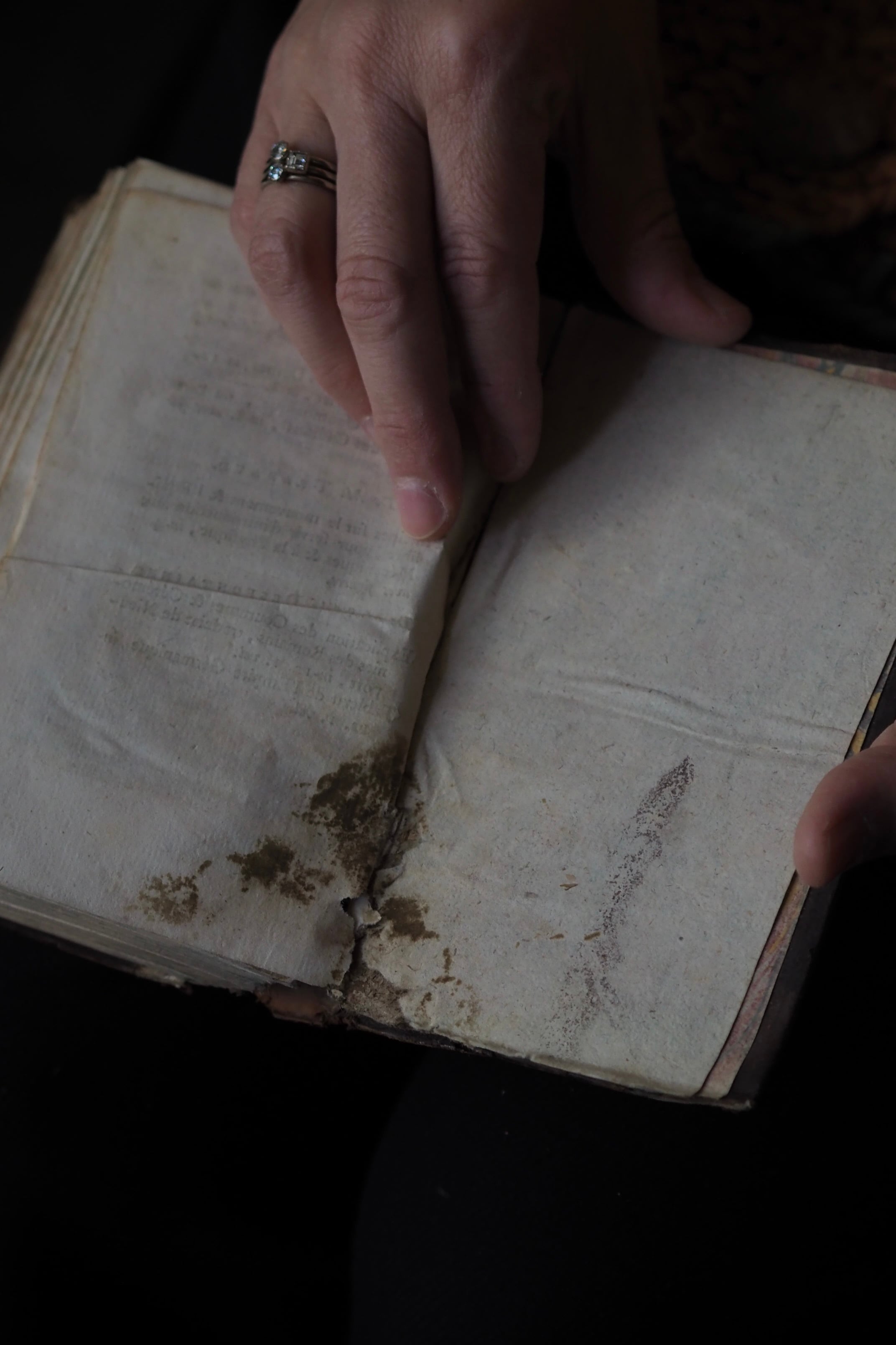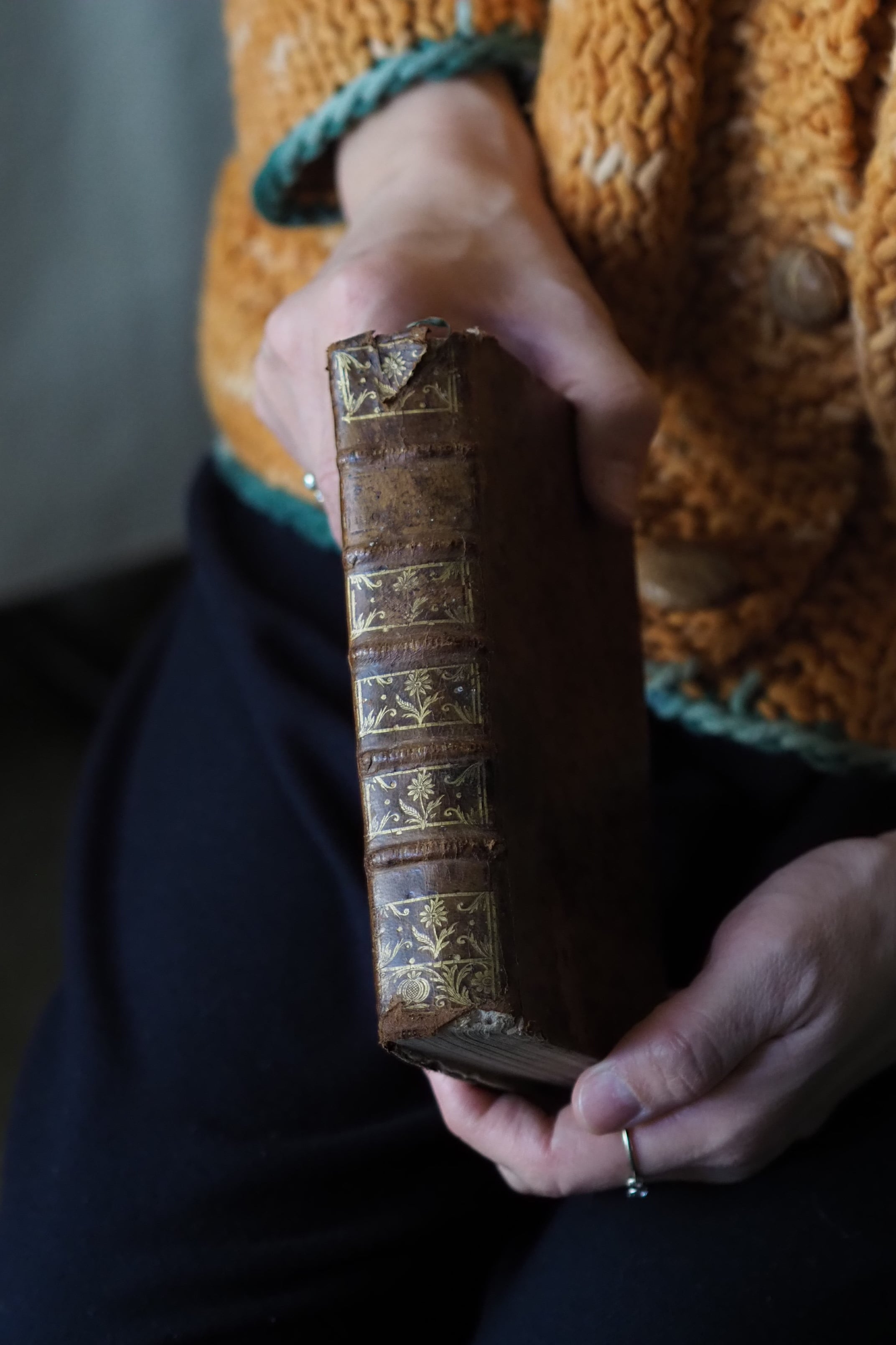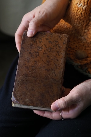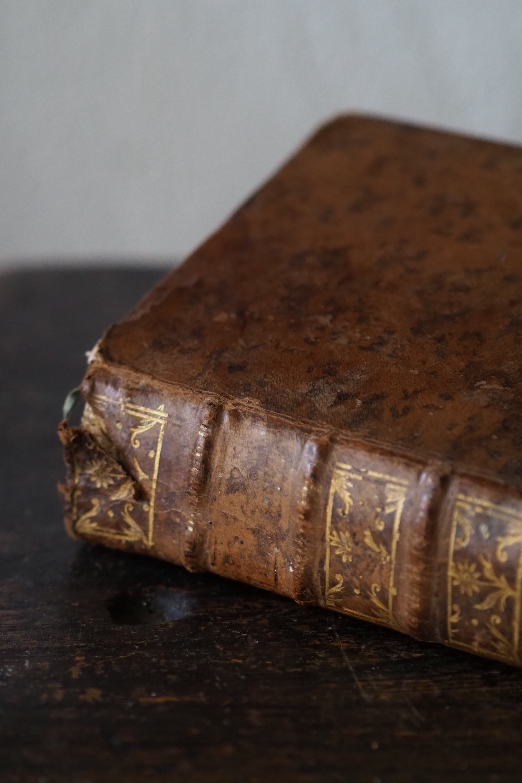 本の地辺りにシミが目立ち背上部に革破けなども御座います。