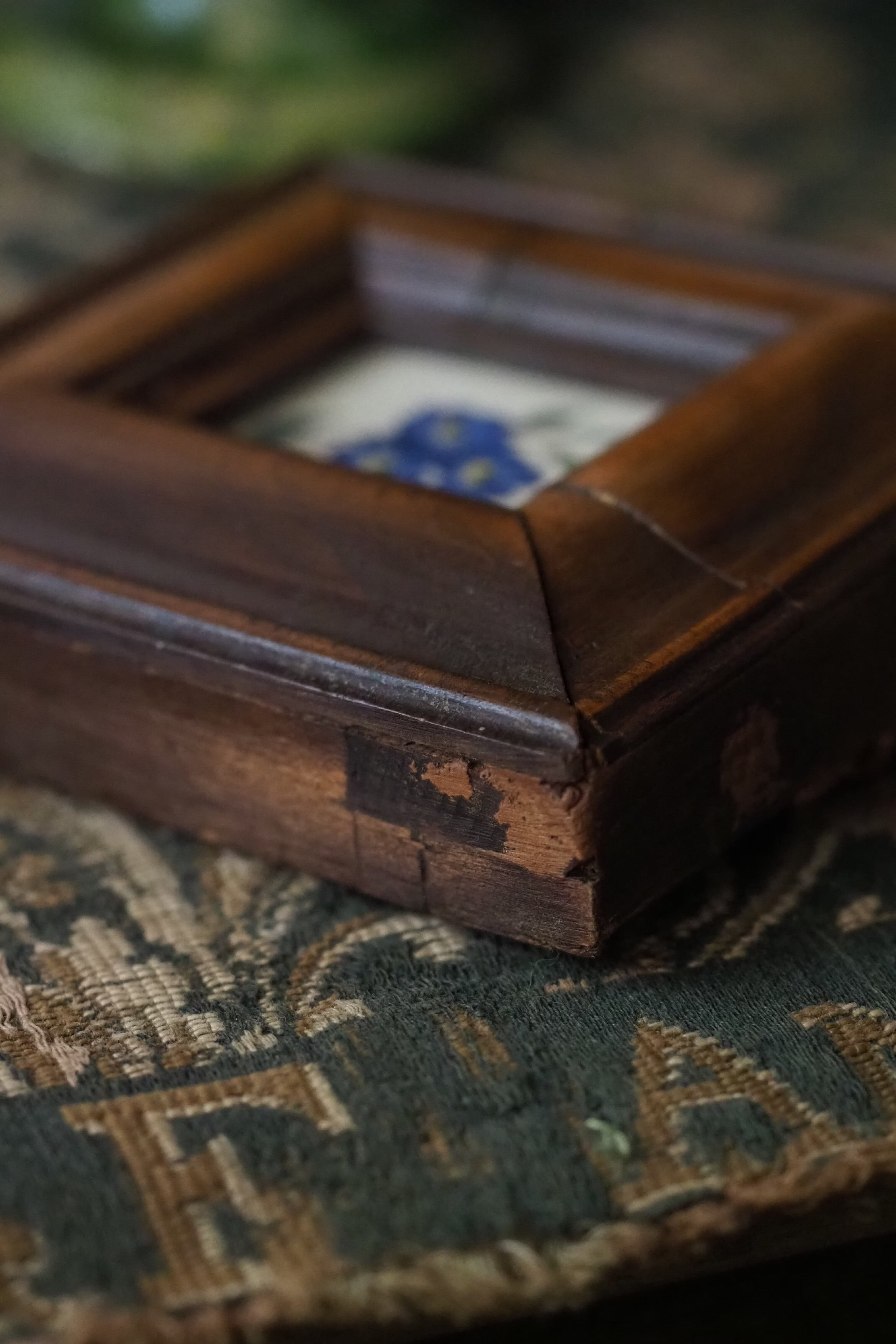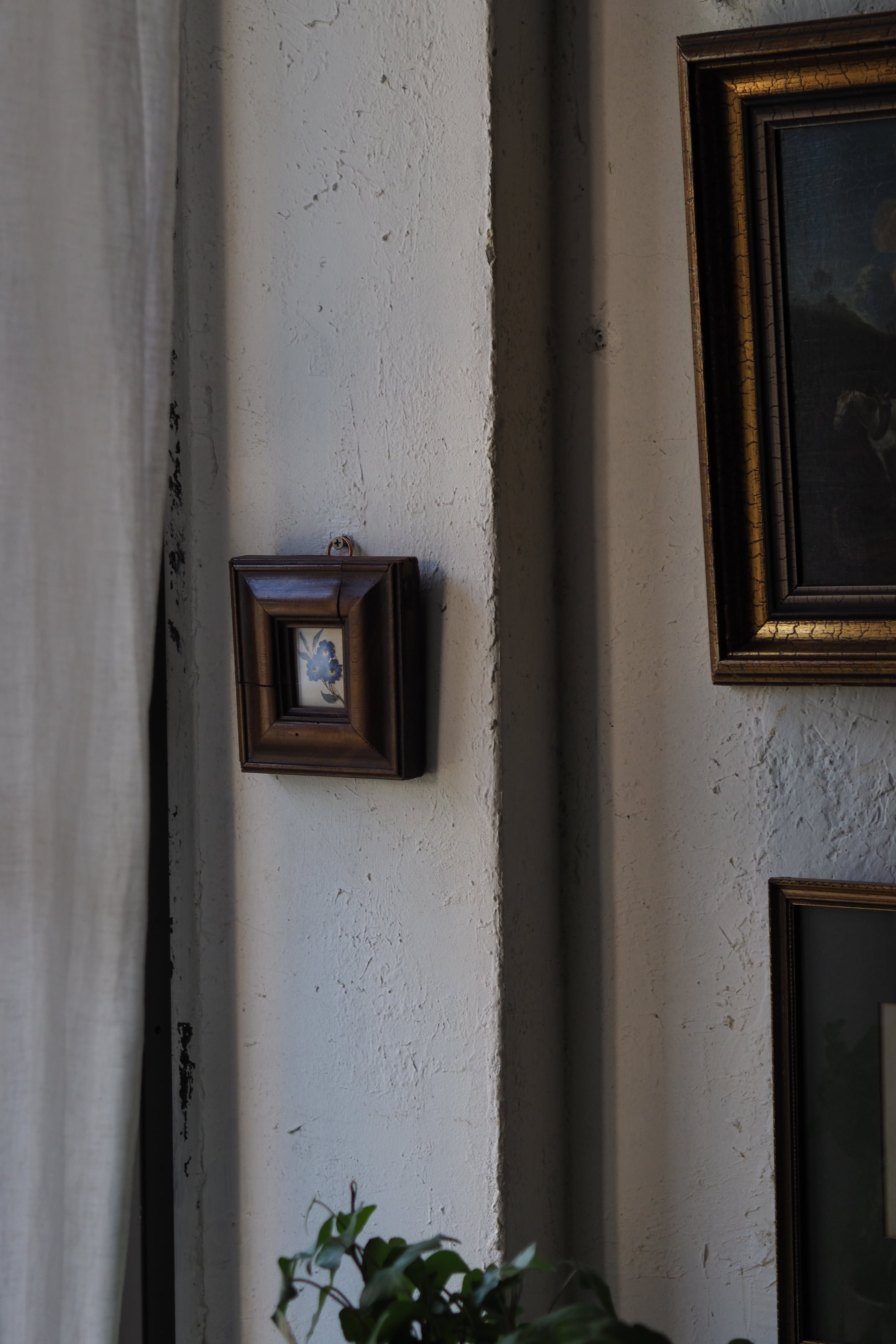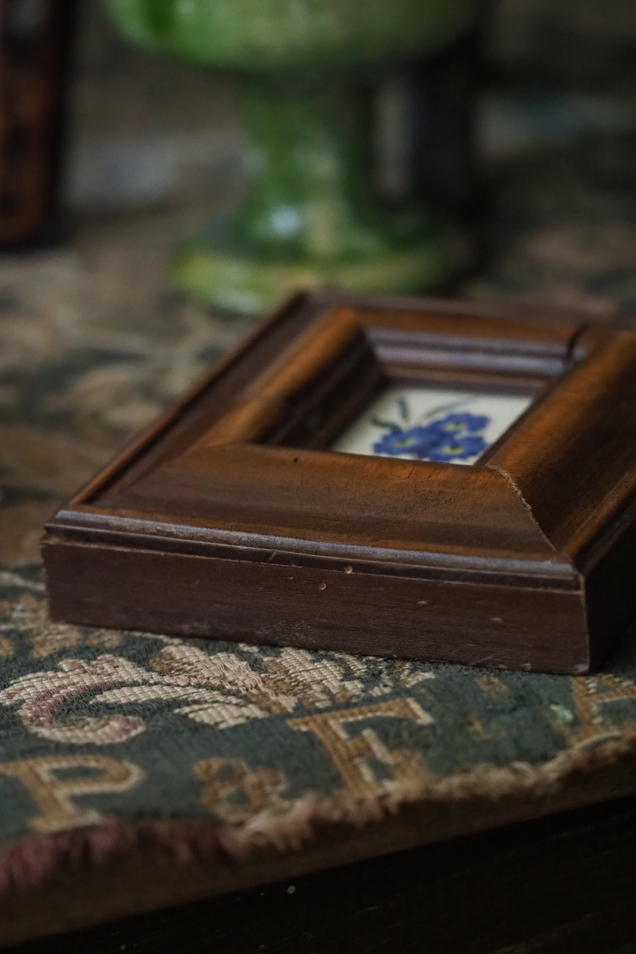 ラピスラズリに冴えた青の小花がこちらを向いて小窓に収まっている、雰囲気たっぷりな小さな額縁。