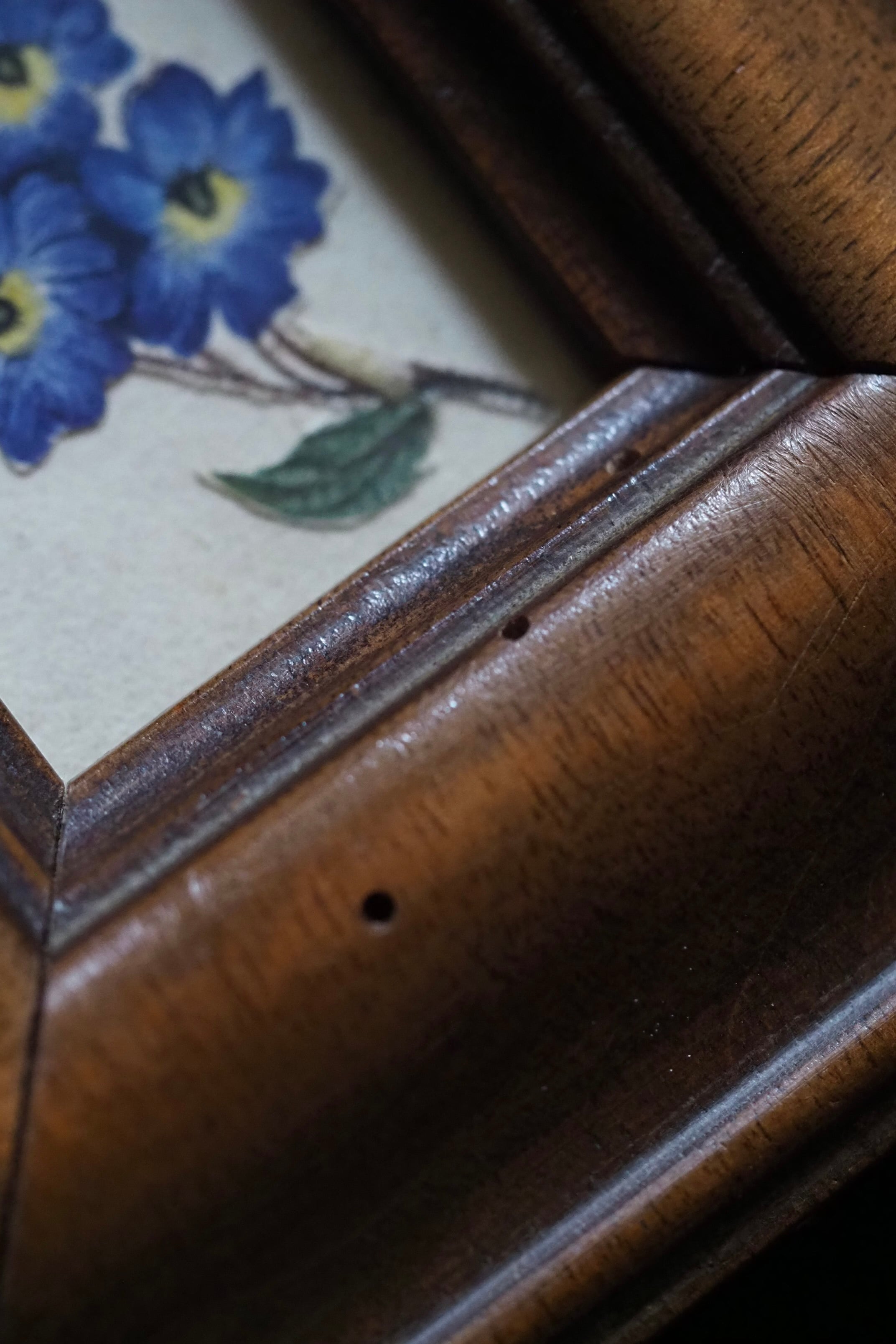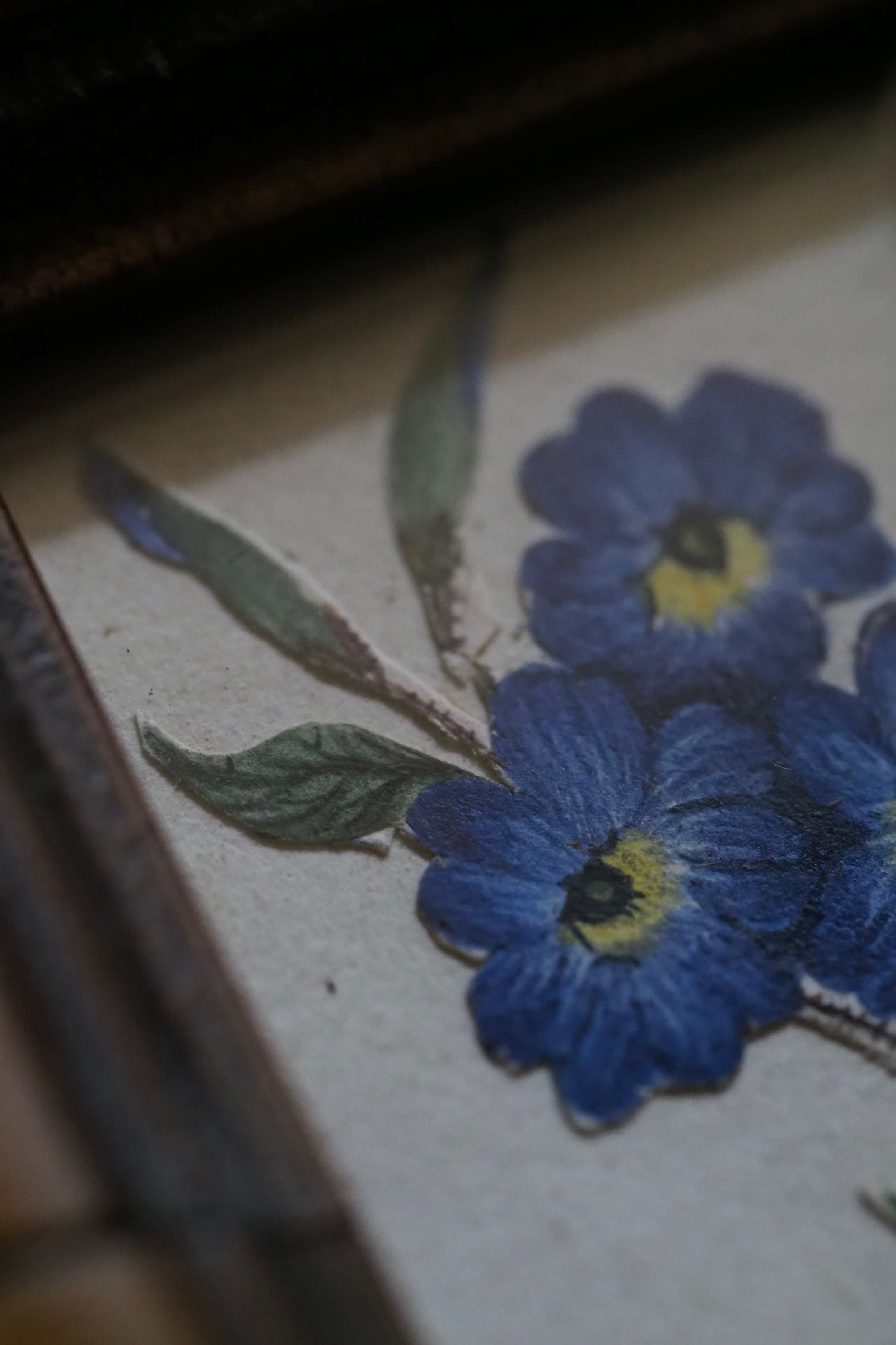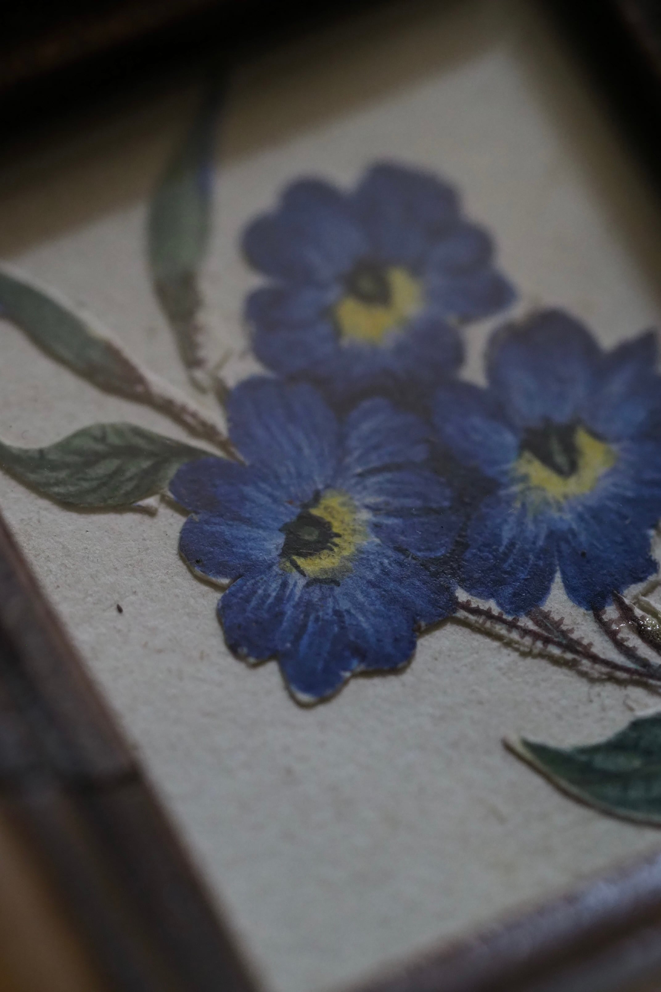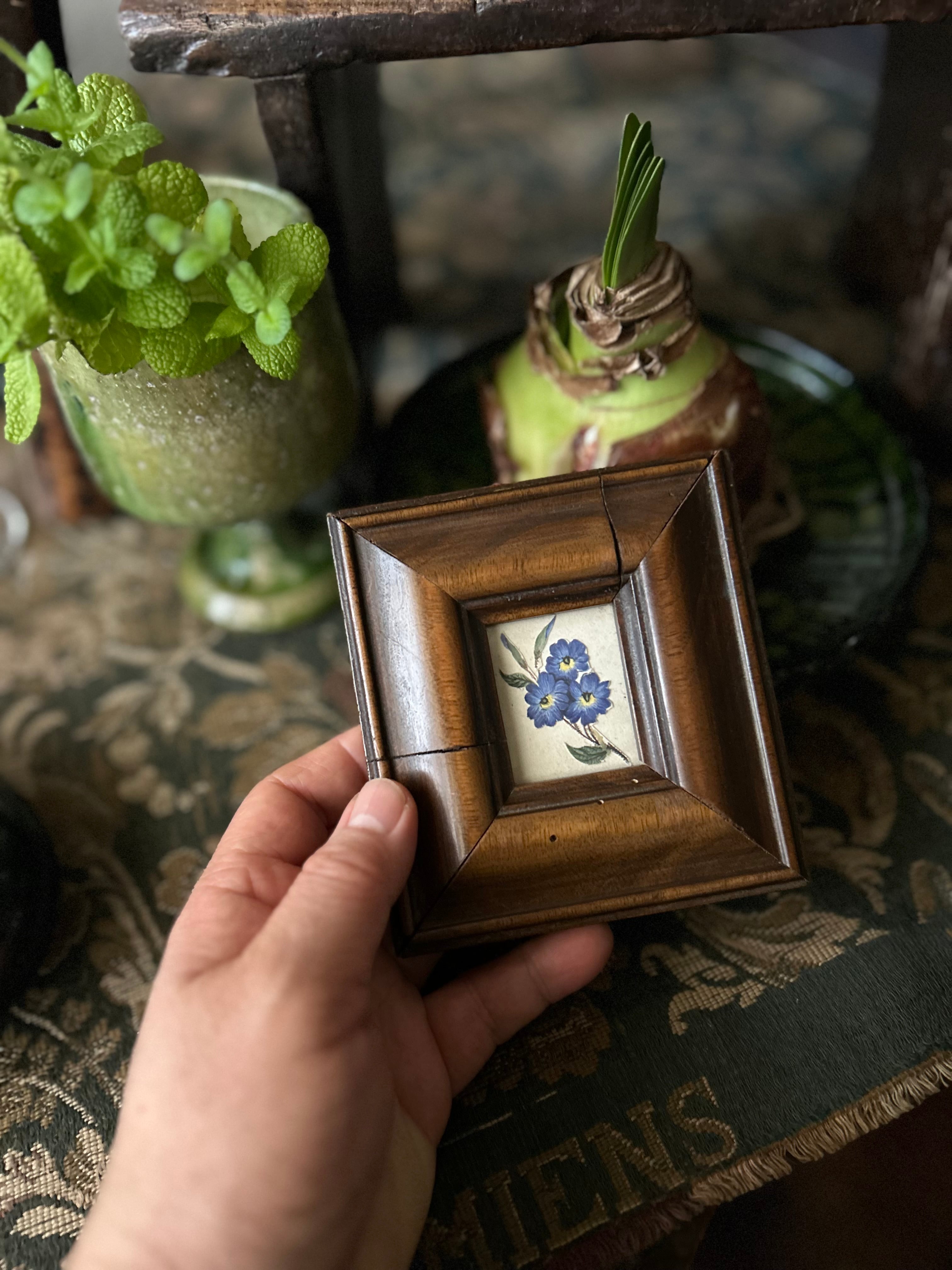 ラピスラズリに冴えた青の小花がこちらを向いて小窓に収まっている、雰囲気たっぷりな小さな額縁。