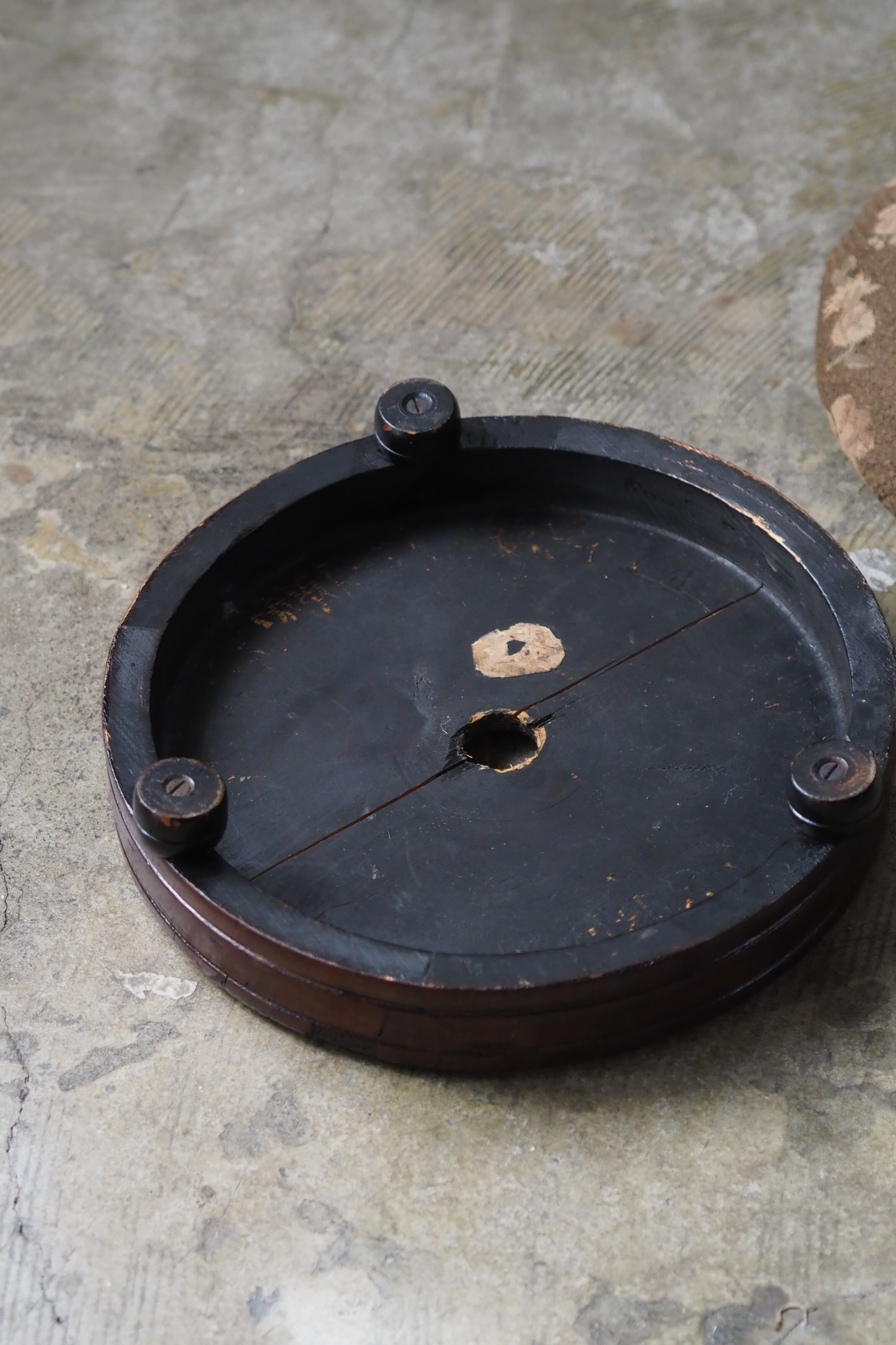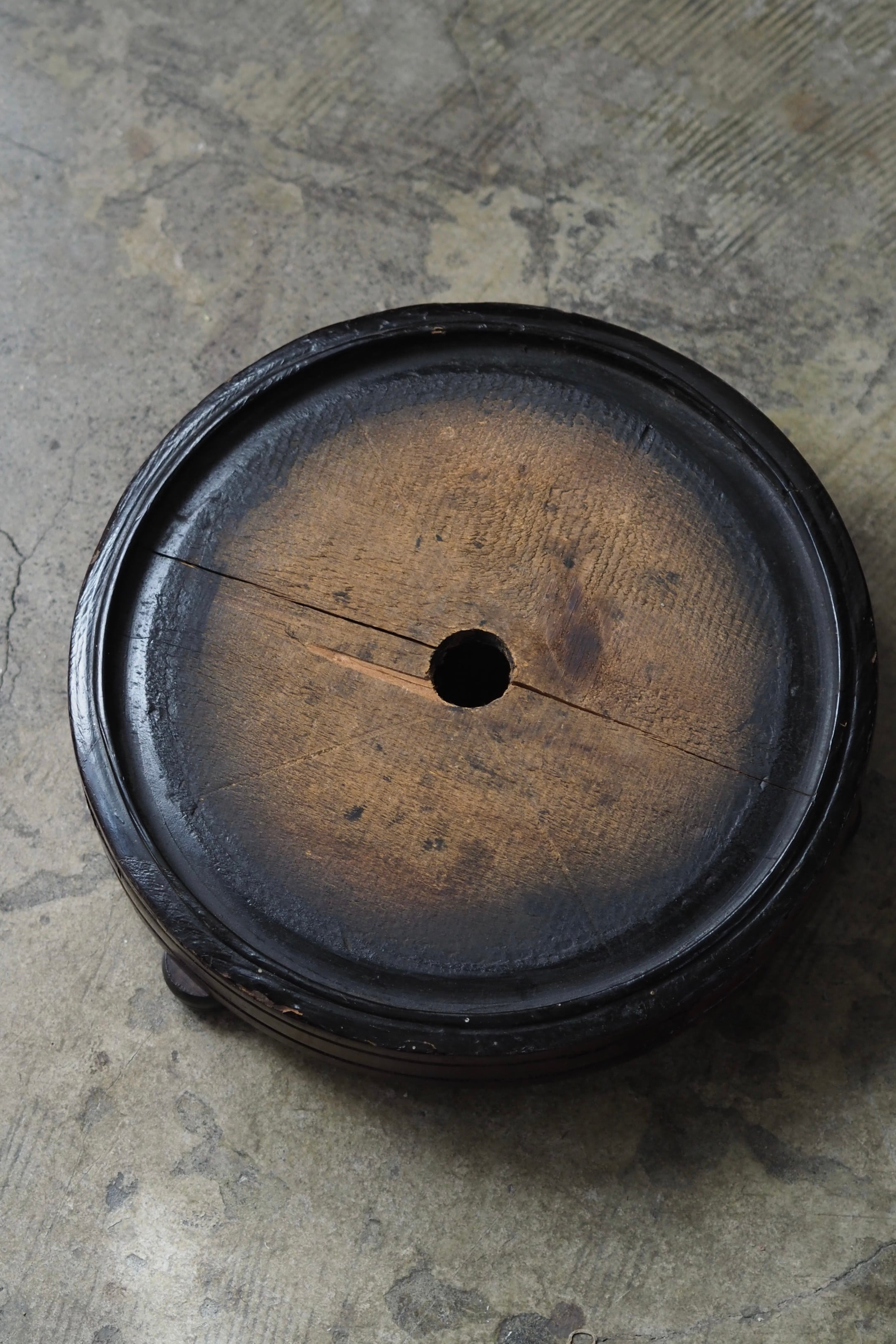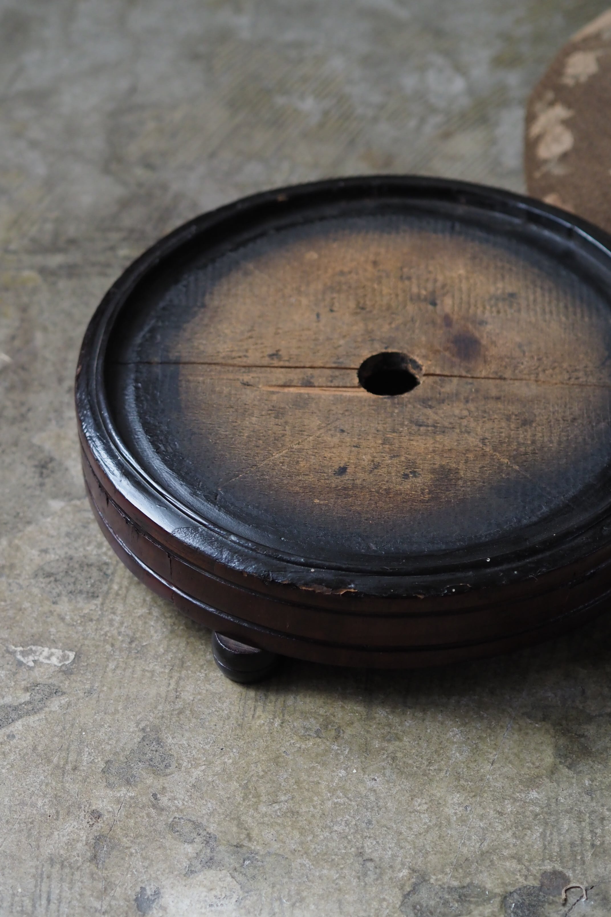 ころんとした三つ足が付いていてマホガニーの突き板側面、良い艶有り。