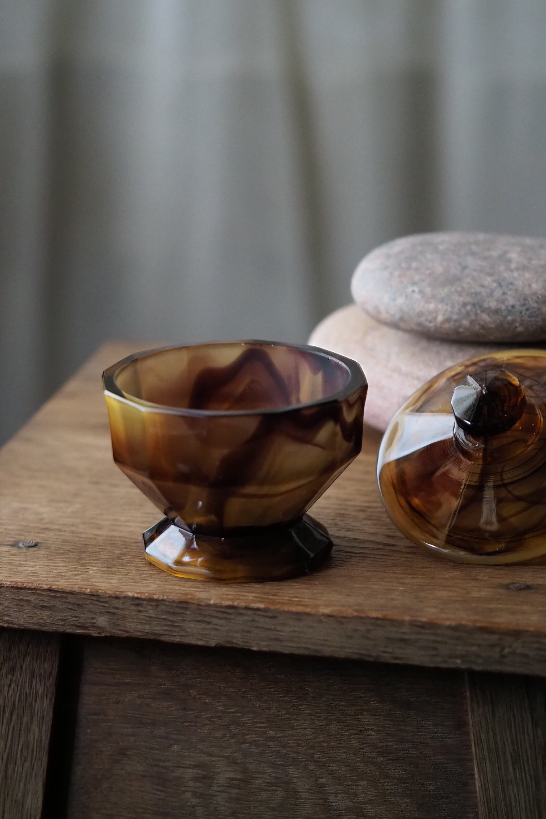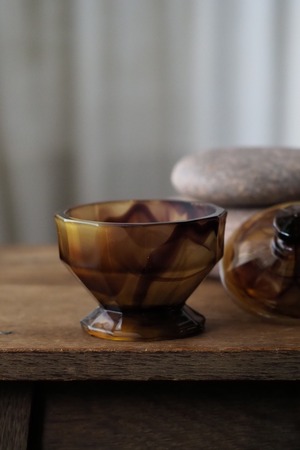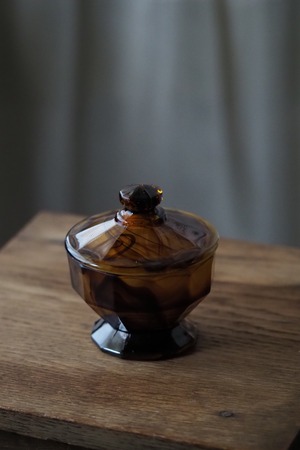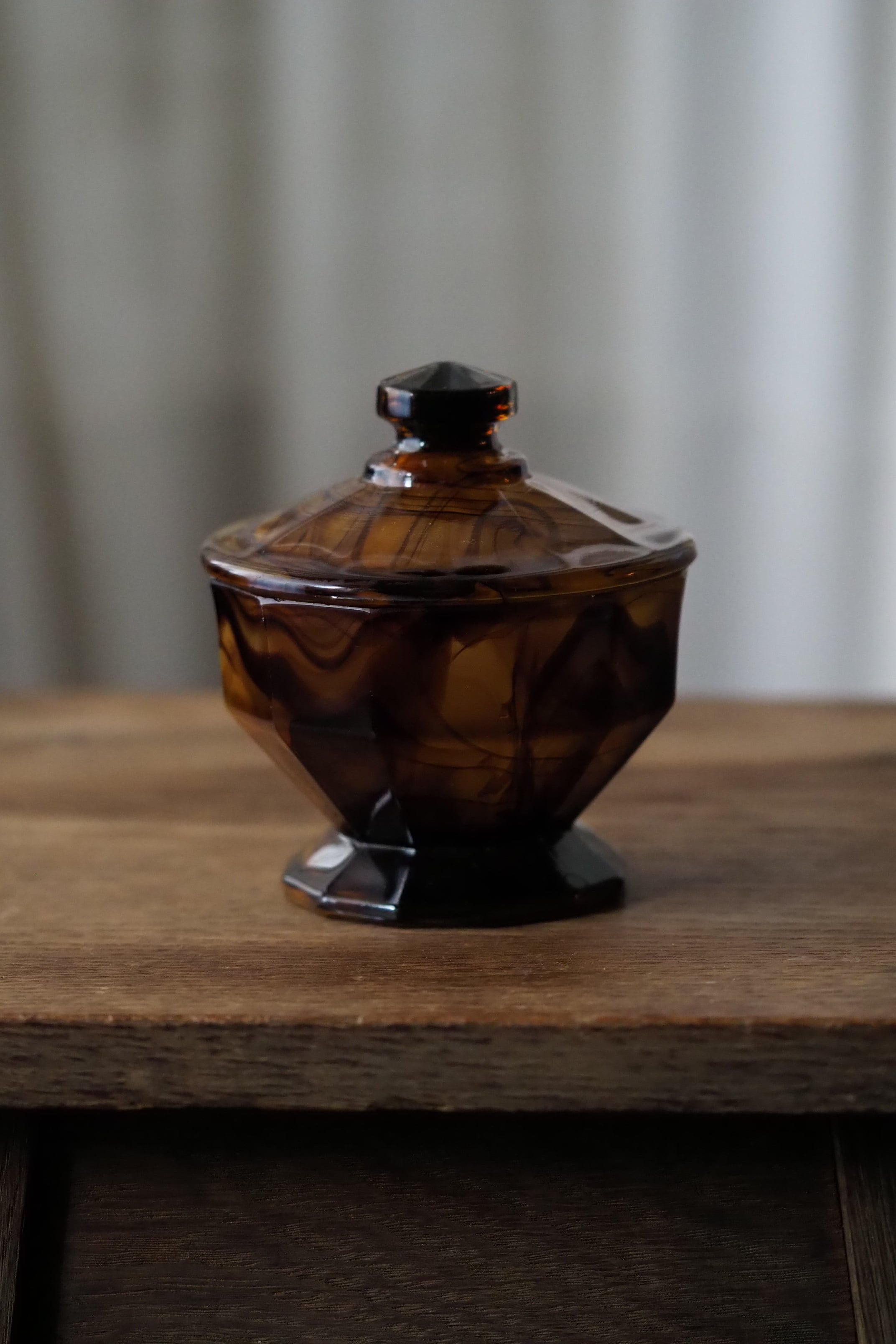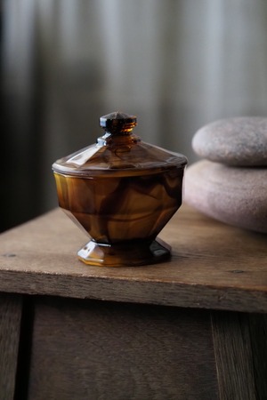 アール・デコそのもののシャープな直線多面体のデザイン、お化粧台で使うトリンケットポット。
