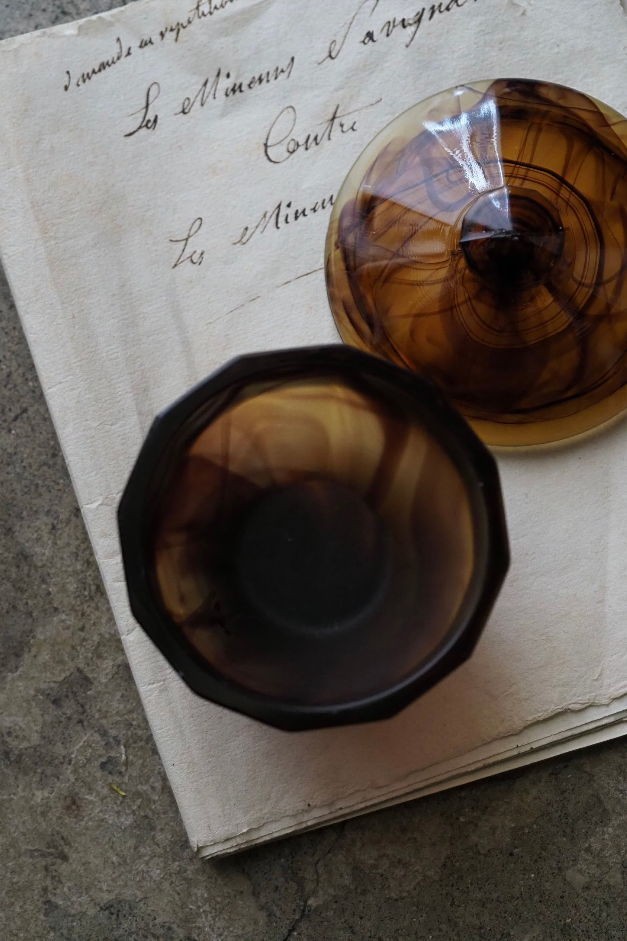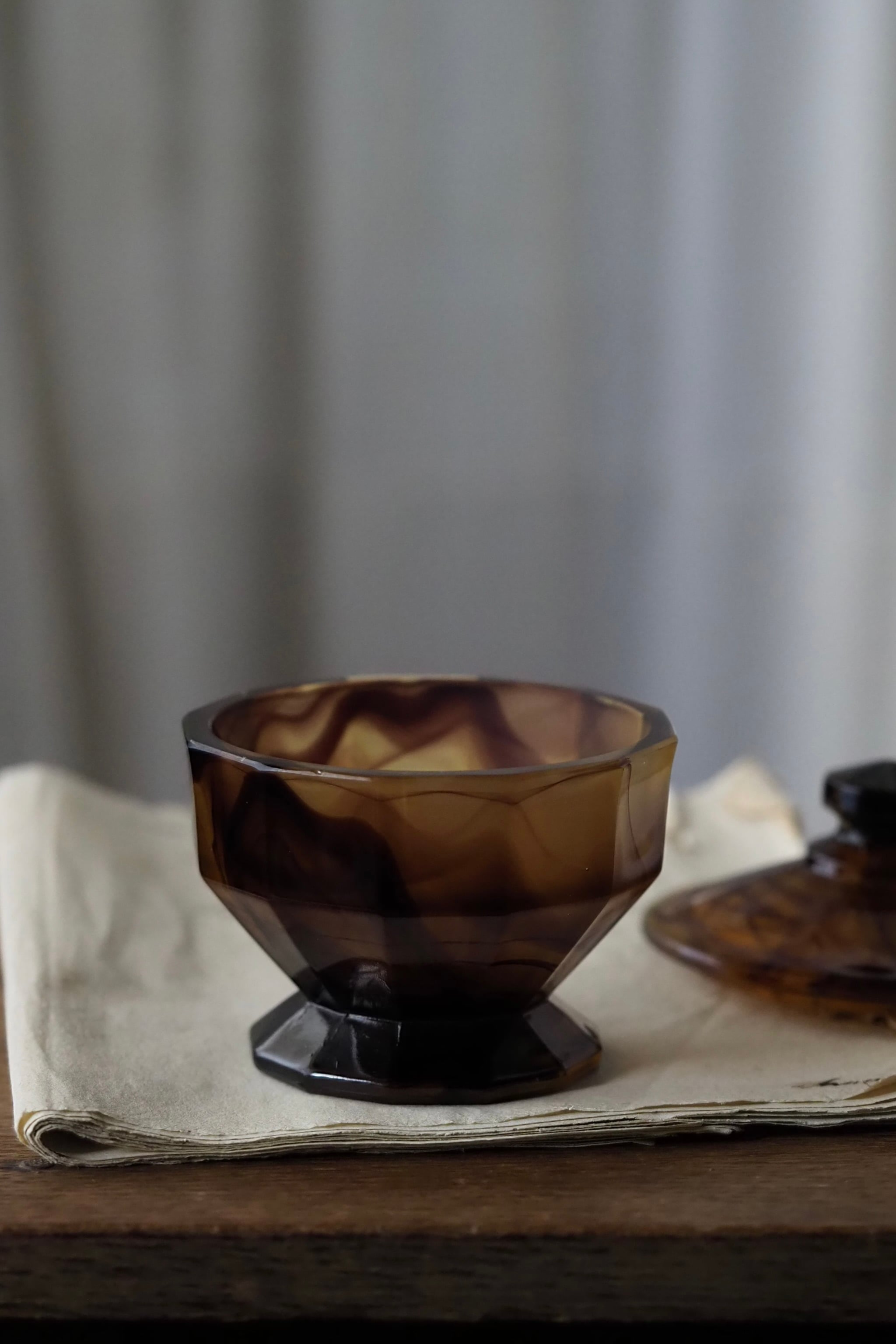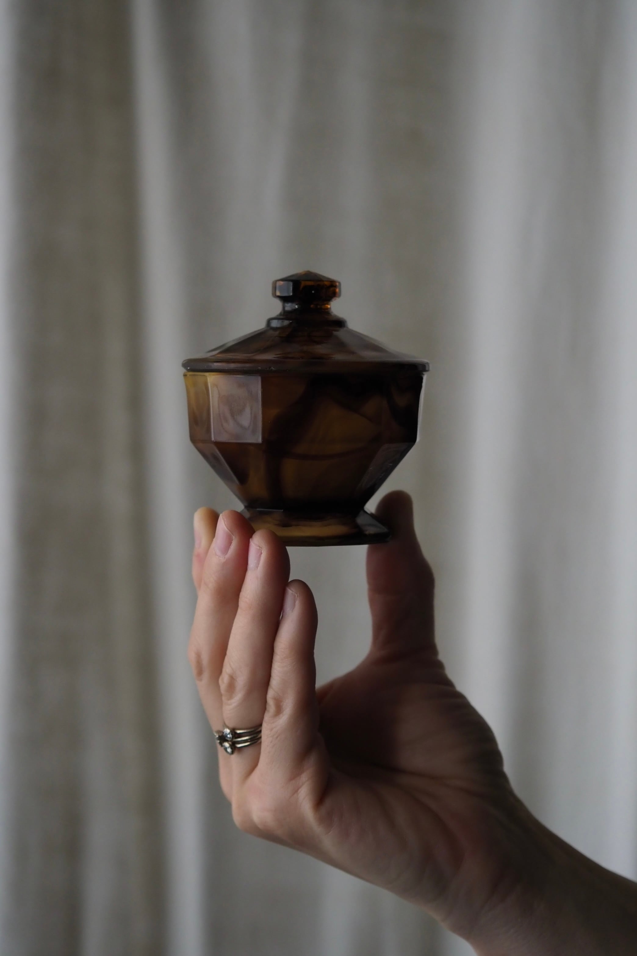 アール・デコそのもののシャープな直線多面体のデザイン、お化粧台で使うトリンケットポット。