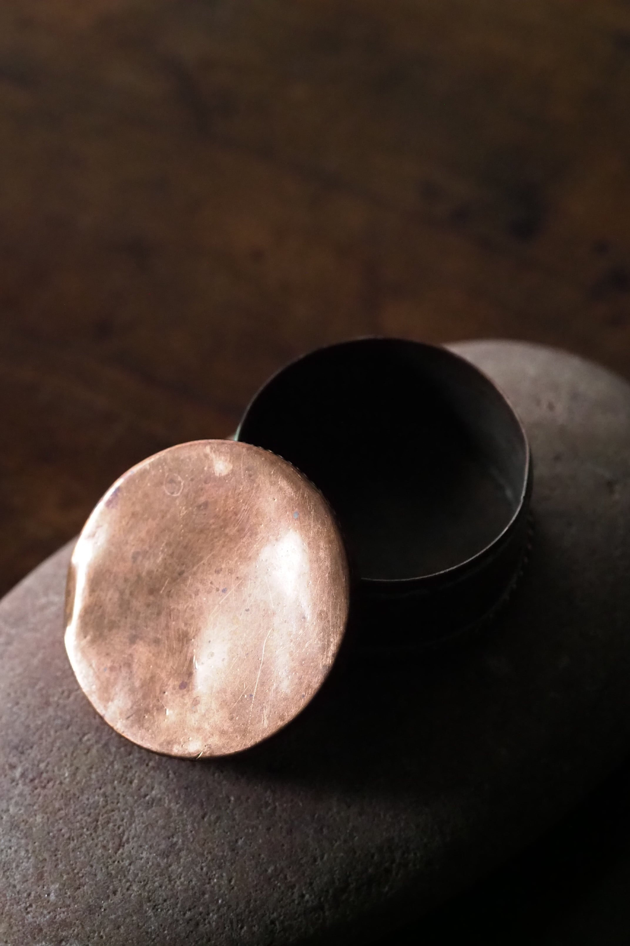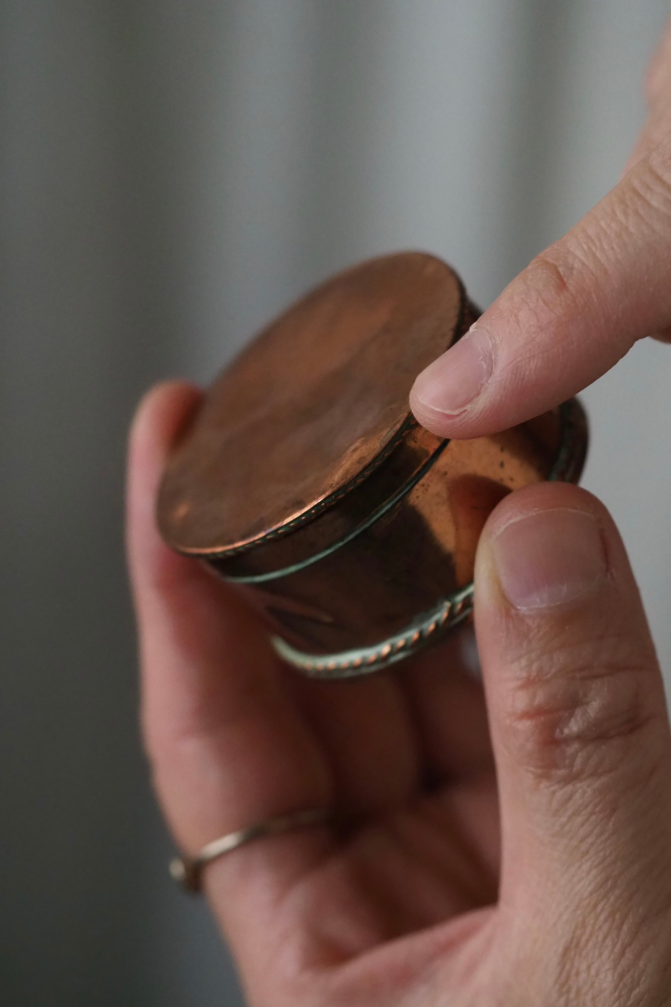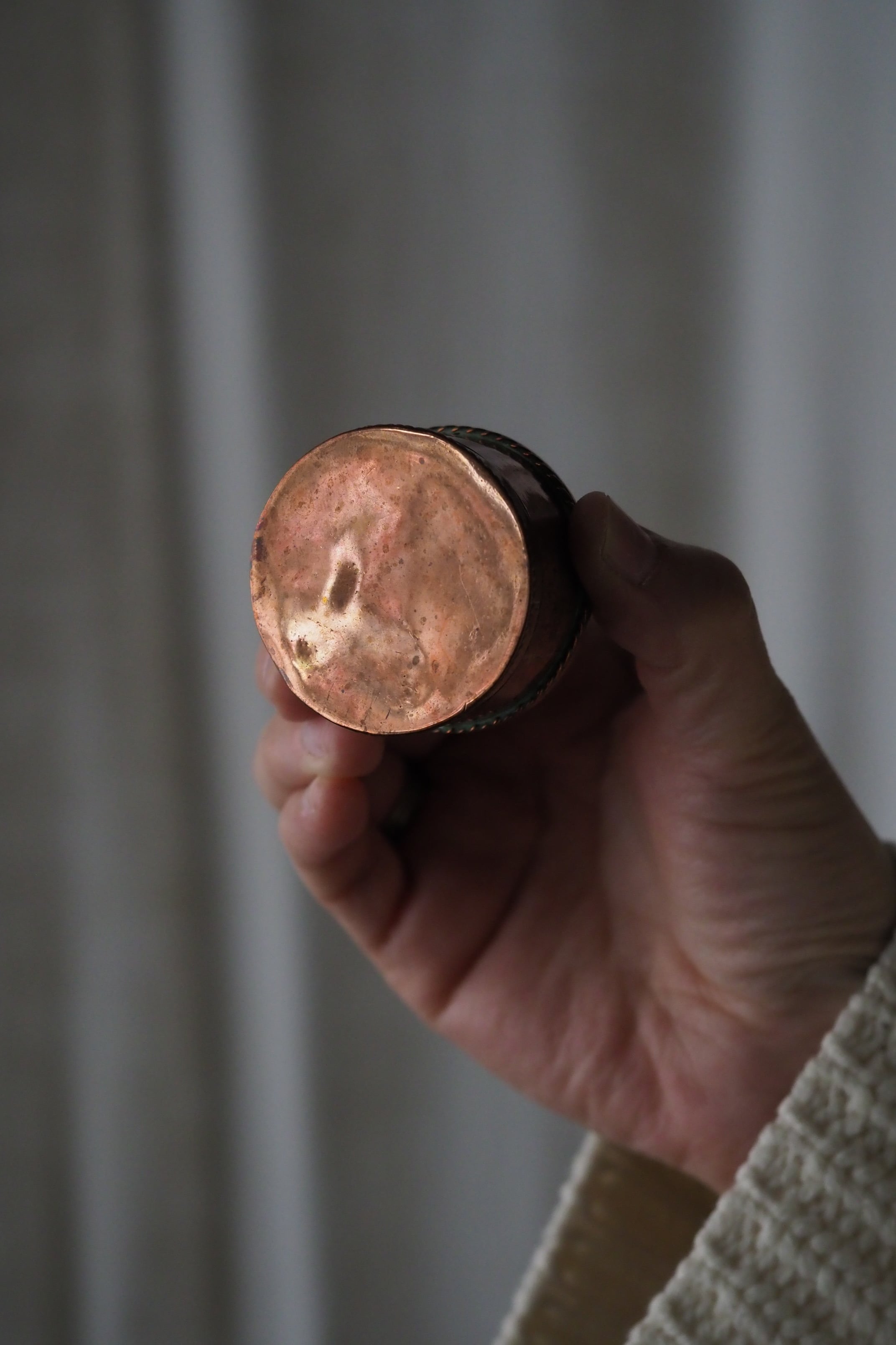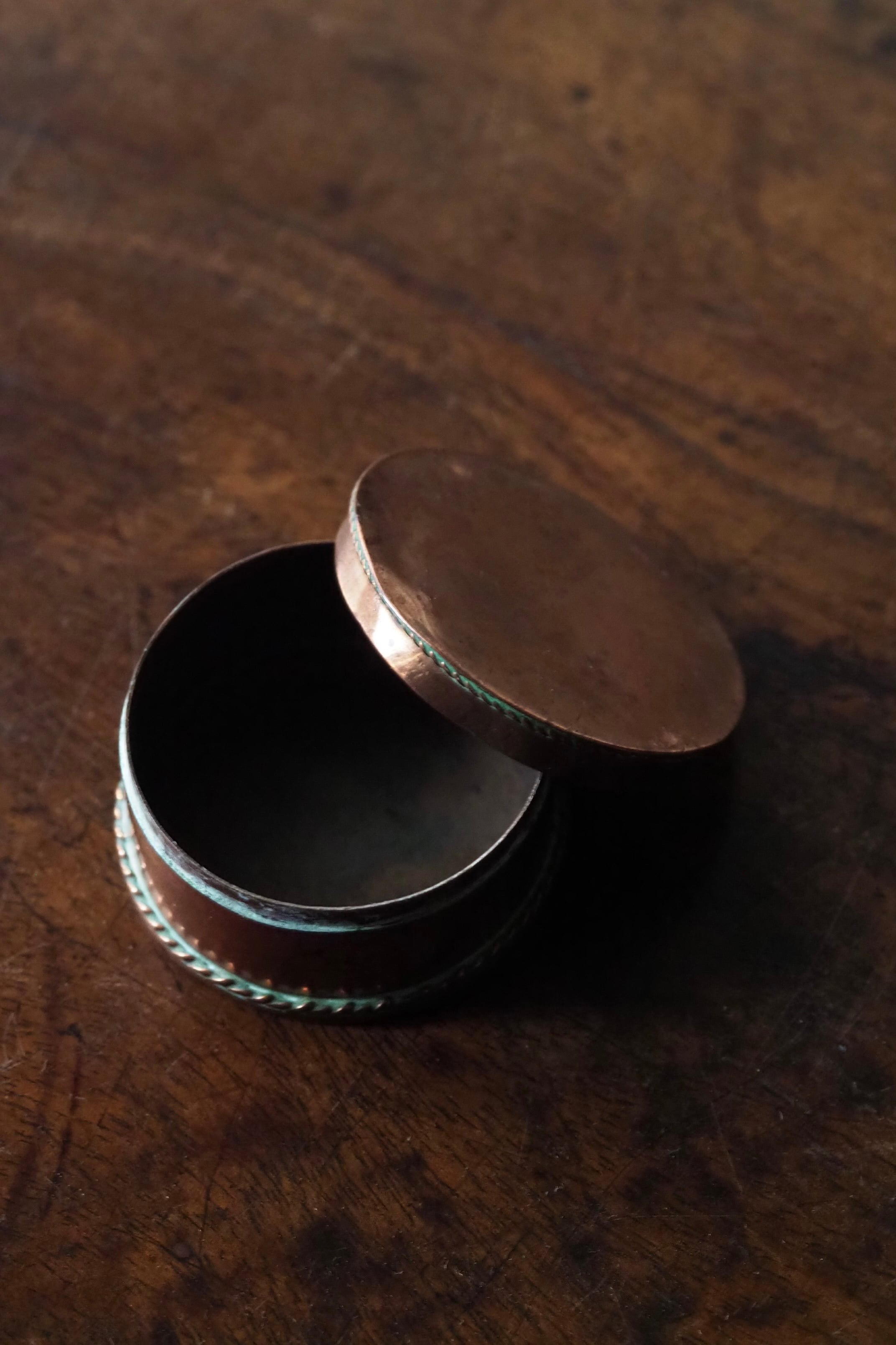 嗅ぎタバコ入れと思われる銅製の鈍びた輝きが魅力なケース。