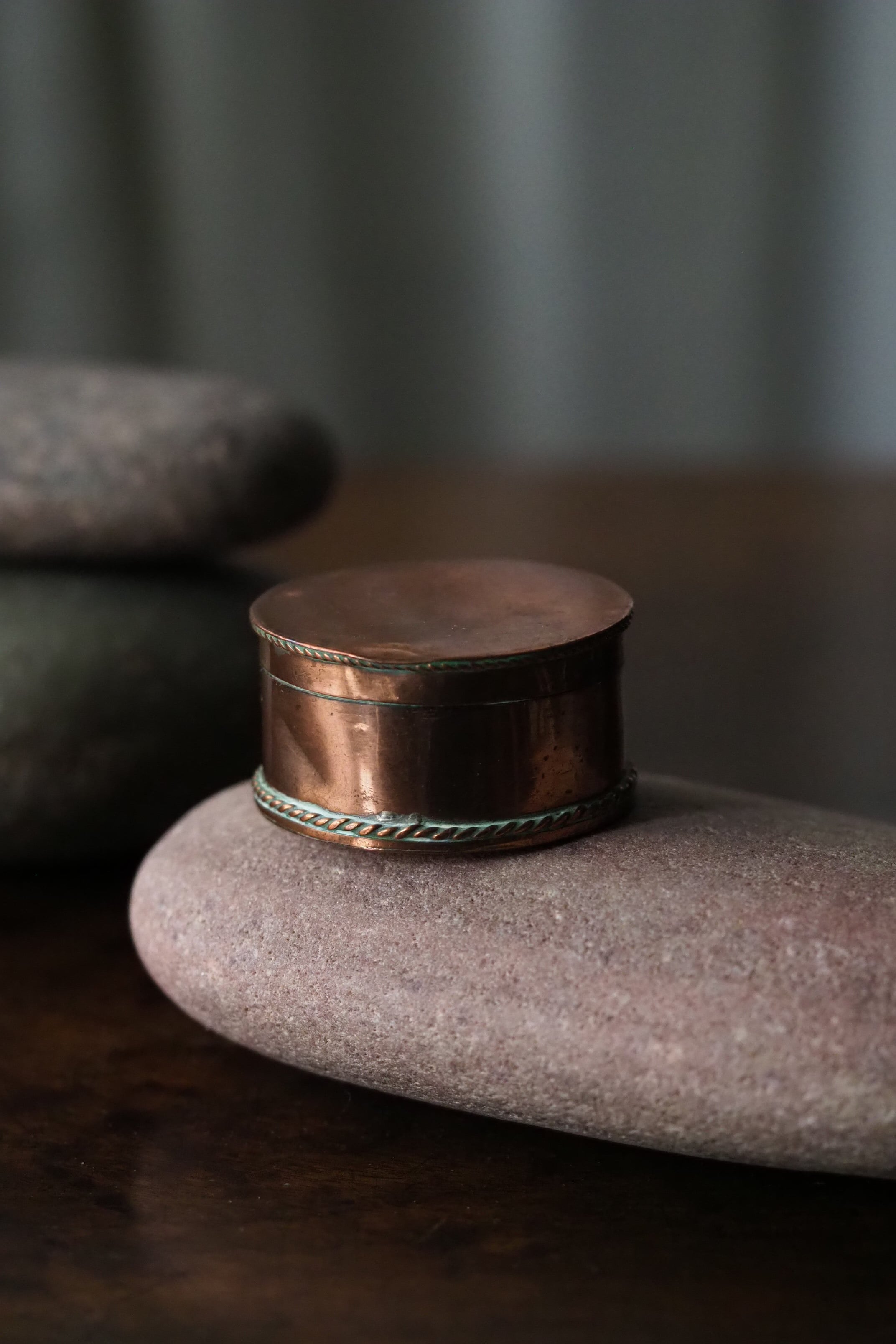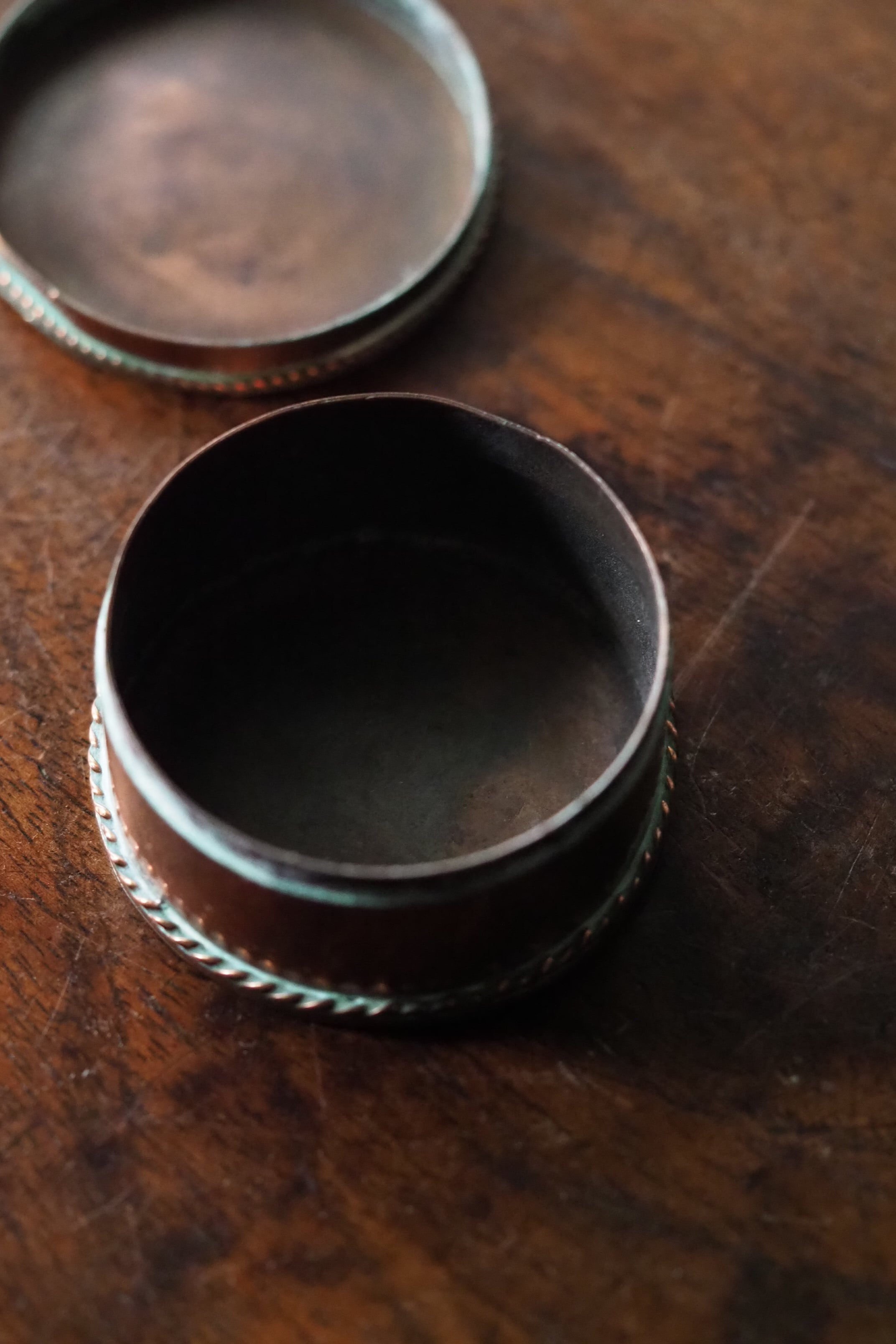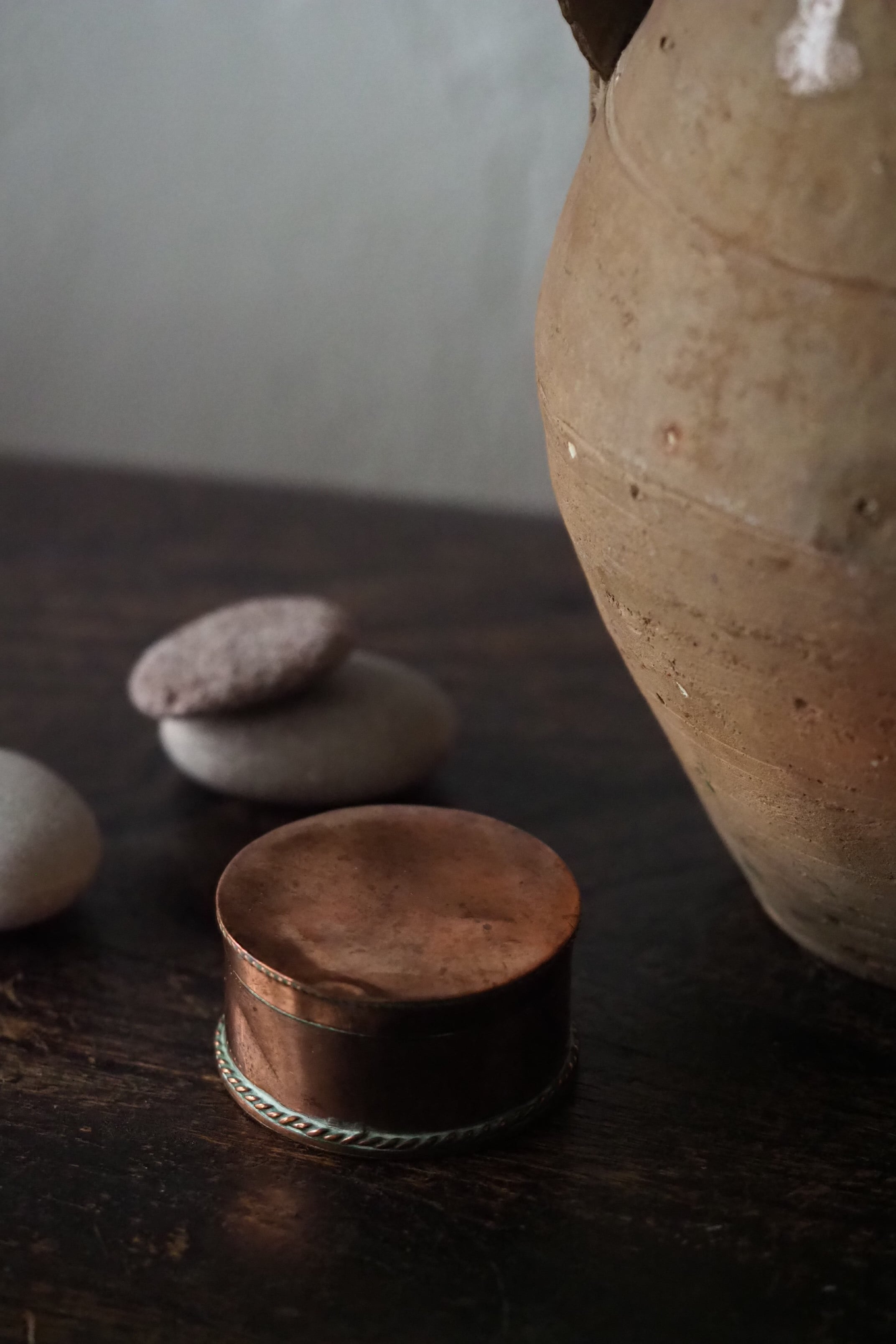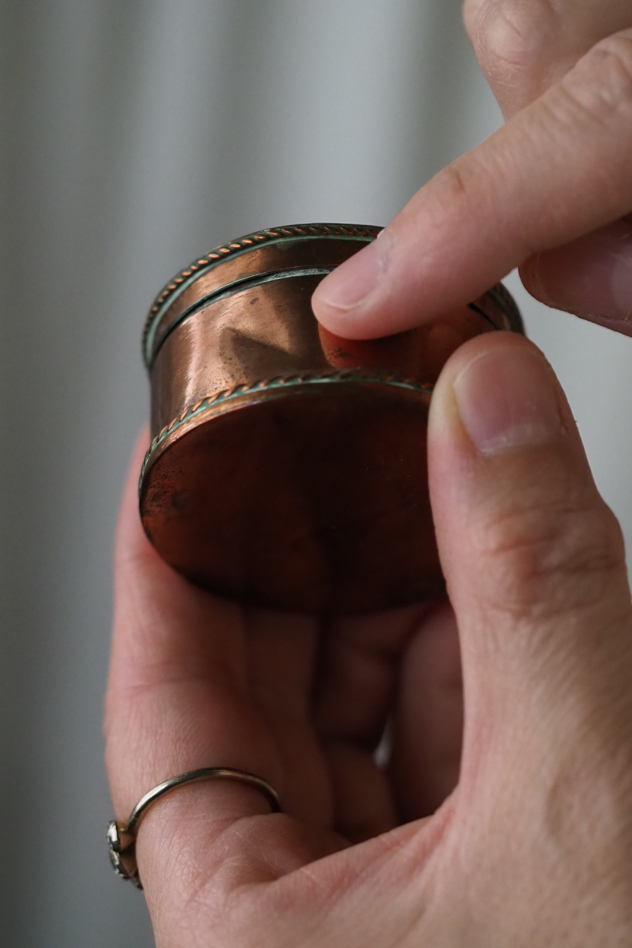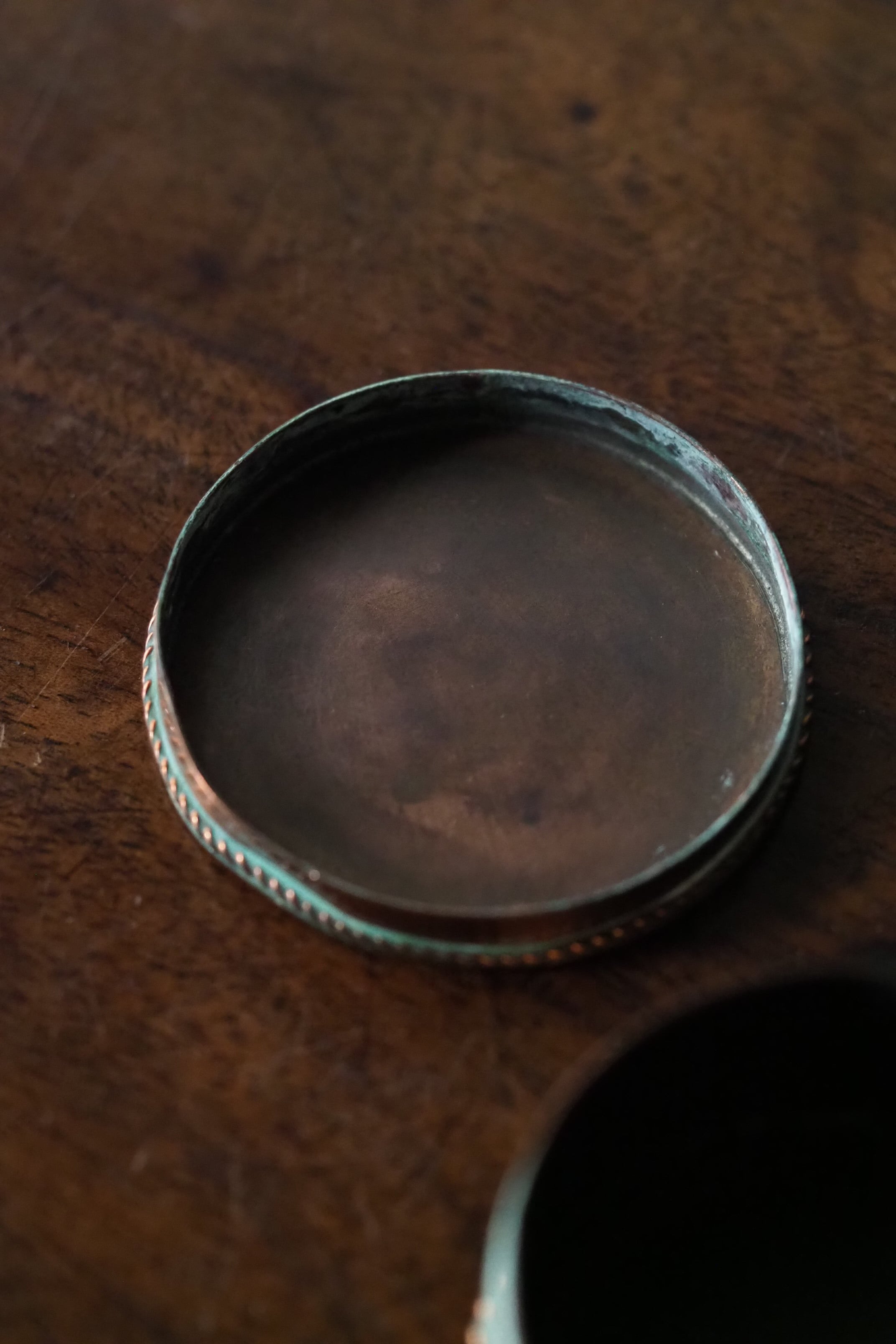 嗅ぎタバコ入れと思われる銅製の鈍びた輝きが魅力なケース。
