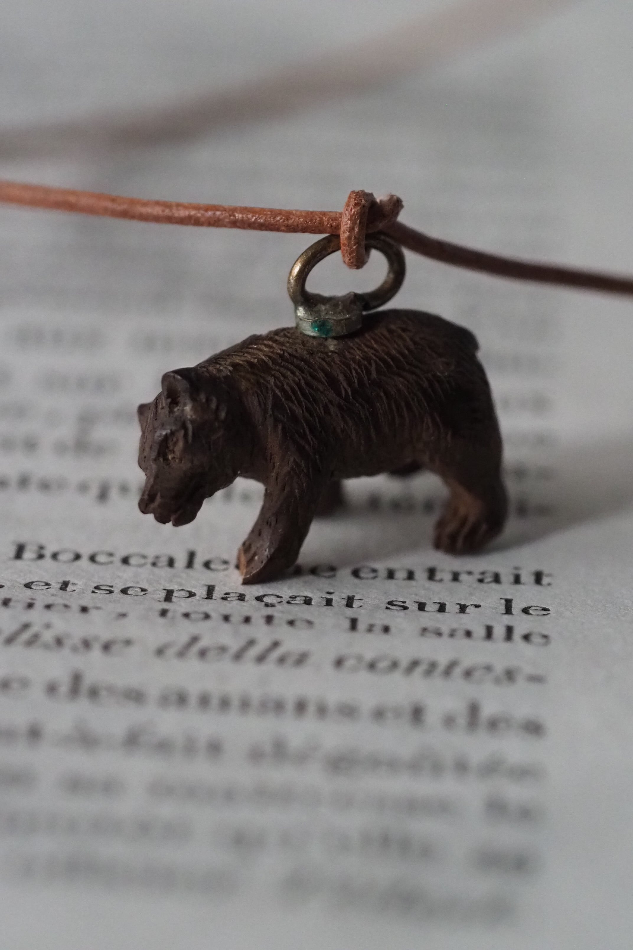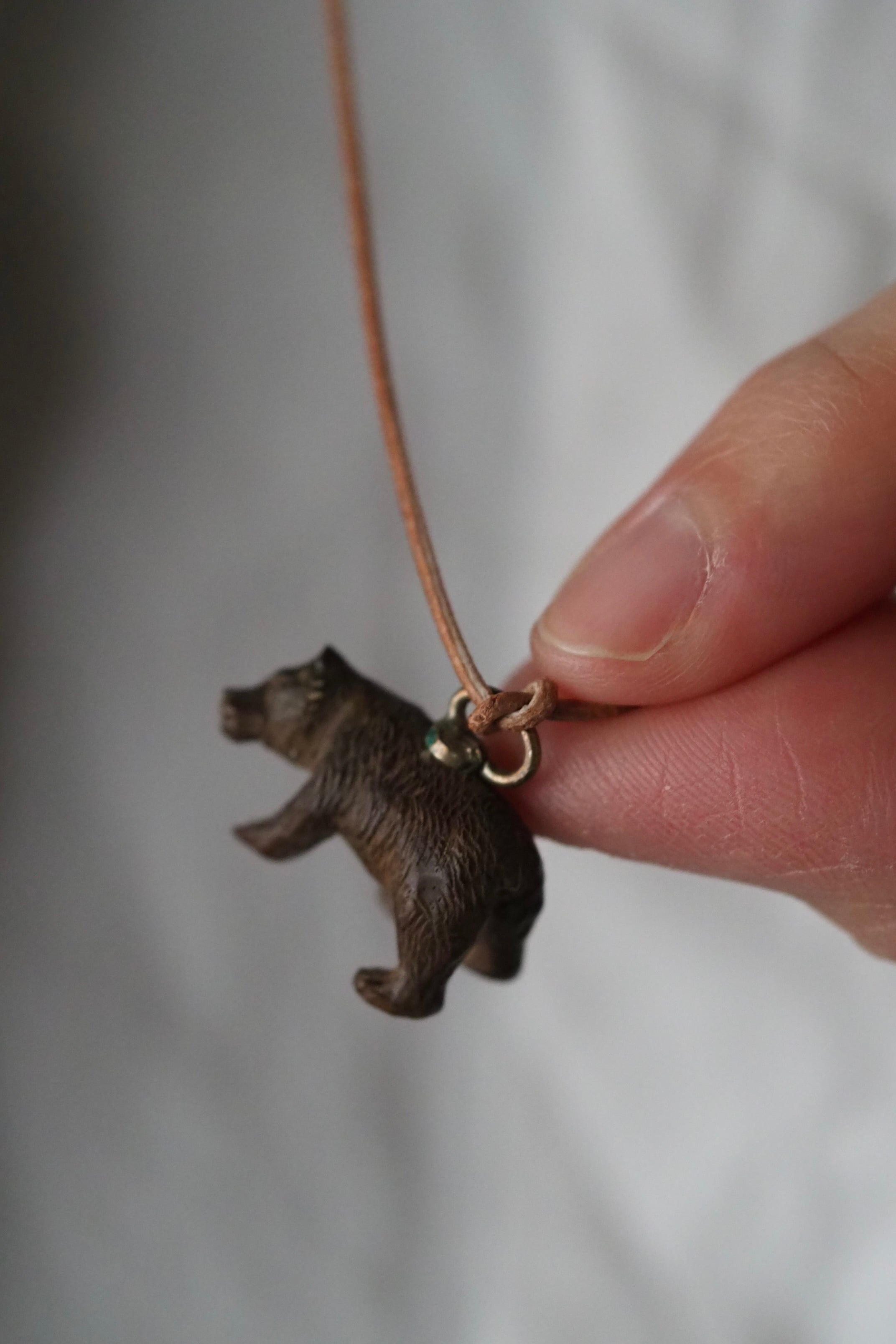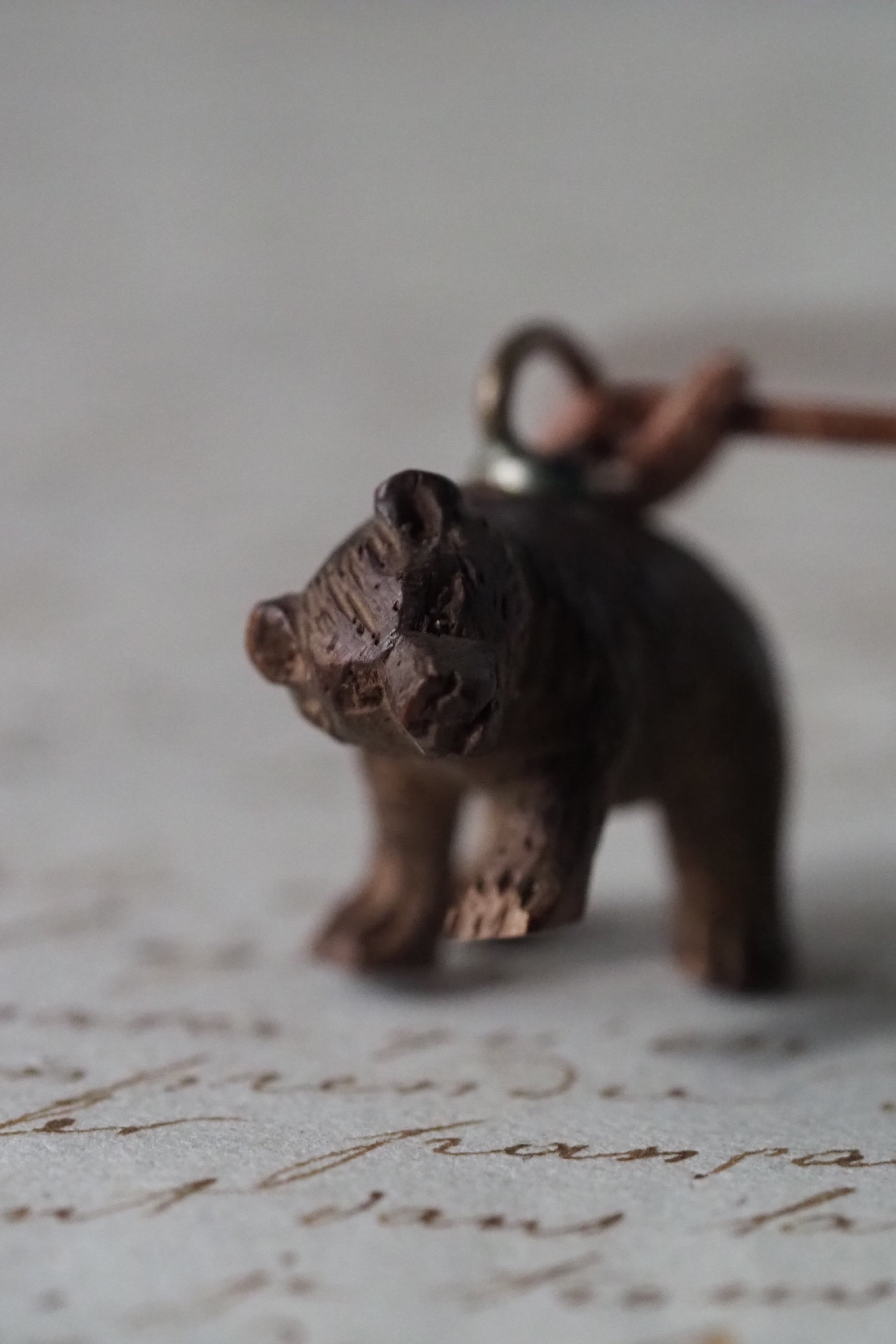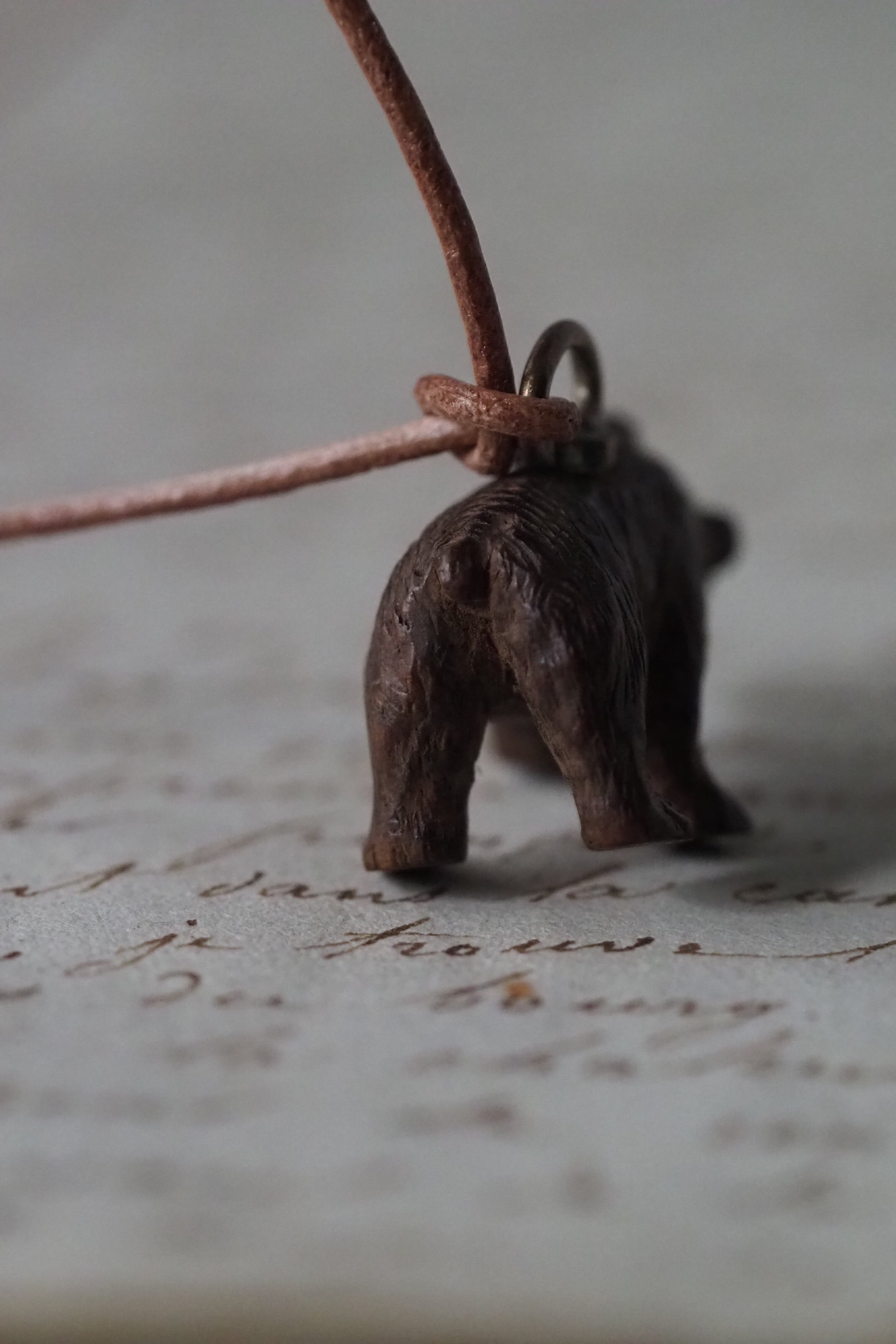 そして毛並みも細かくひと筋ずつ彫刻されている、歩むクマさんネックレス。