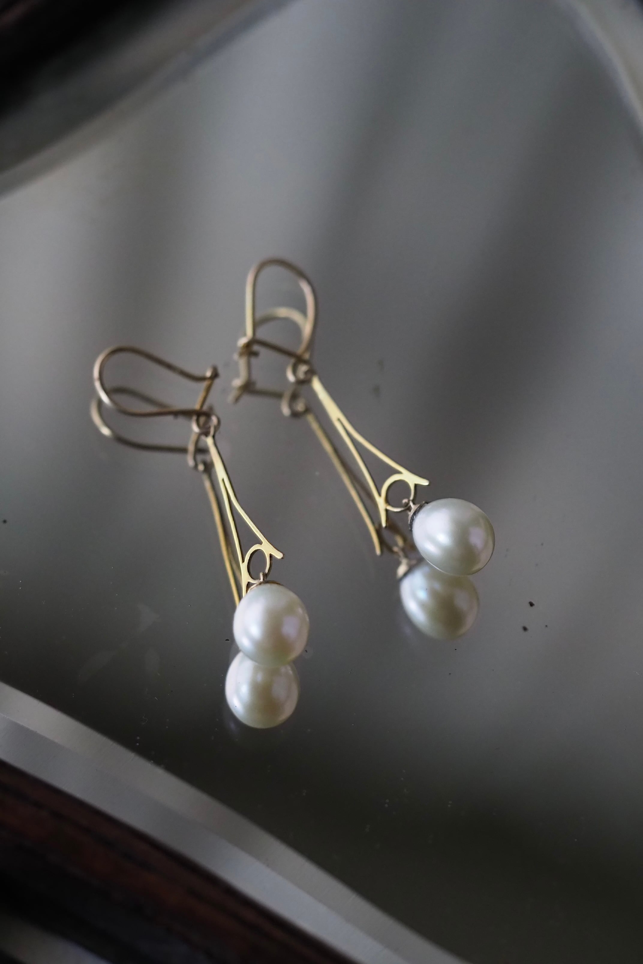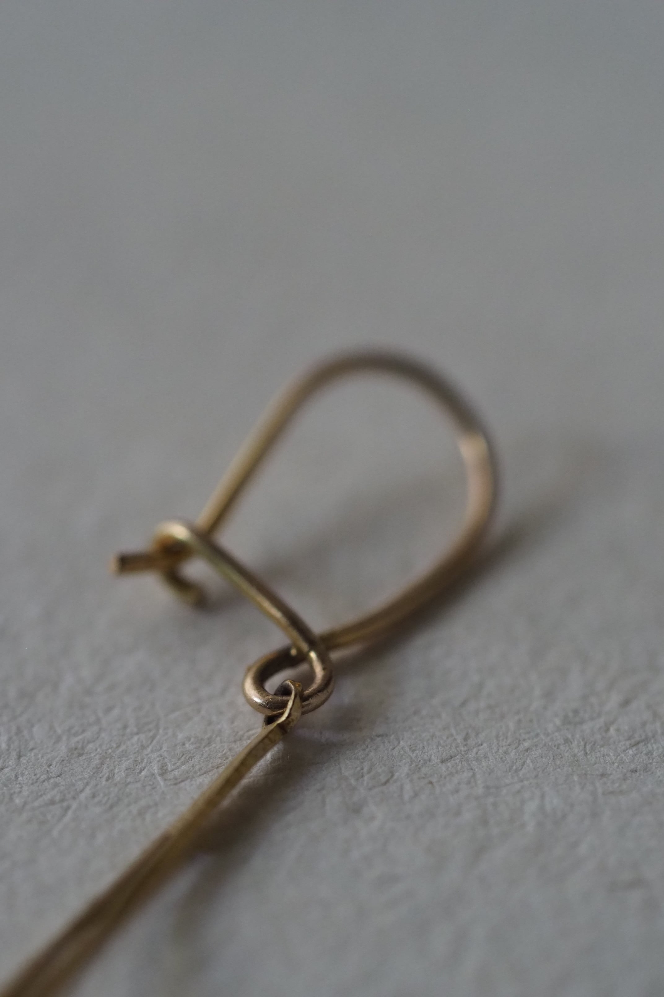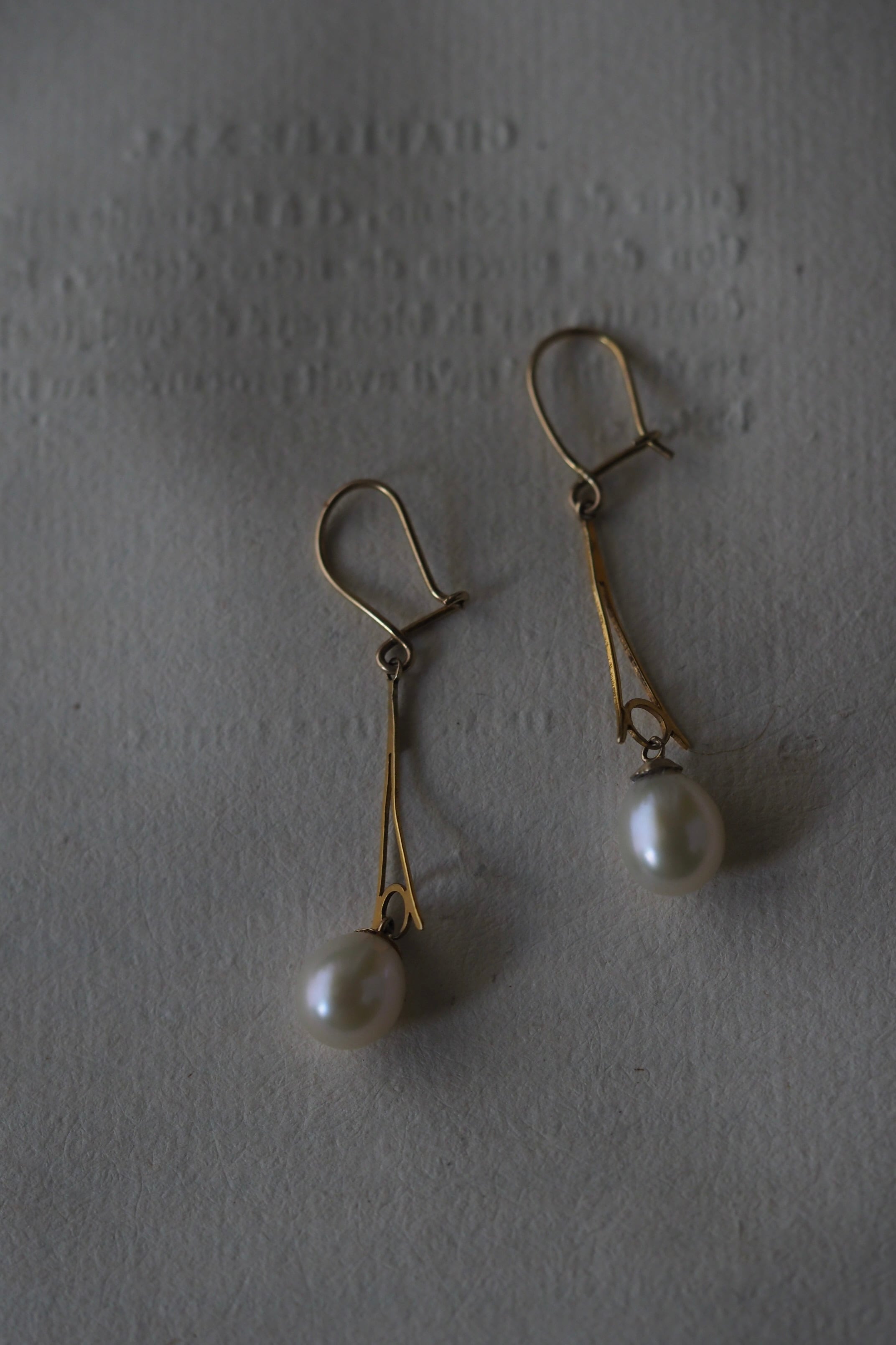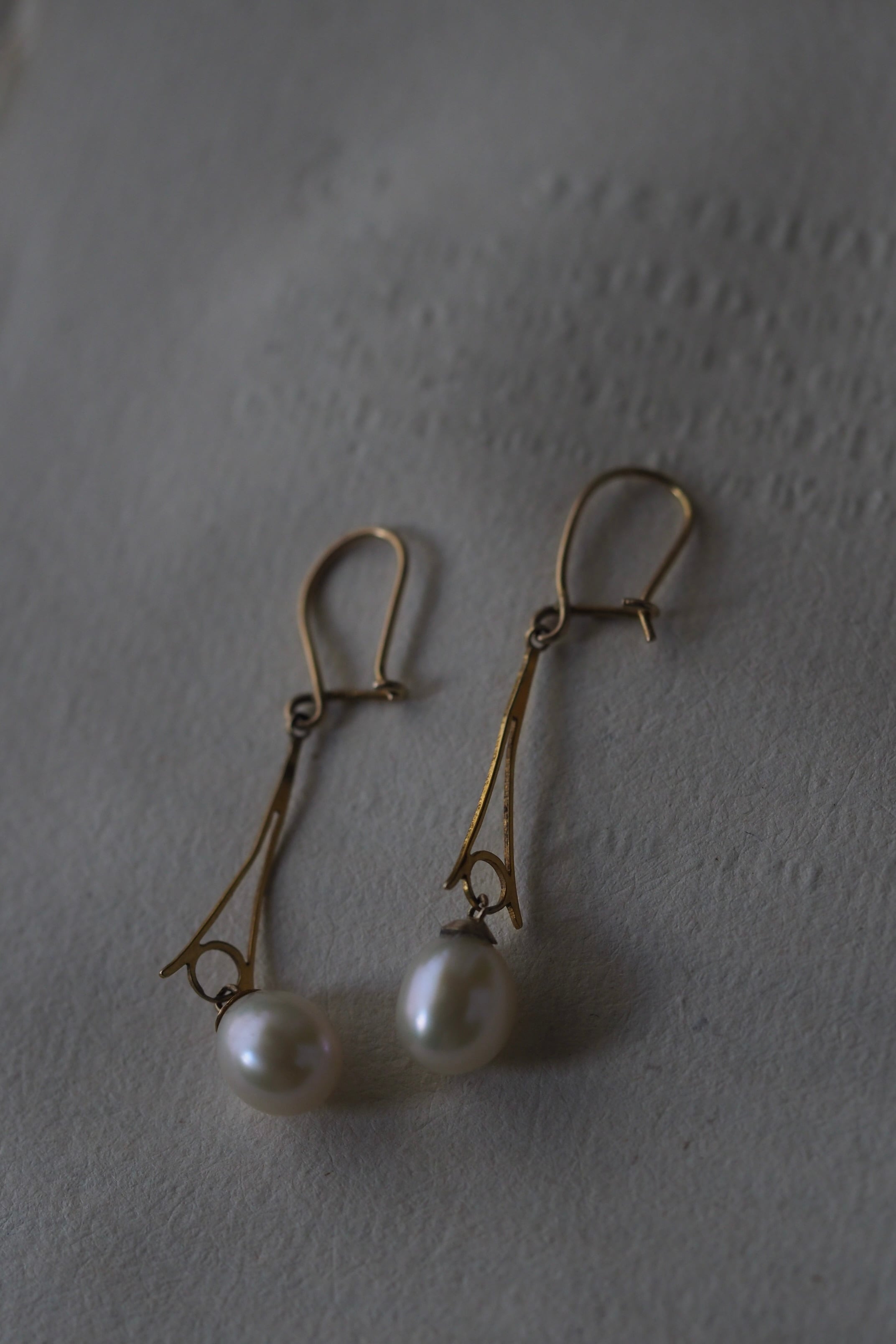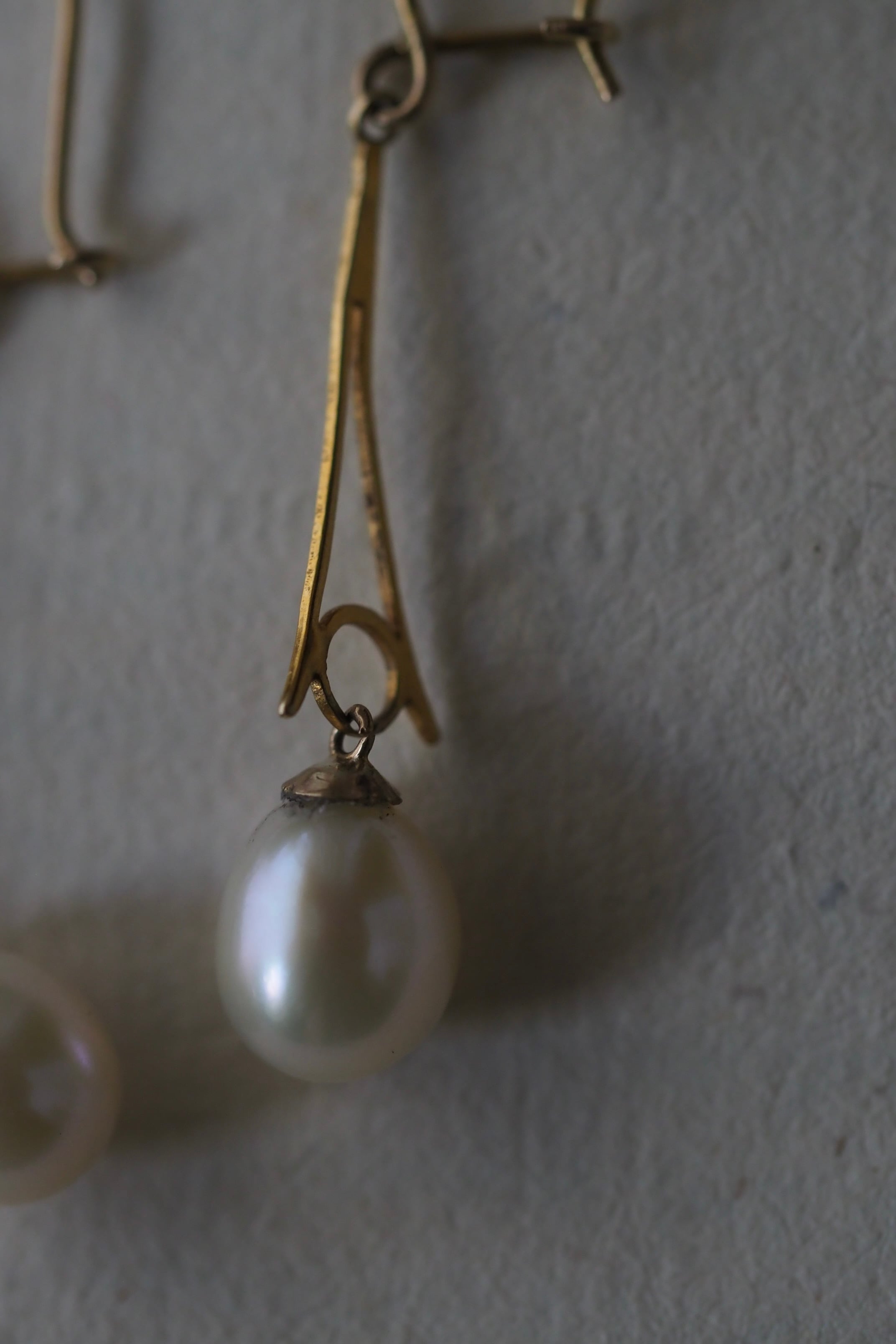 繊細な線が繋いだデザイン。そして柔らかい印象の中、クールな表情も併せ持つパールの揺れるピアス。