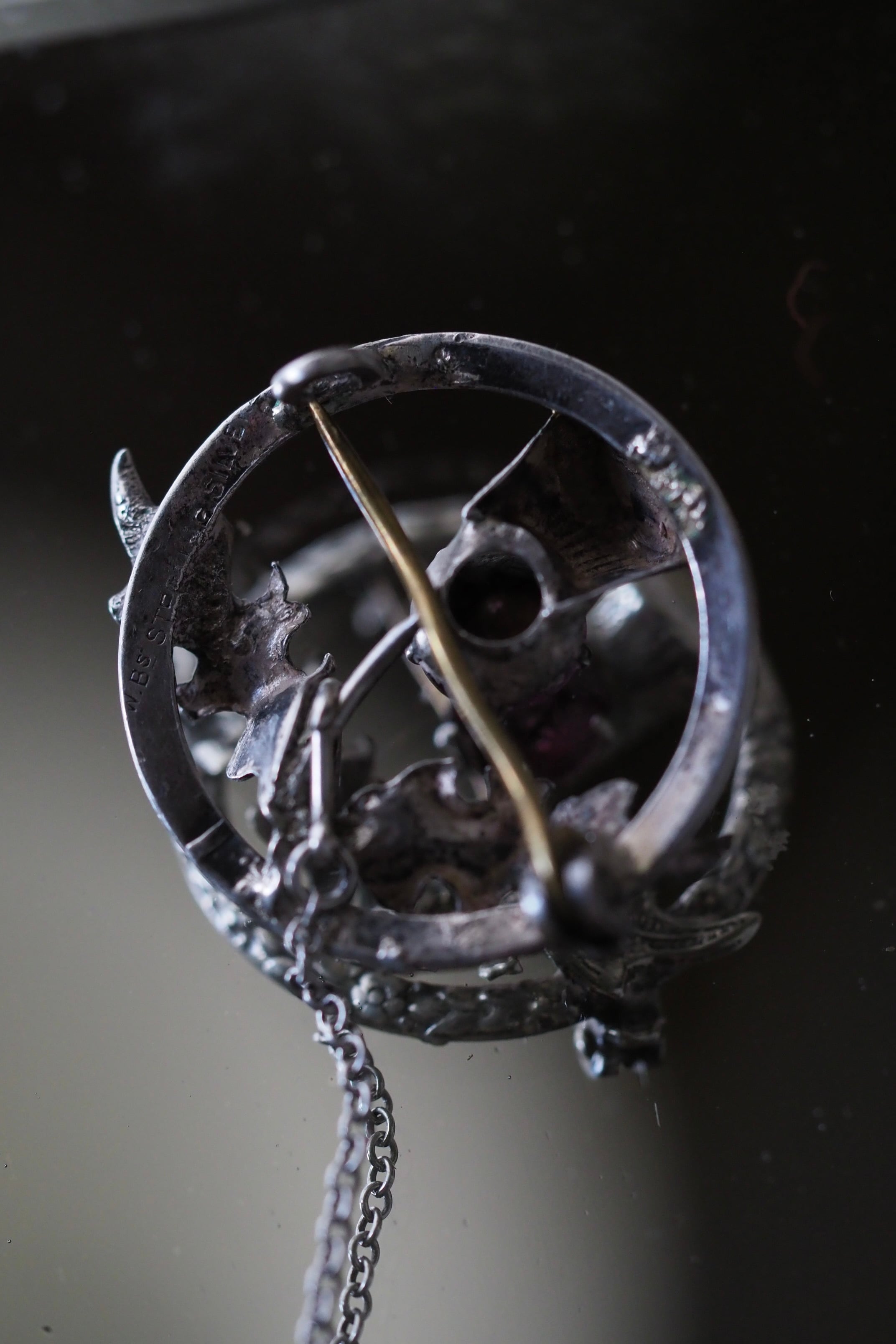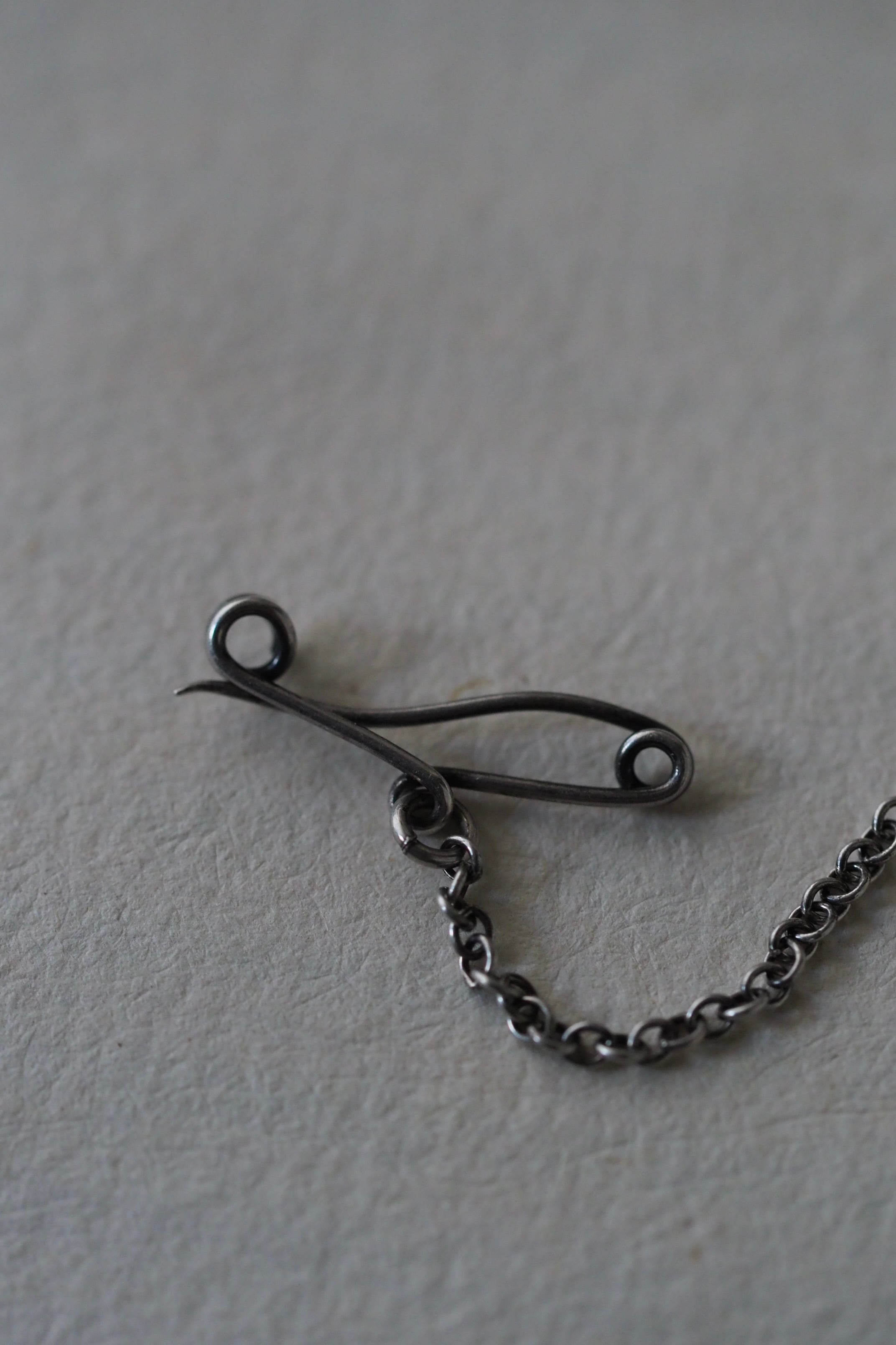 ブローチ本体背面は爪に引っ掛けて留めるタイプ。