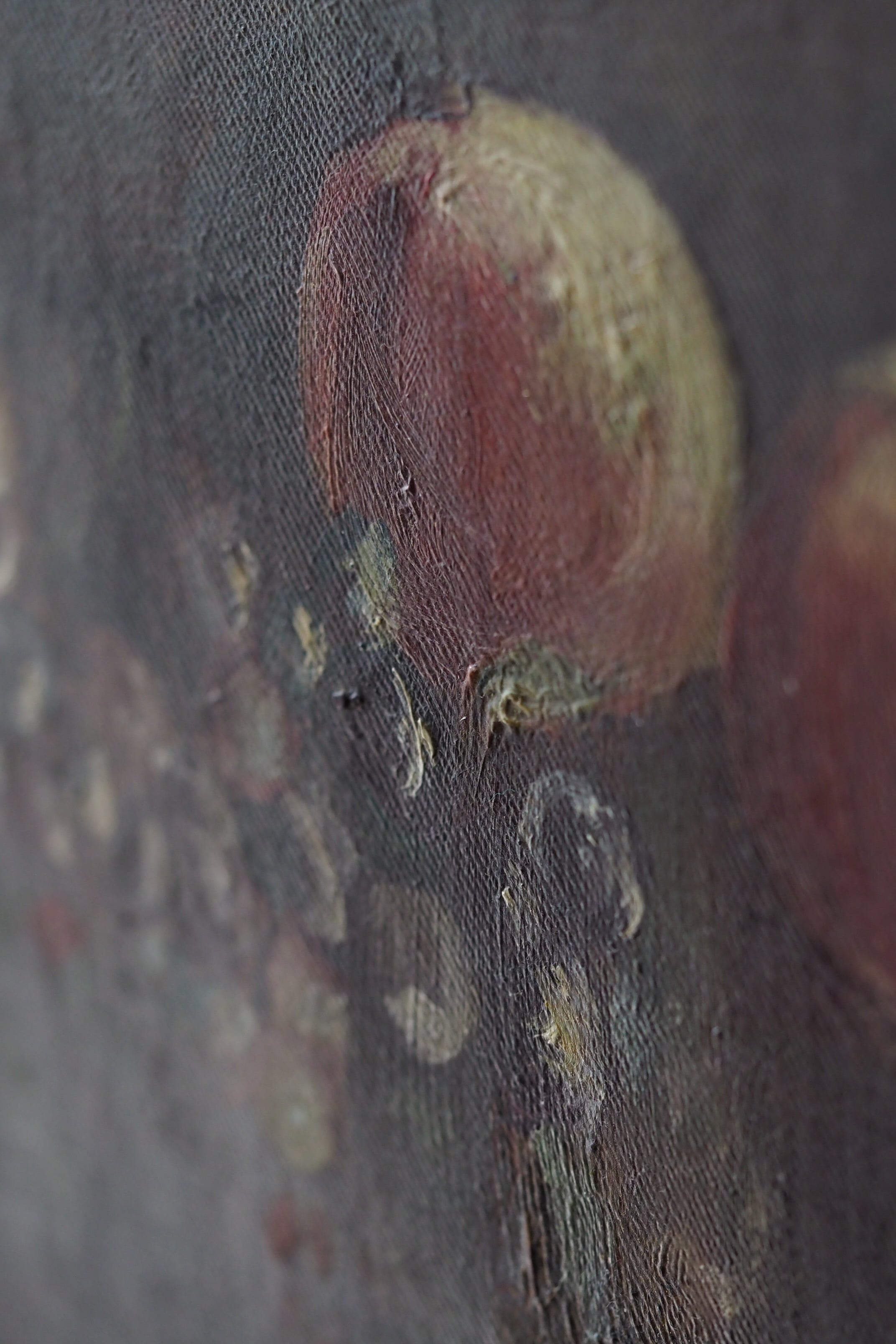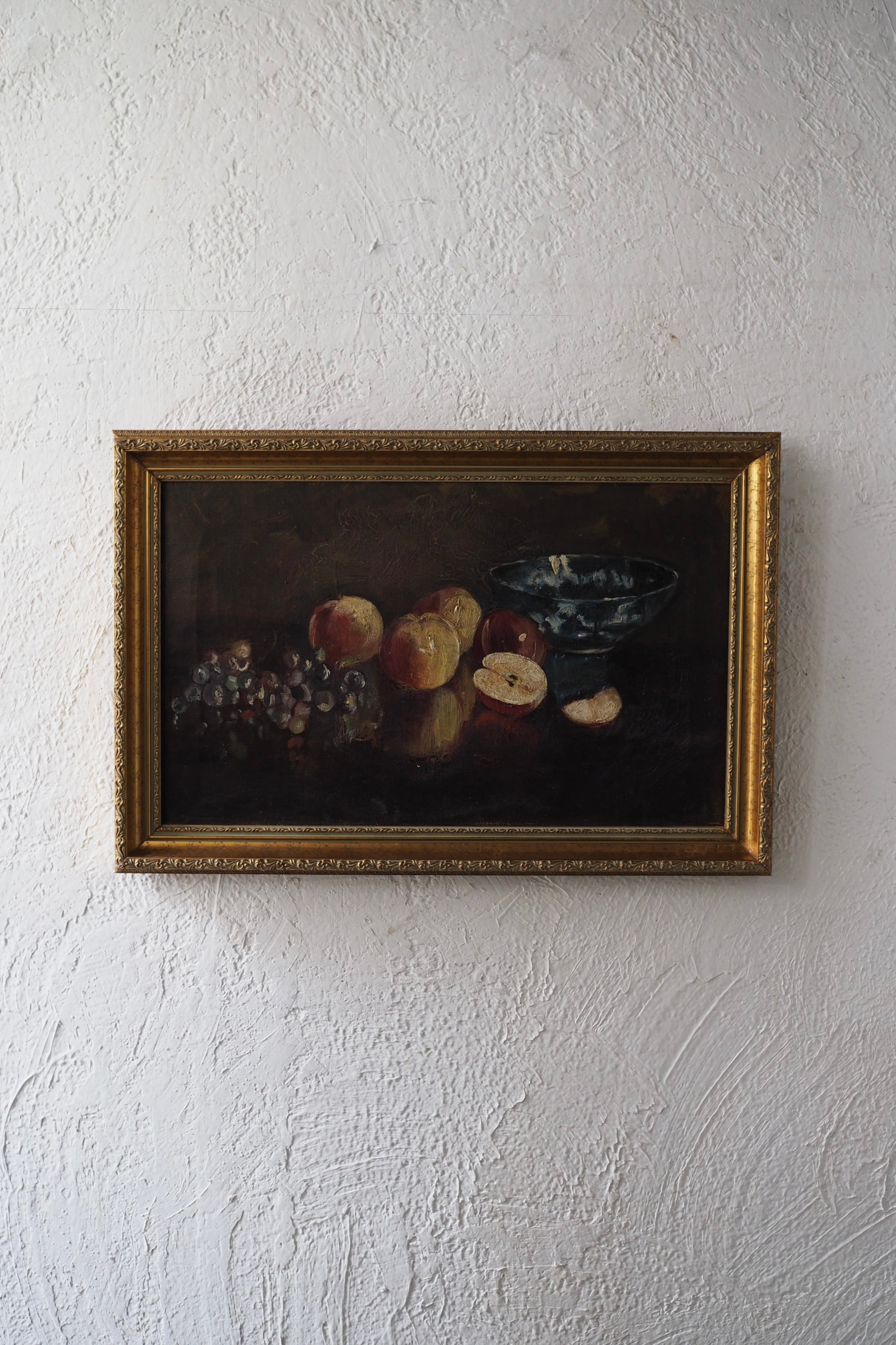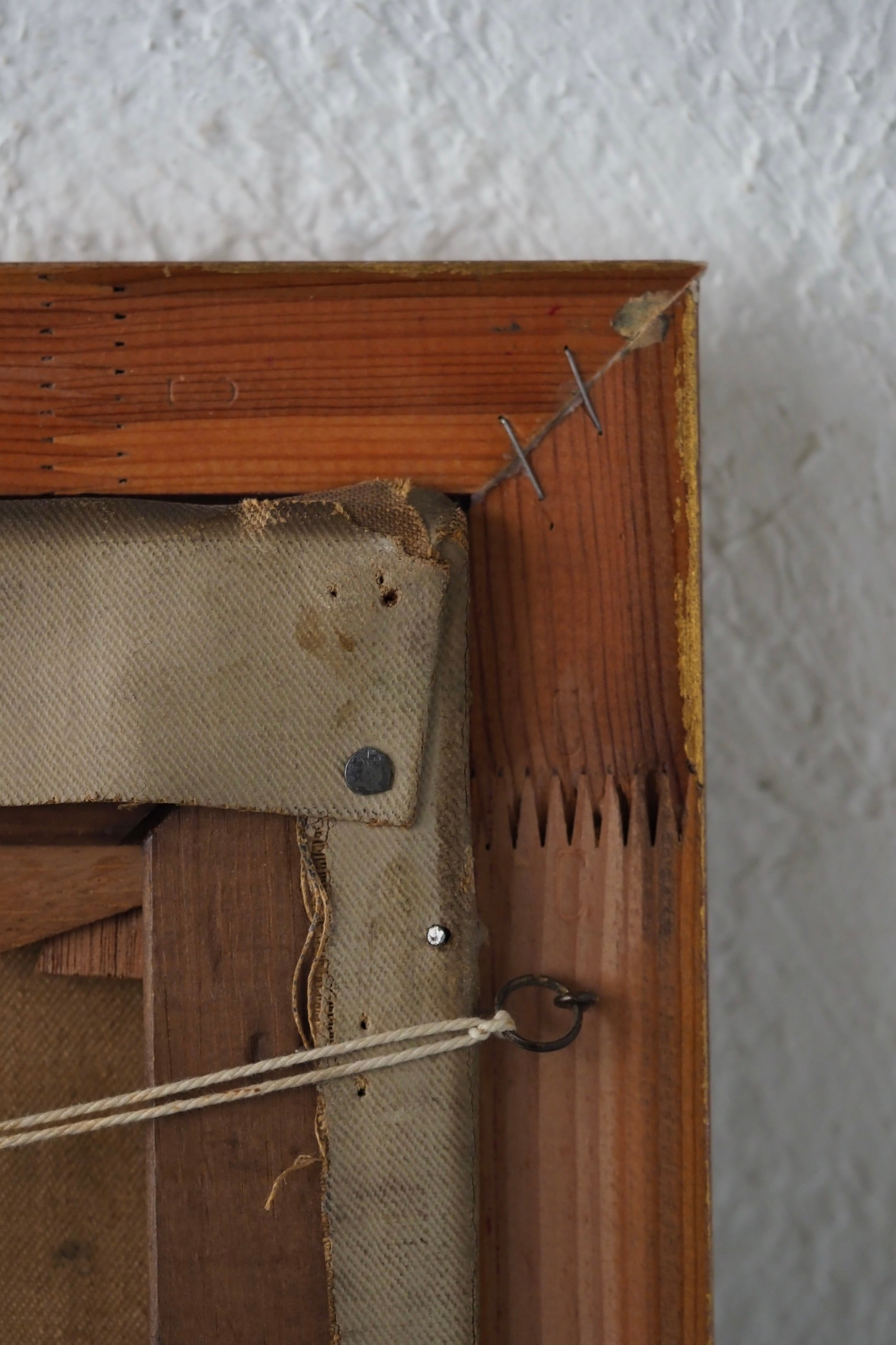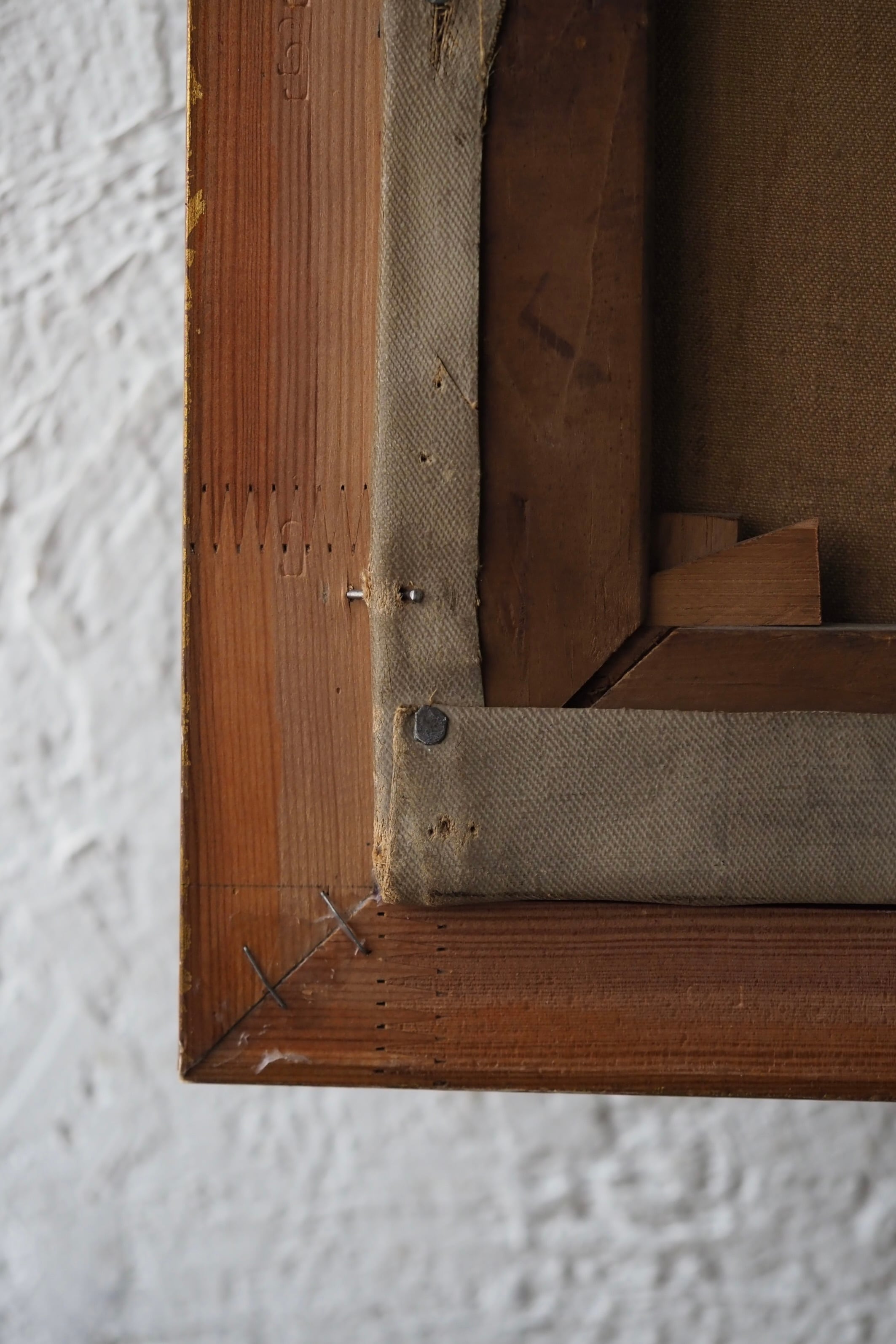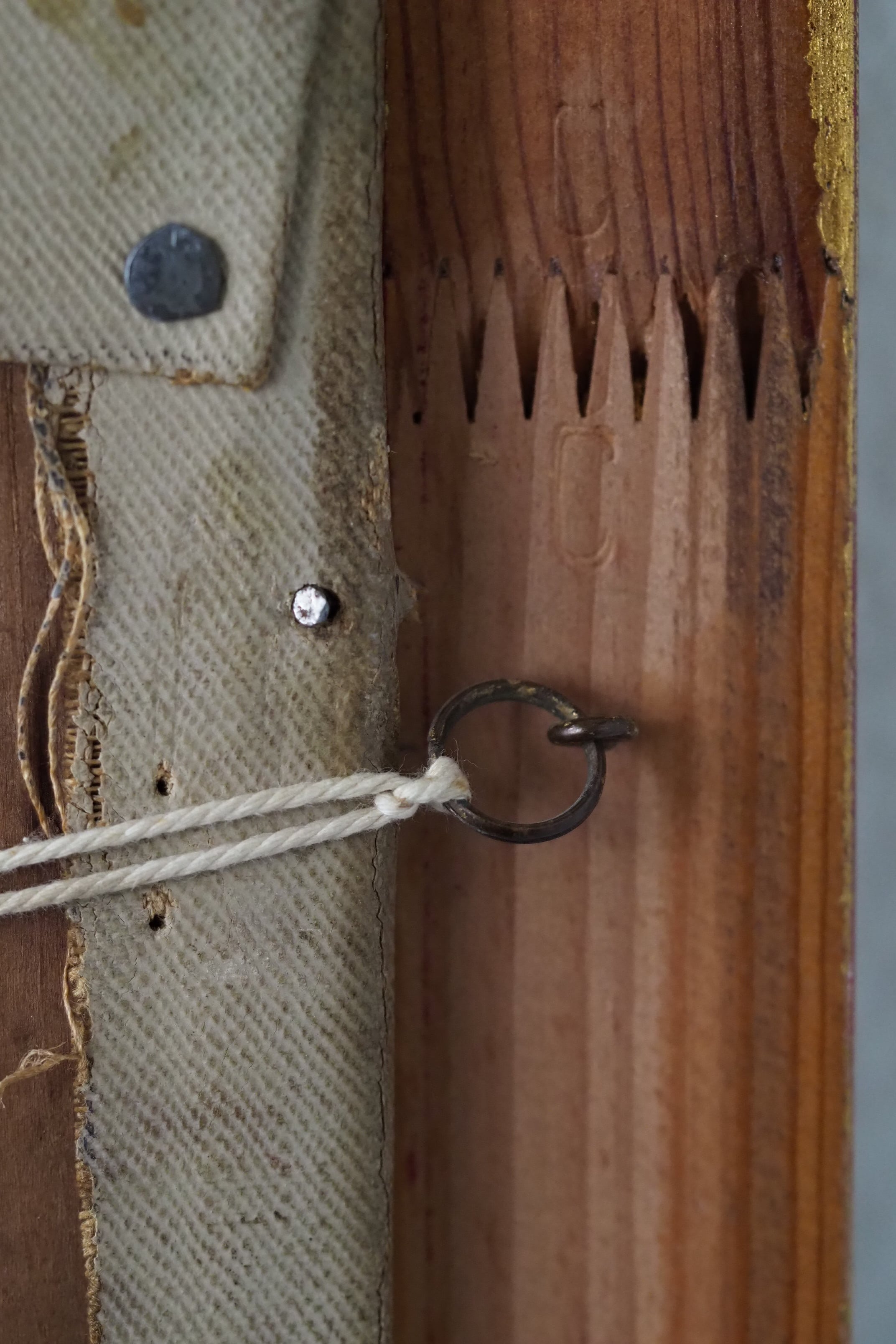 ゴールドの額縁は後世このキャンバス画に合わせてあつらえた物で油絵より時代が新しいと思われます。