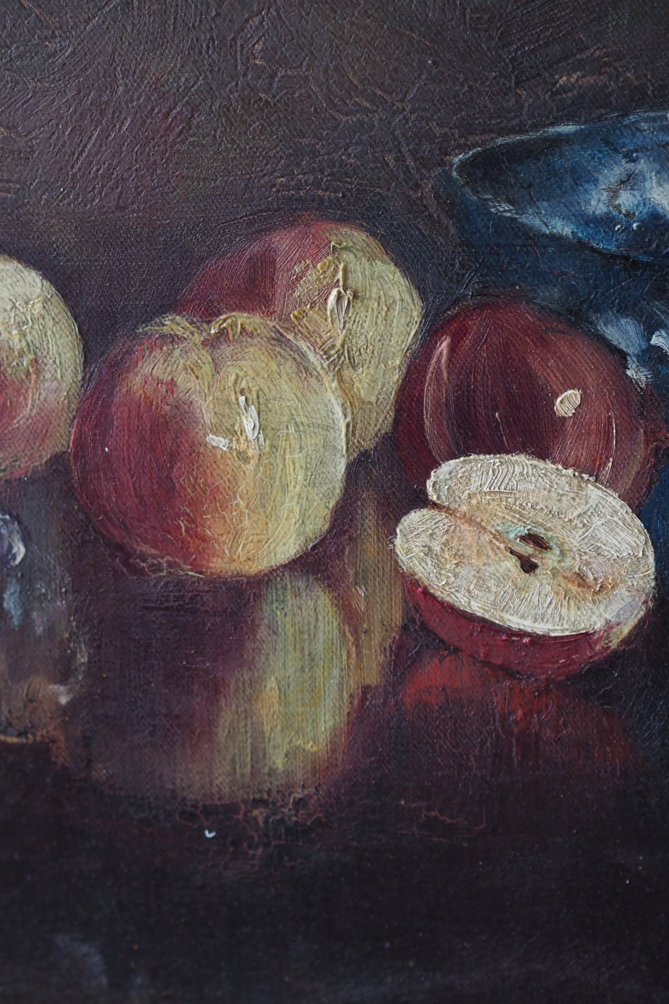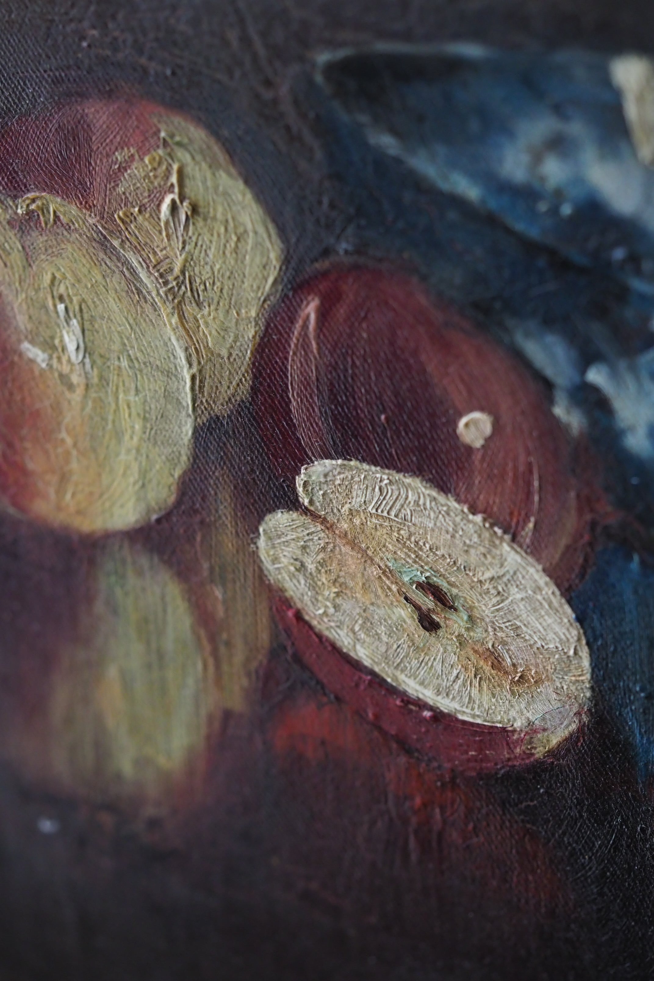 りんごの切り口が明るい、個々に光を受けた葡萄の粒も。