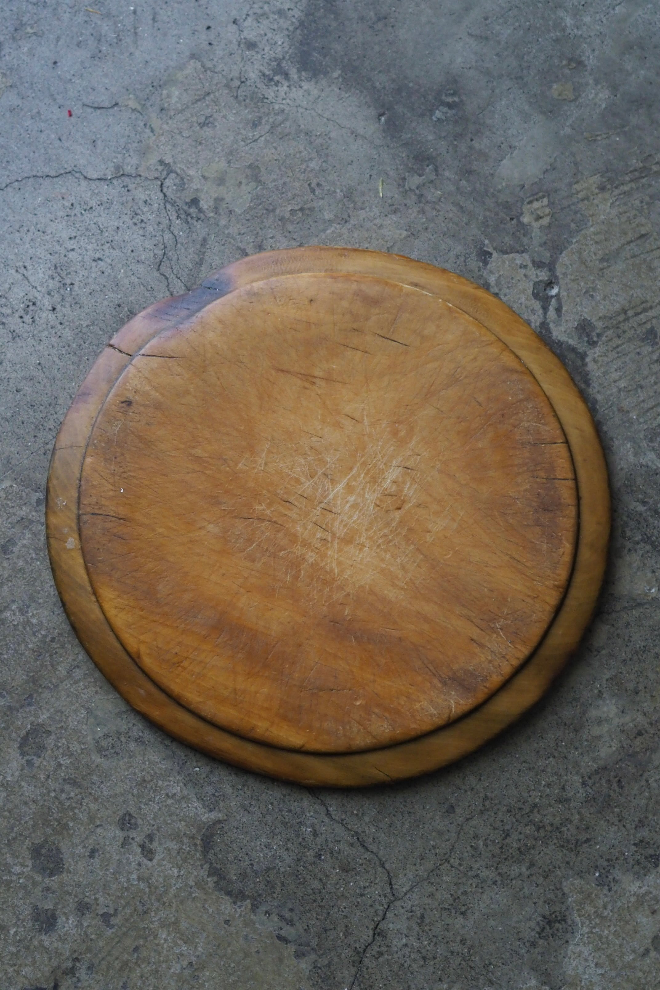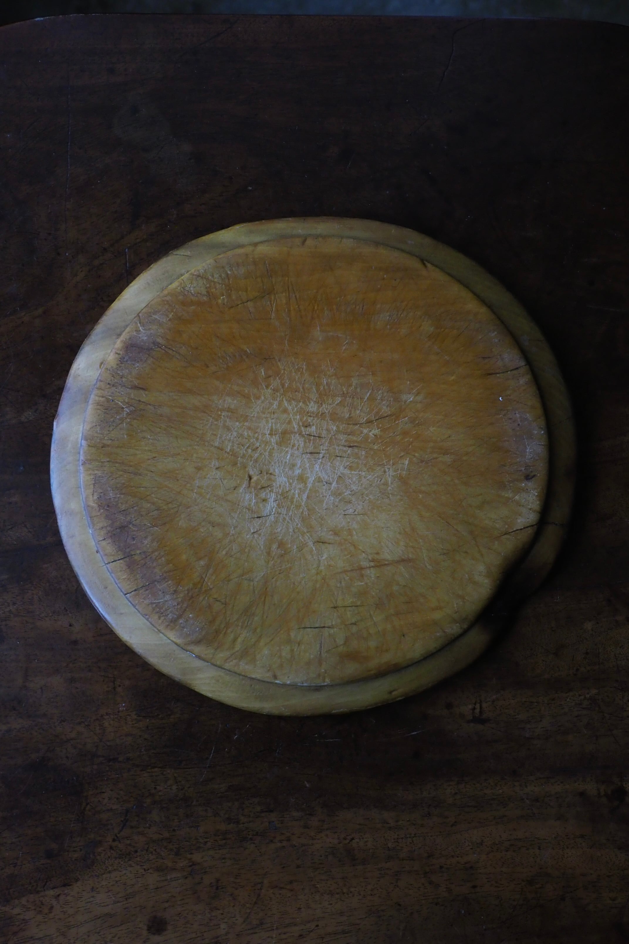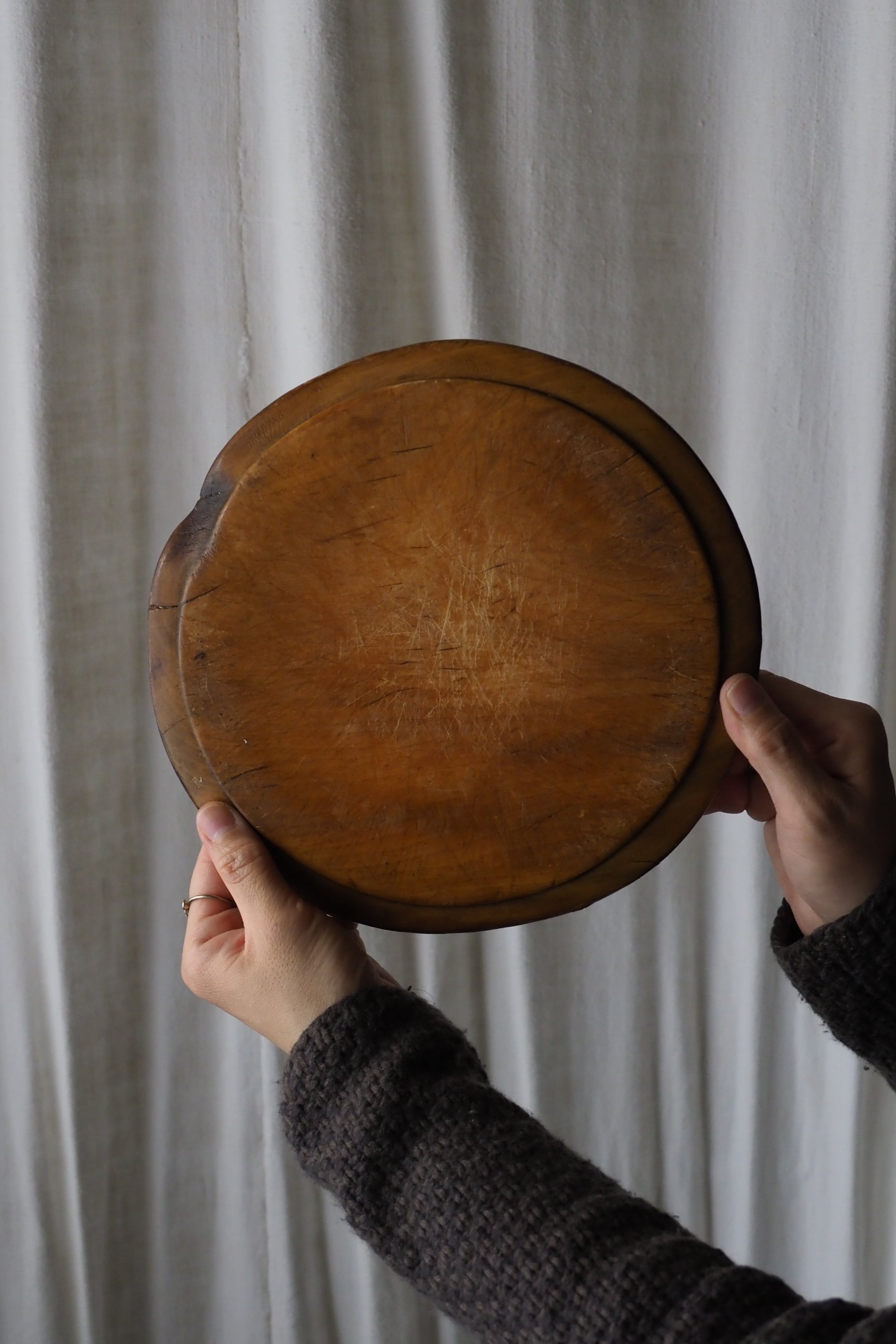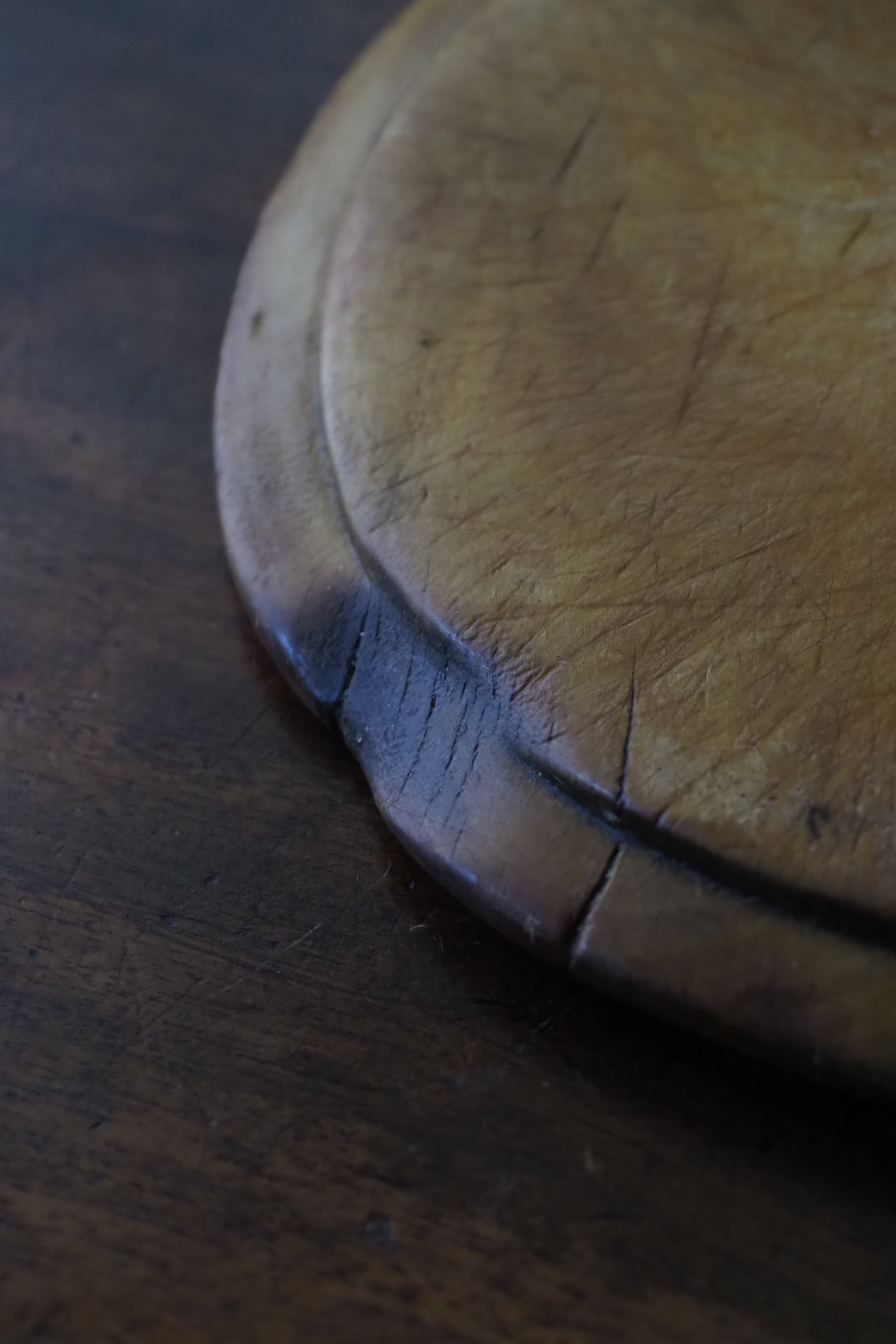 使い込まれたつるりとした表面、イギリスのブレッドボード。