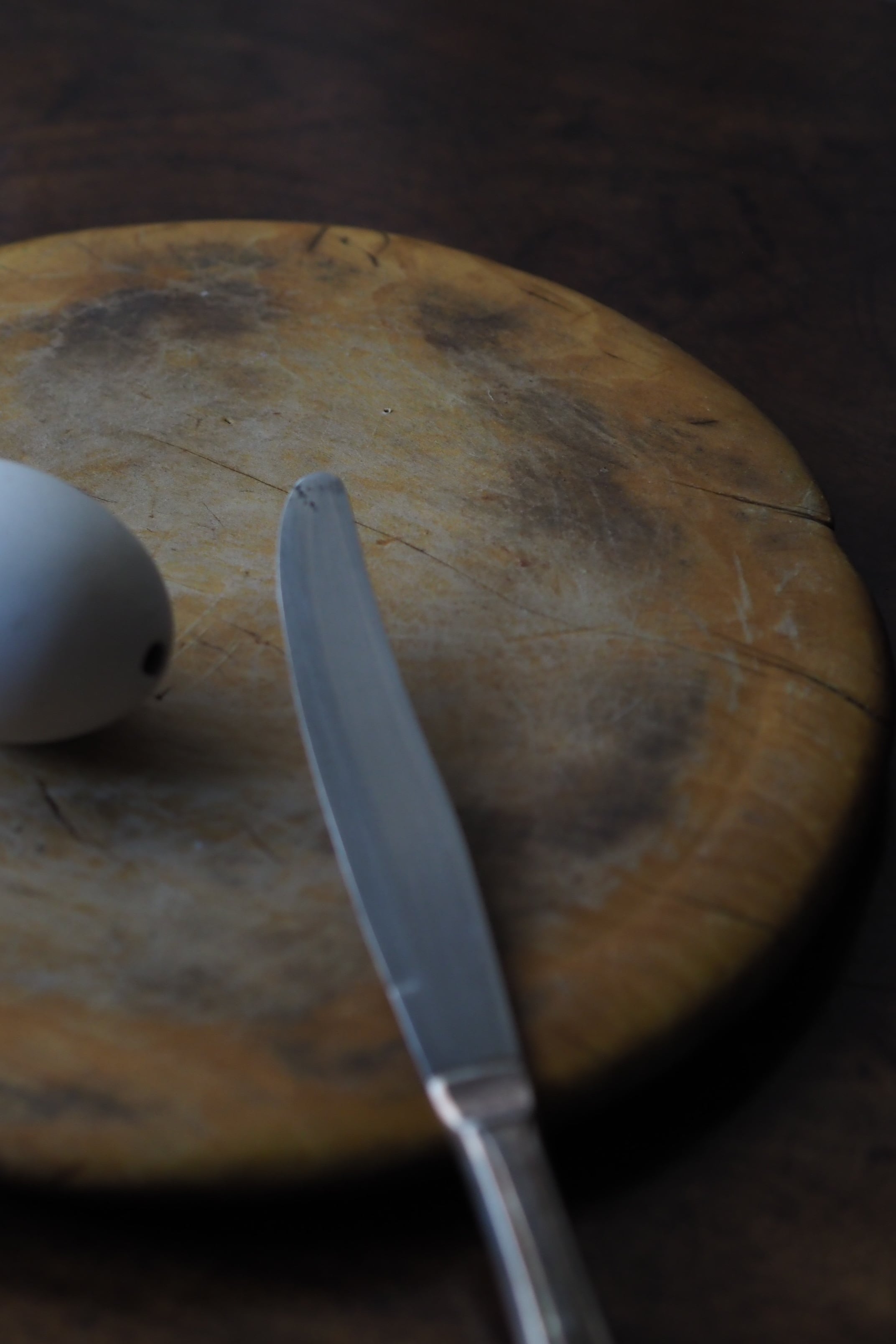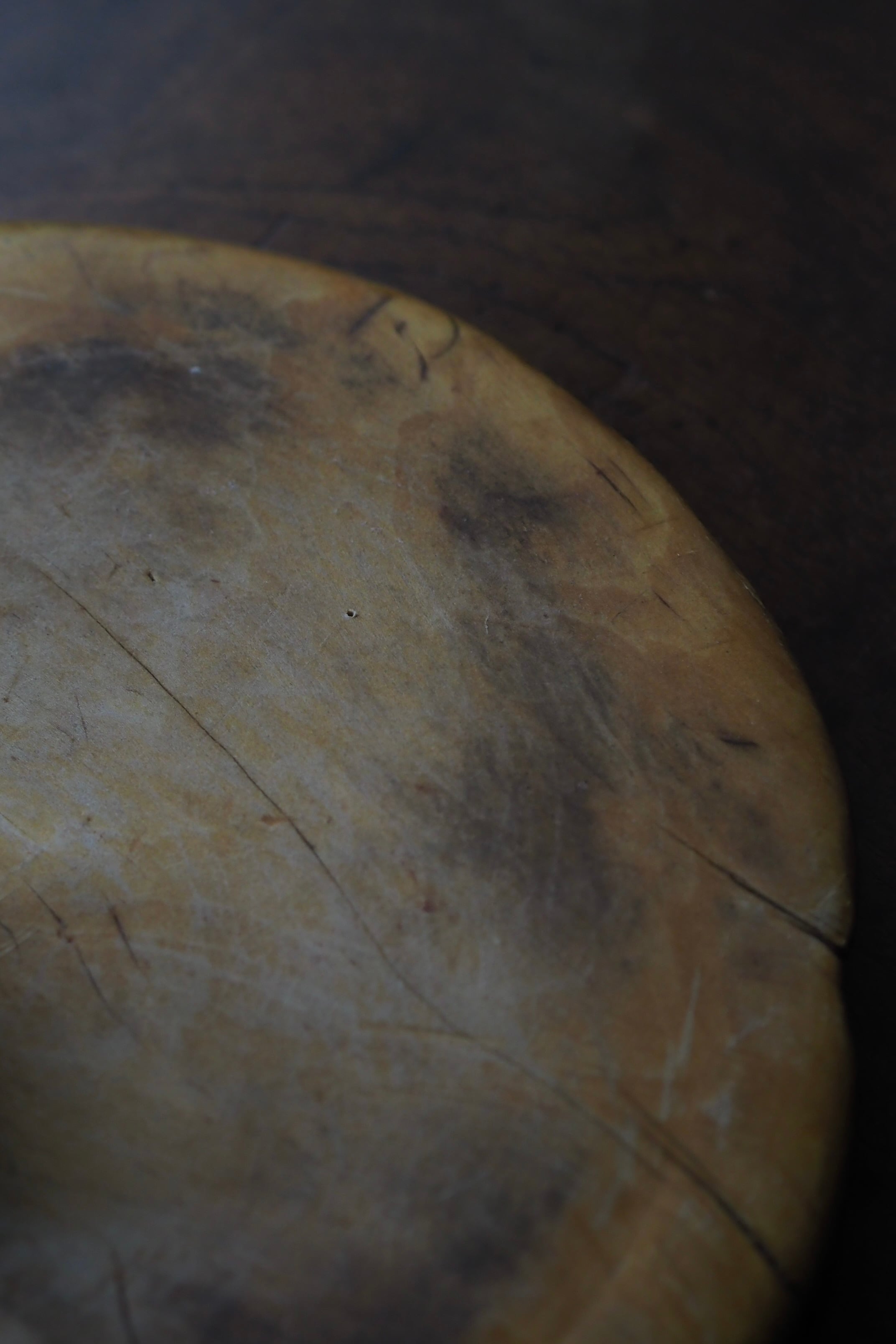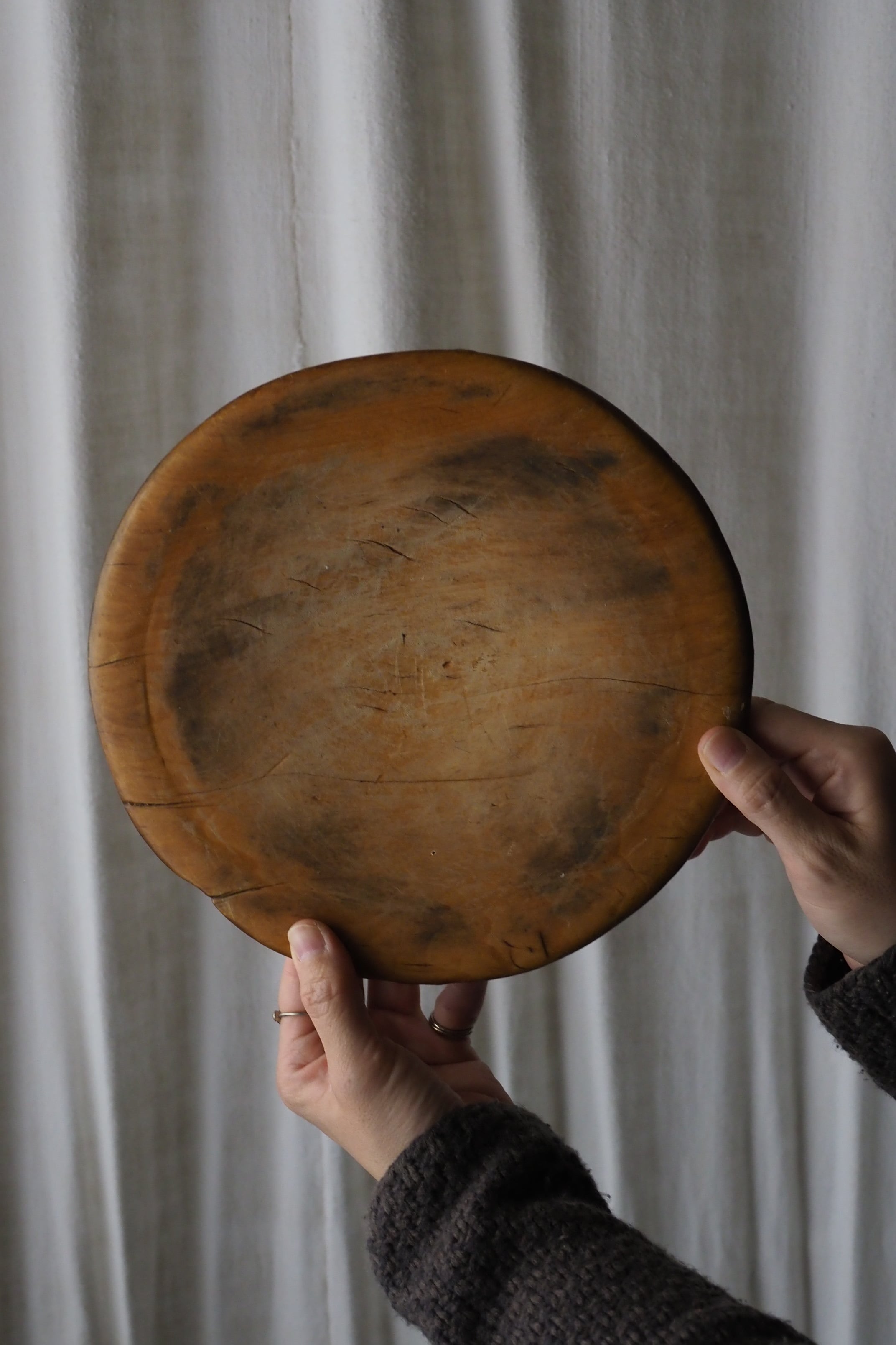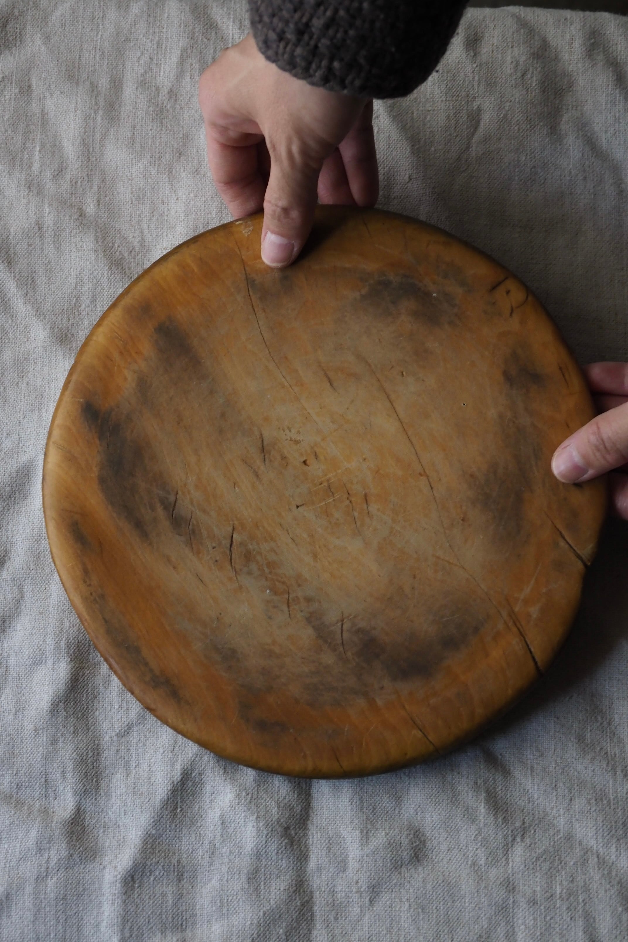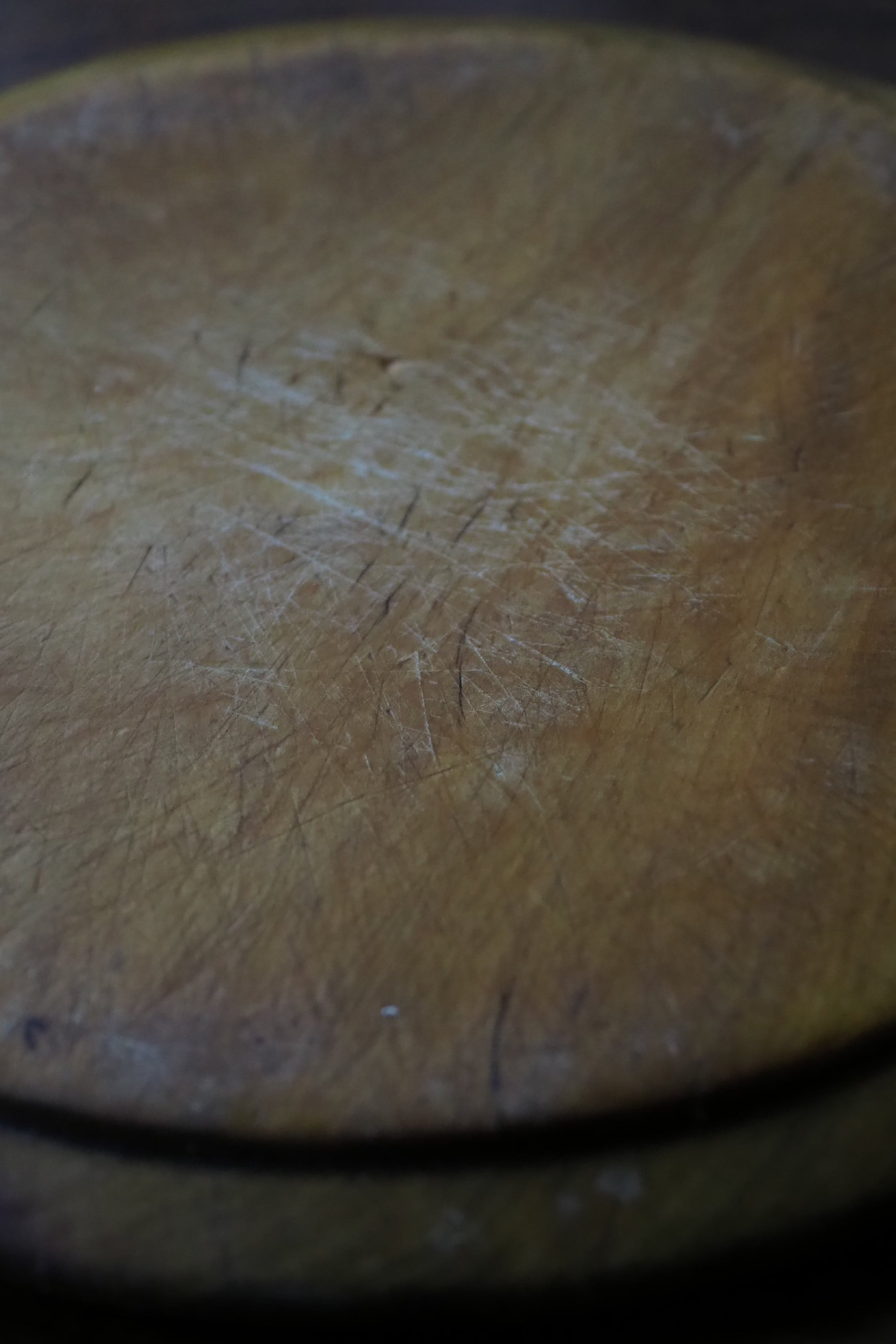 使い込まれたつるりとした表面、イギリスのブレッドボード。