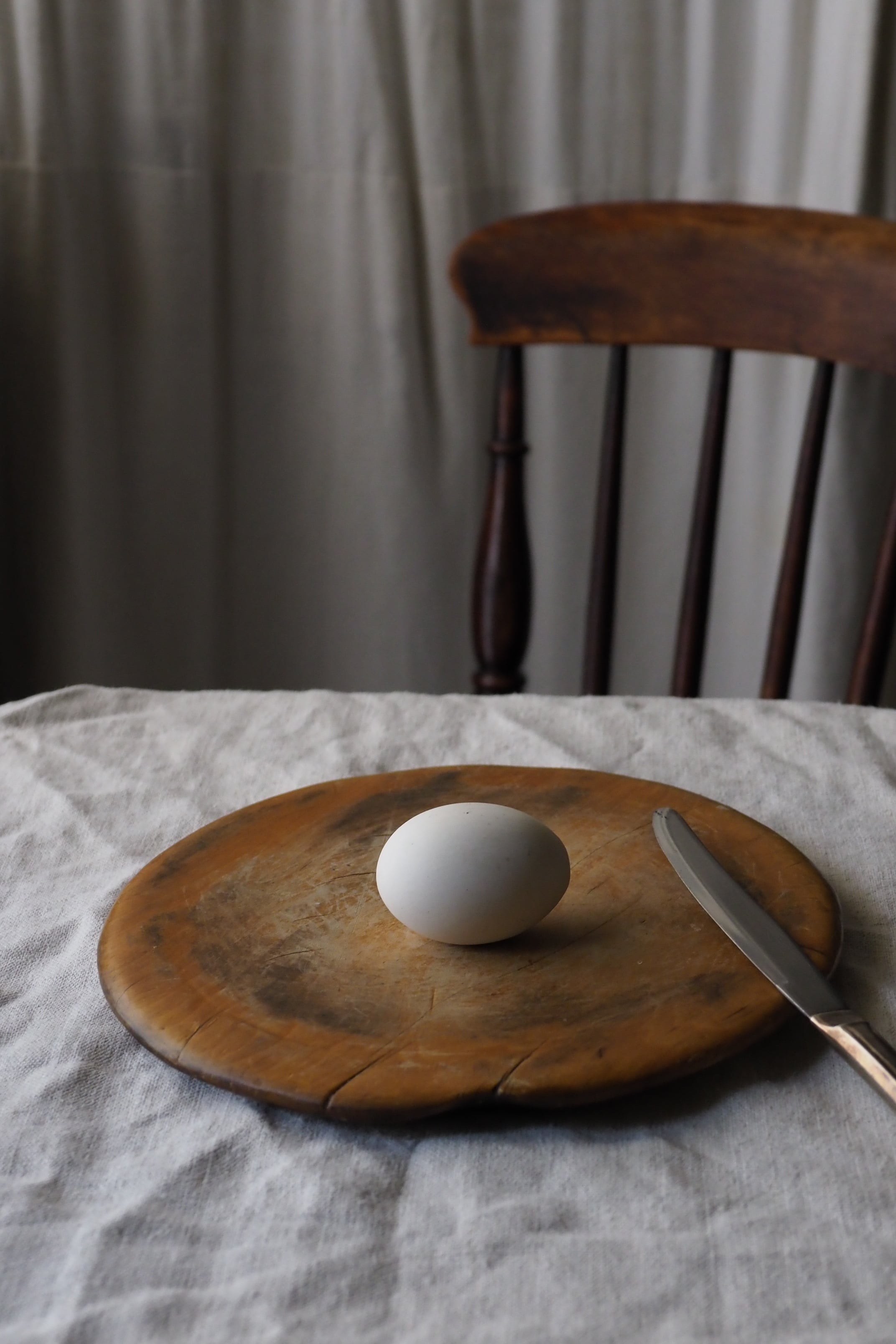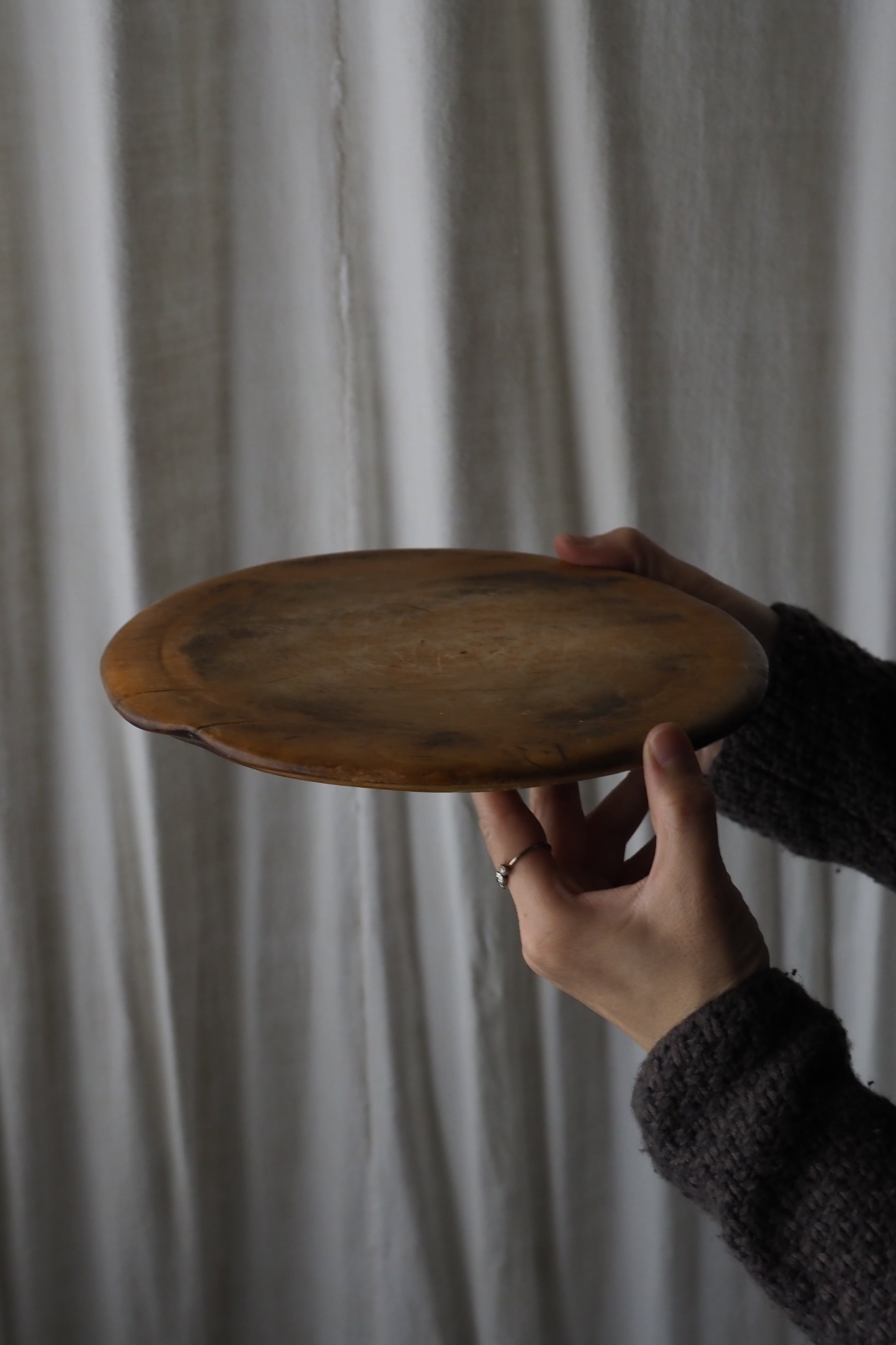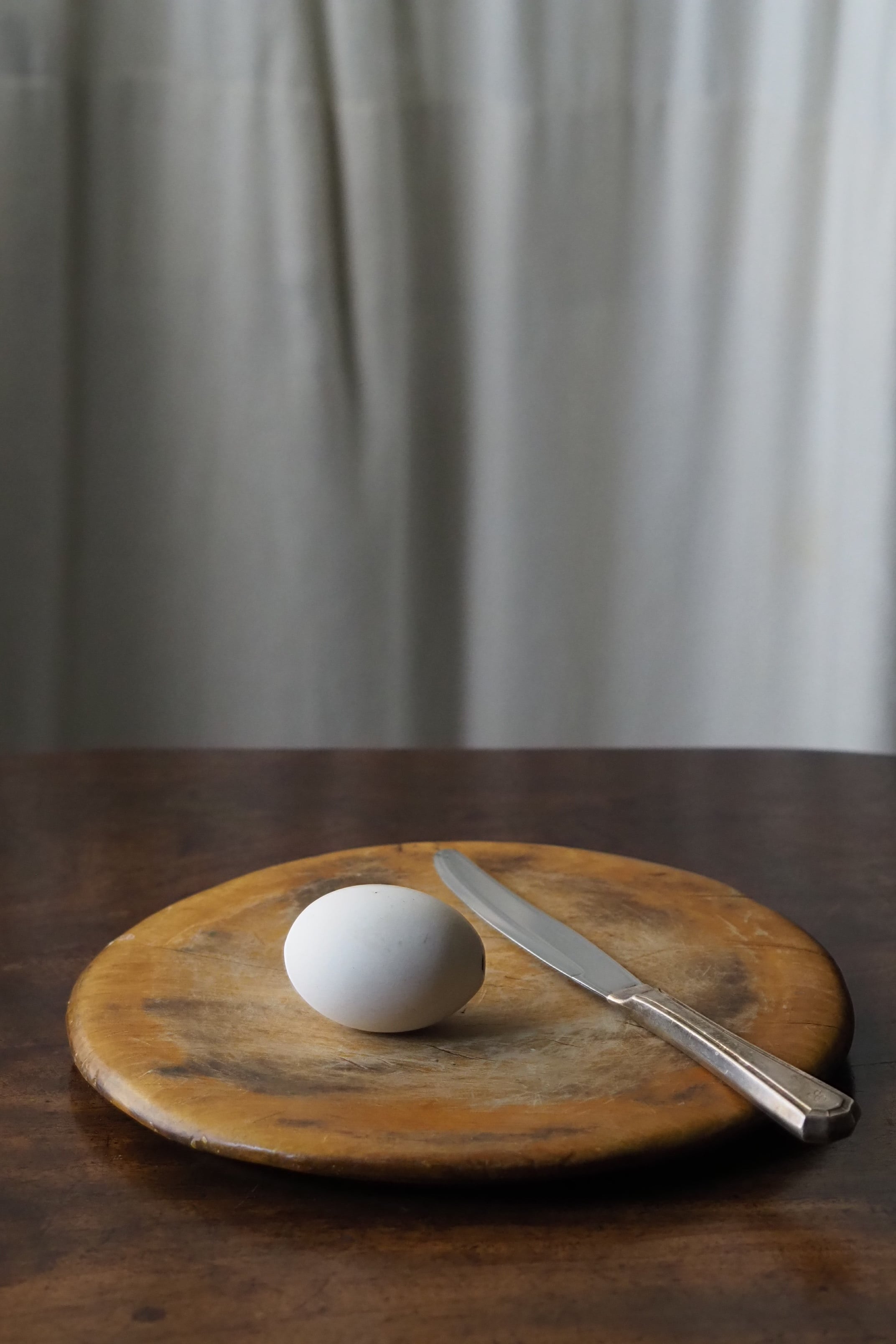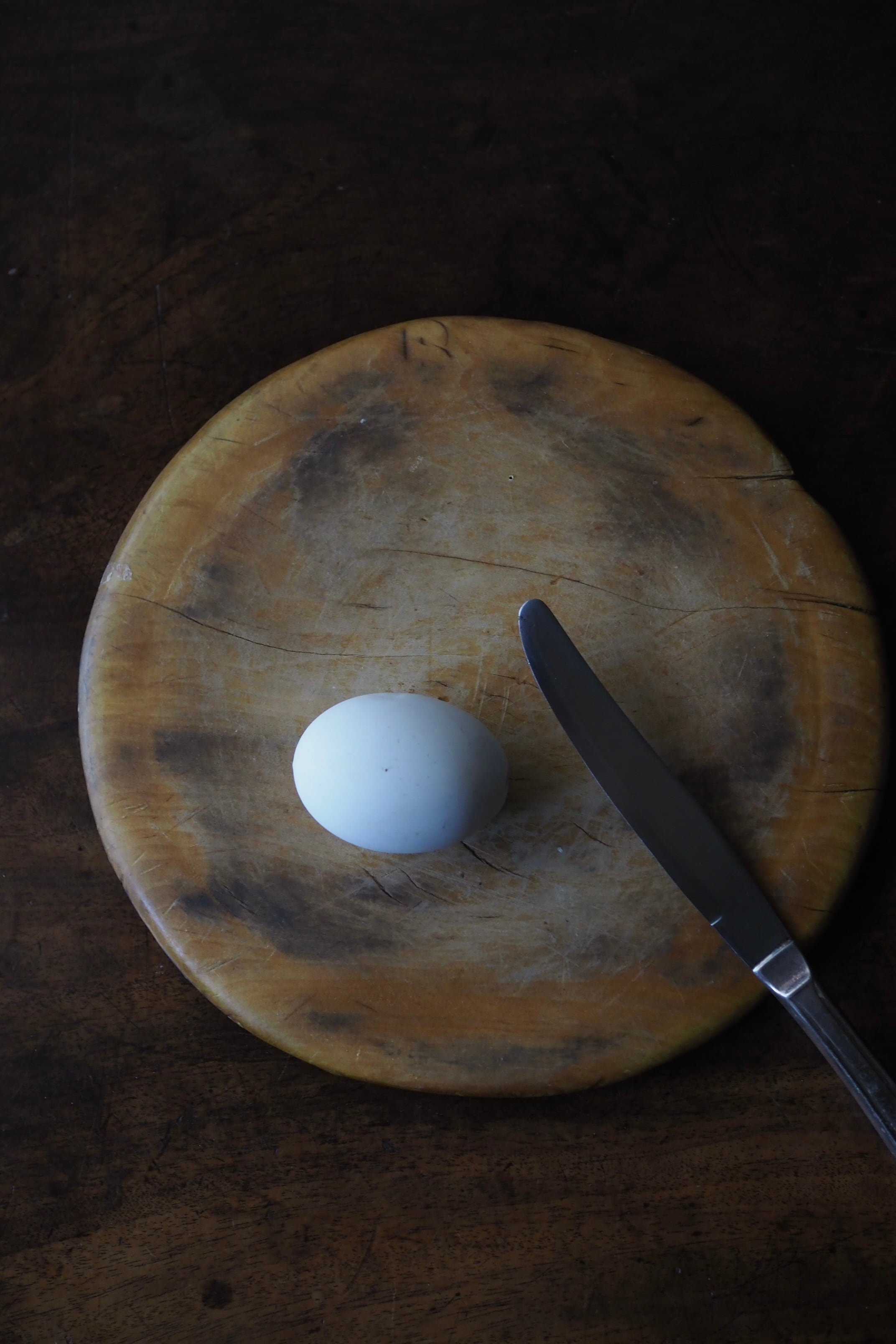 使い込まれたつるりとした表面、イギリスのブレッドボード。