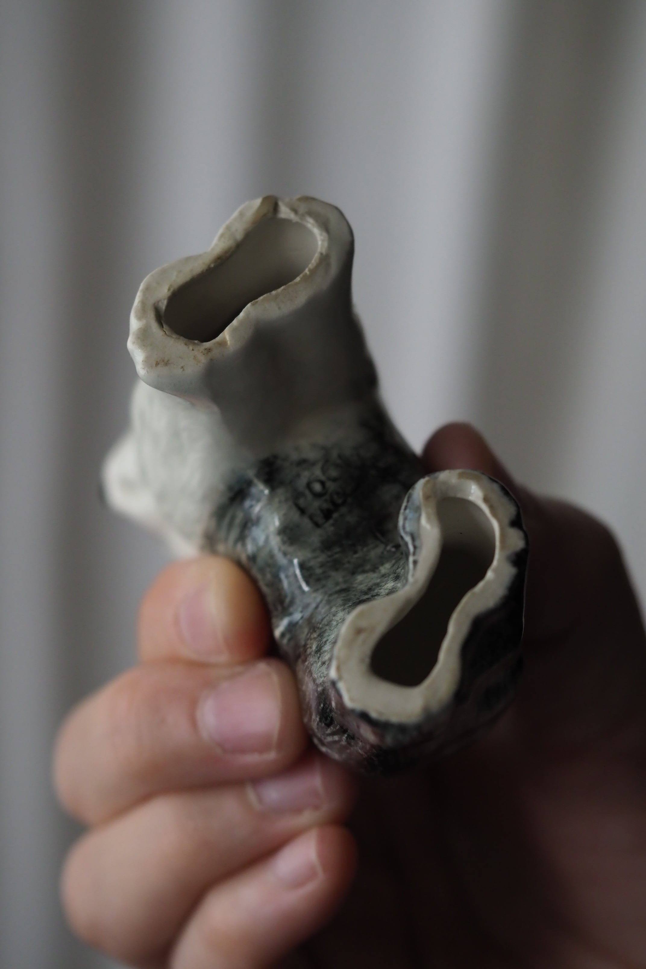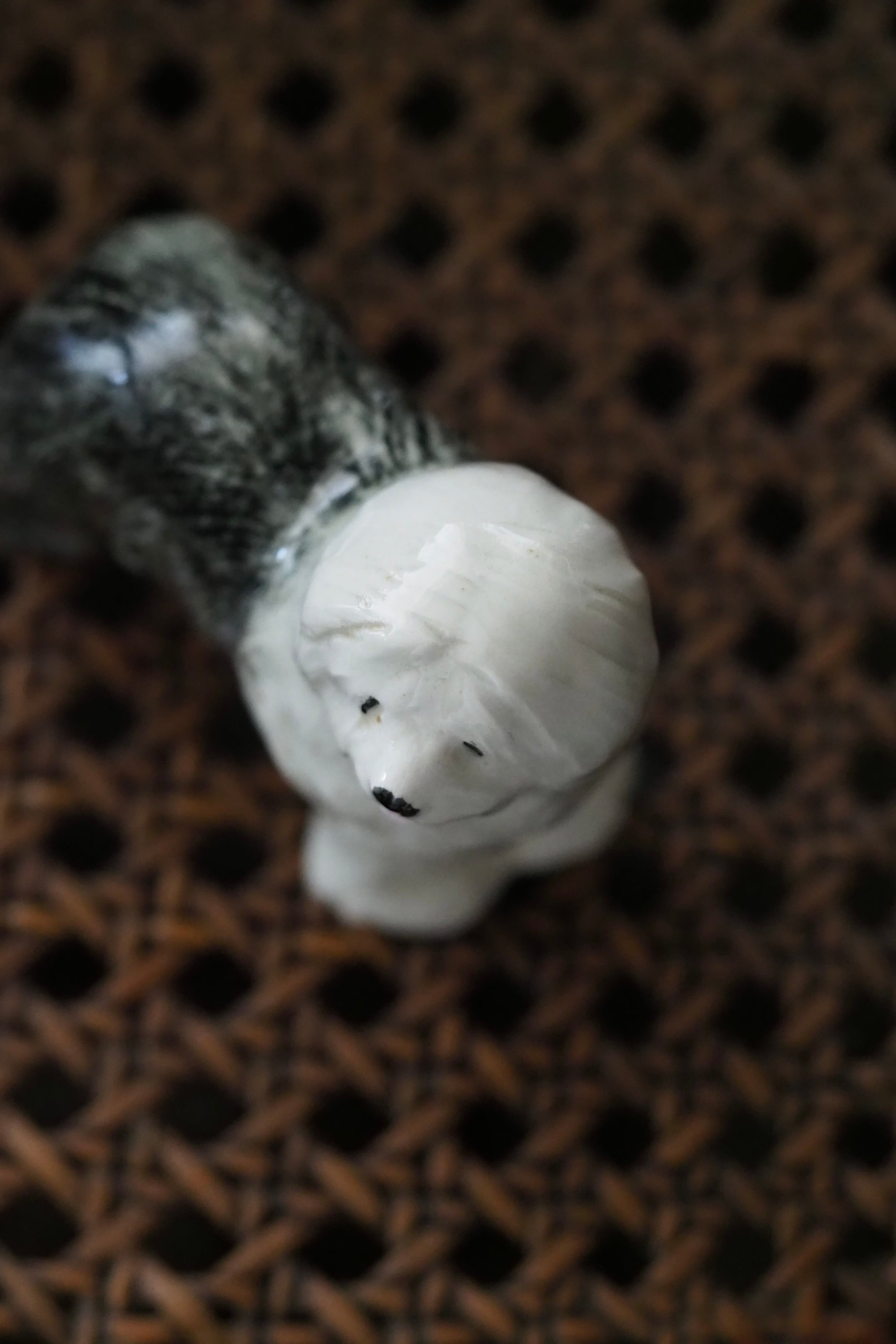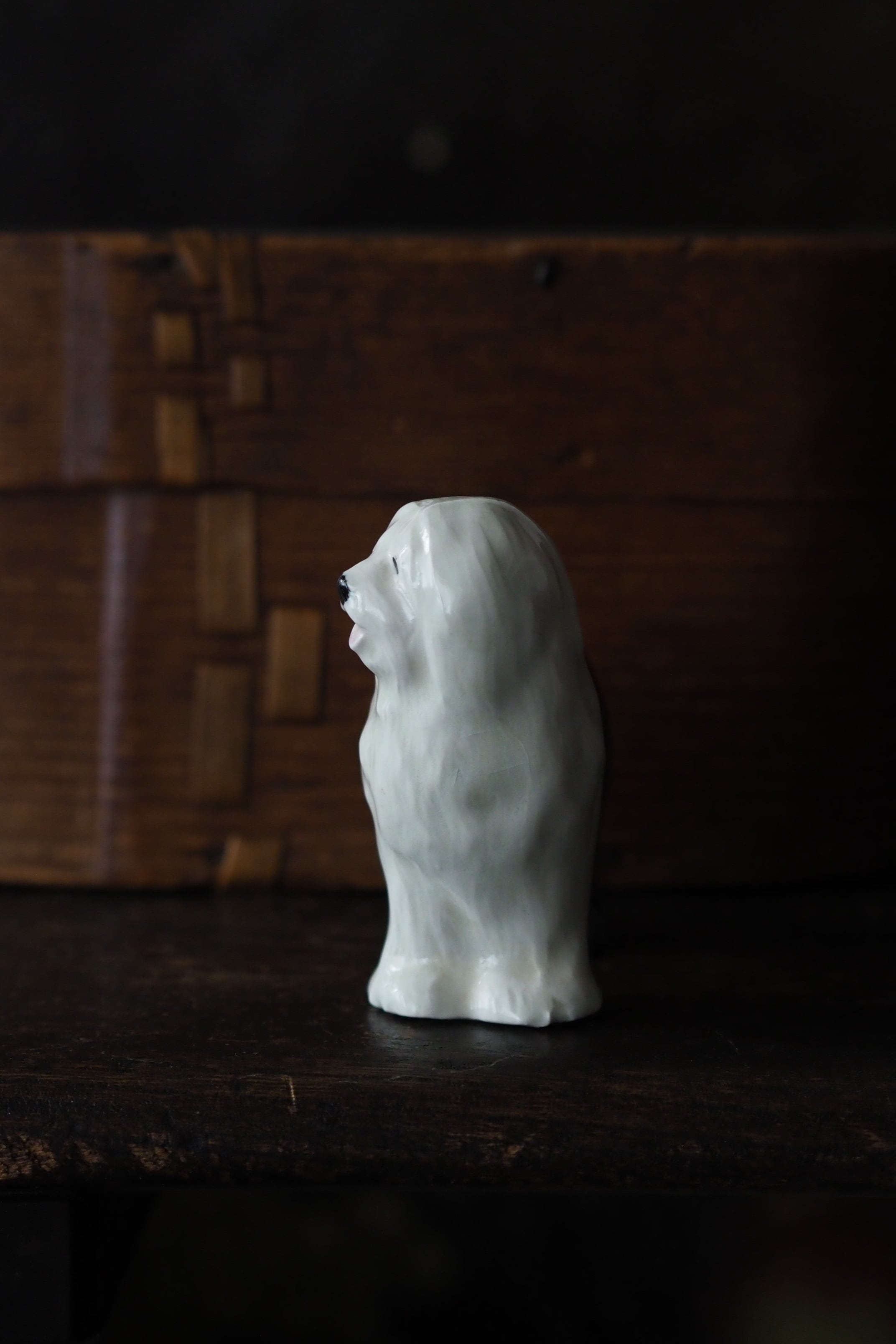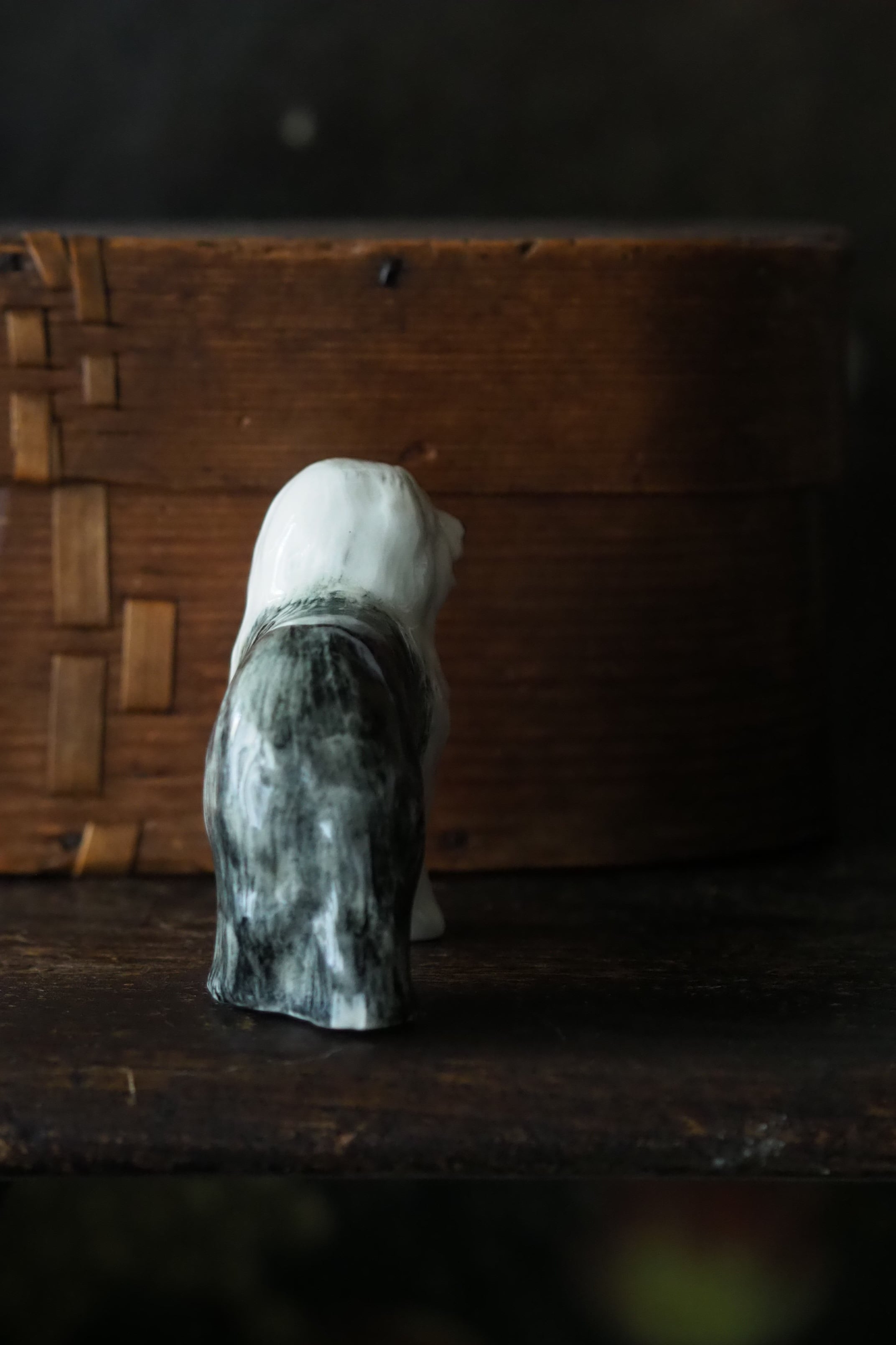 確実に笑ってる、舌をぺろりと、モコモコ豊かな体毛もそのままにオールドイングリッシュシープドッグの陶器オブジェ。