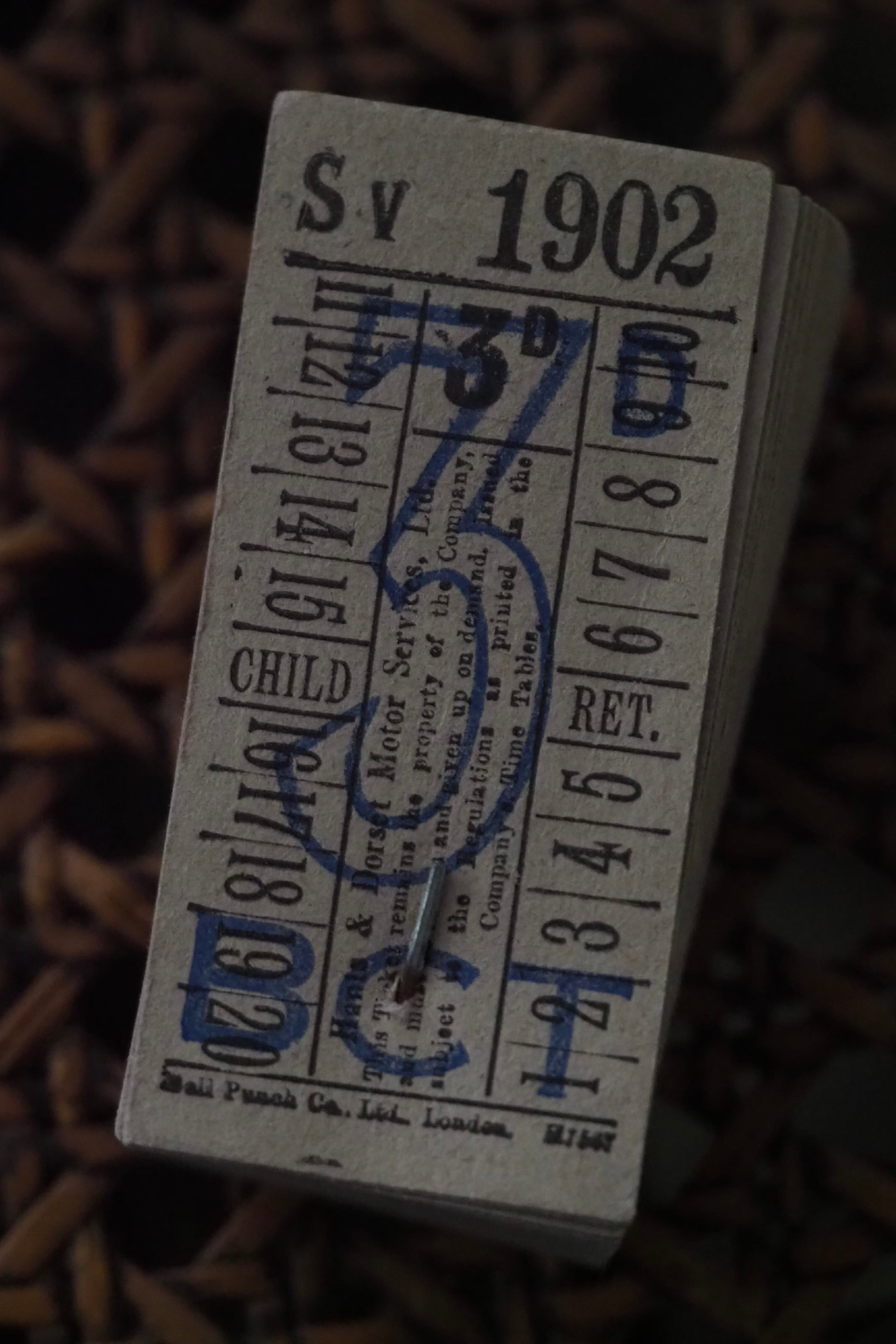 20世紀初頭のイギリス、バスの車掌さんが乗客に渡す際使っていた切符。