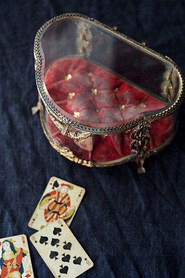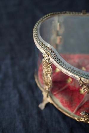 飾ったのは結婚式のティアラや造花のブーケ、またはporte-bonheur(ポルト ボヌール~幸福の象徴)として白い鳩や鏡を仕舞った壮麗なショーケース。