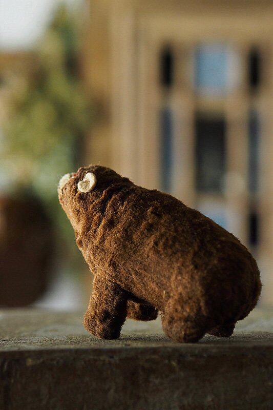 脇腹のゼンマイを回すとレトロなジジジ、という音と一緒にクマさんの首は左右にゆっくり、歩む準備を続けるのみ。