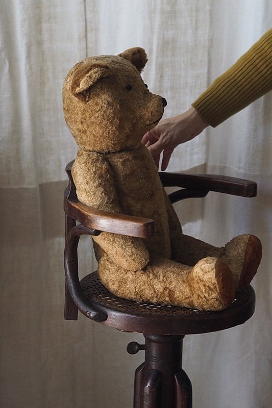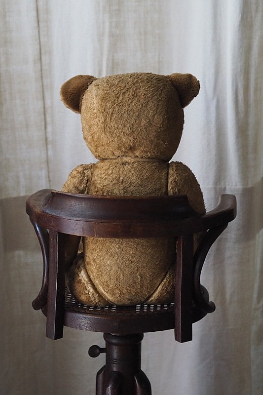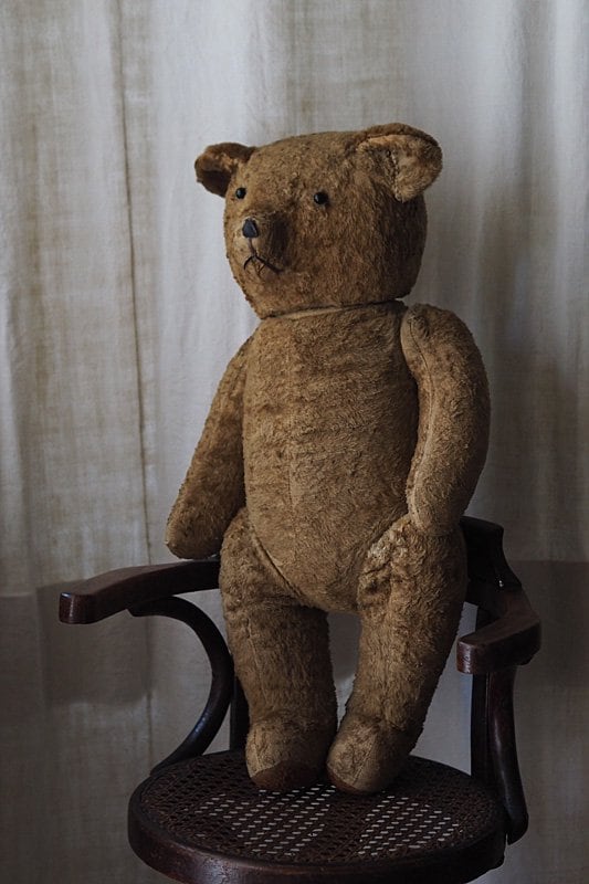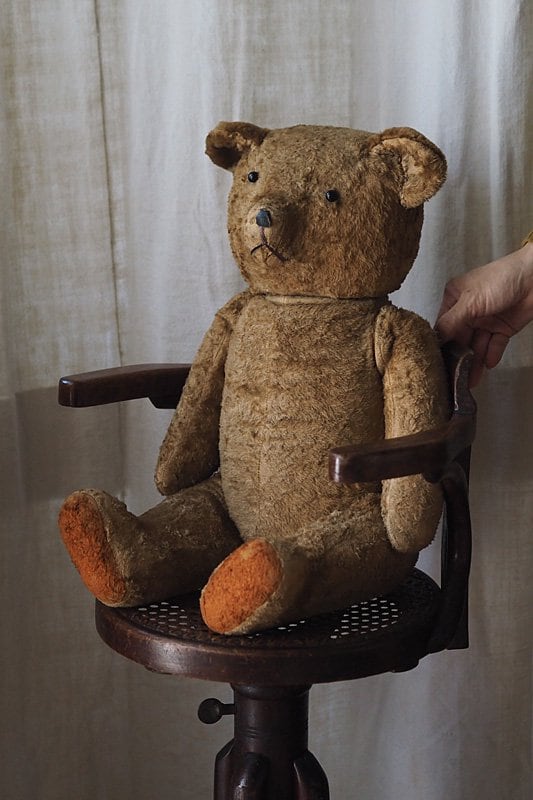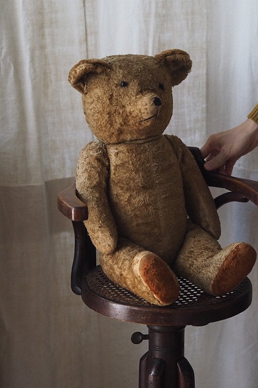 添い寝慣れして背中が平ら、な大きなテディベア。