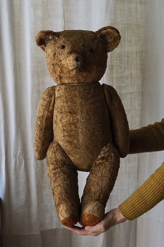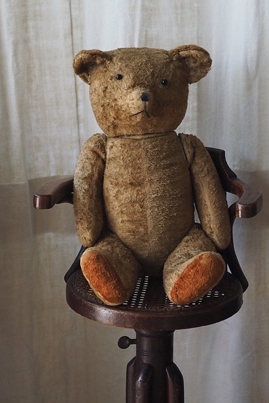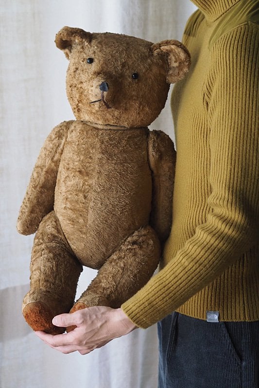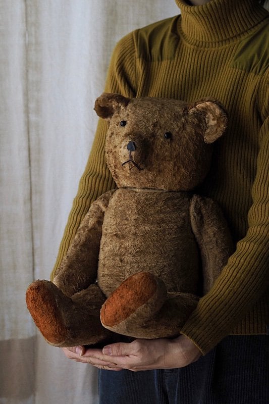 鼻はおにぎりさんの様なパッチで、口元は一部ステッチされて大事に直されている、